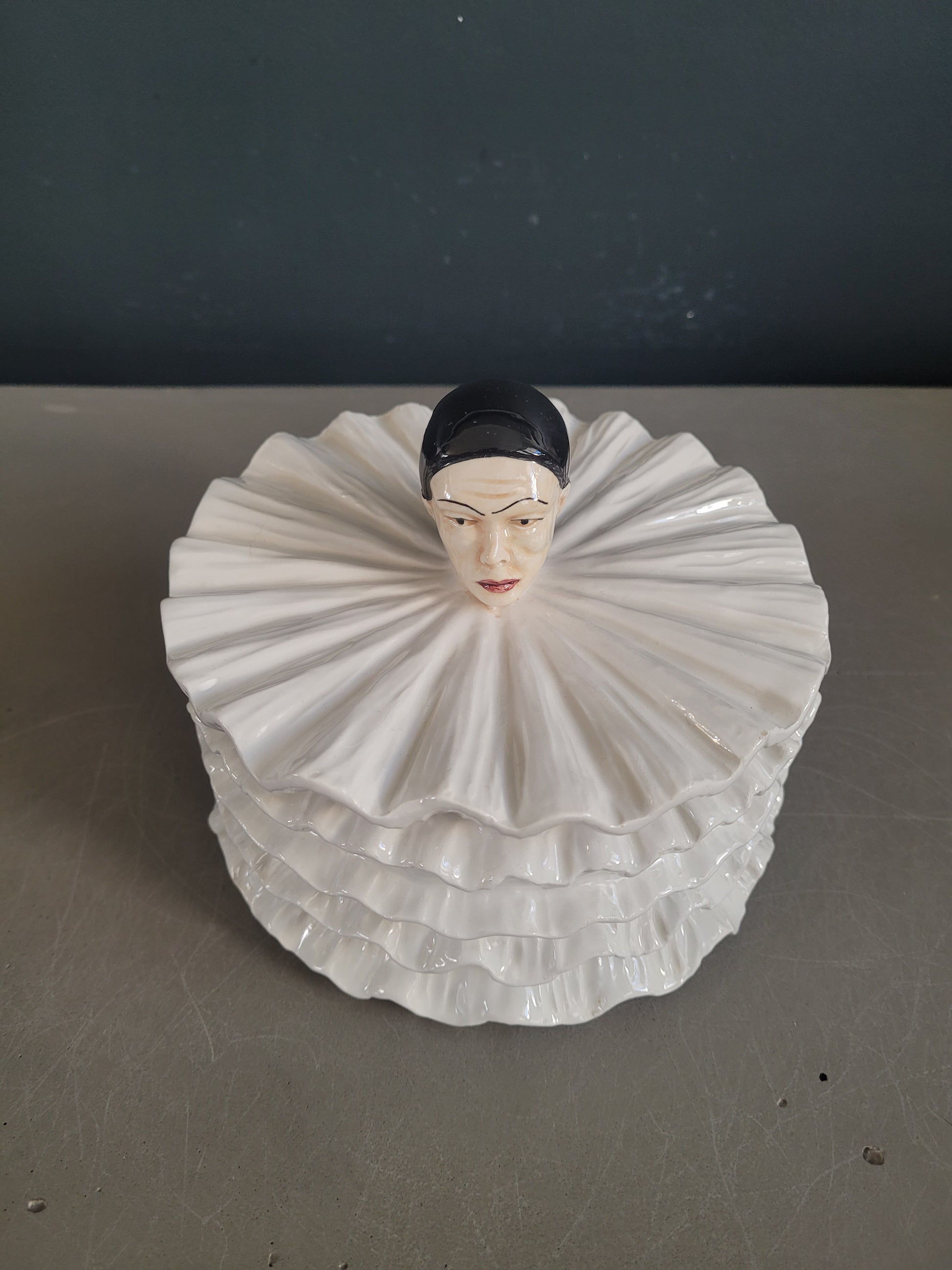 Bonbonnière Pierrot ancienne en porcelaine- Ref 606
