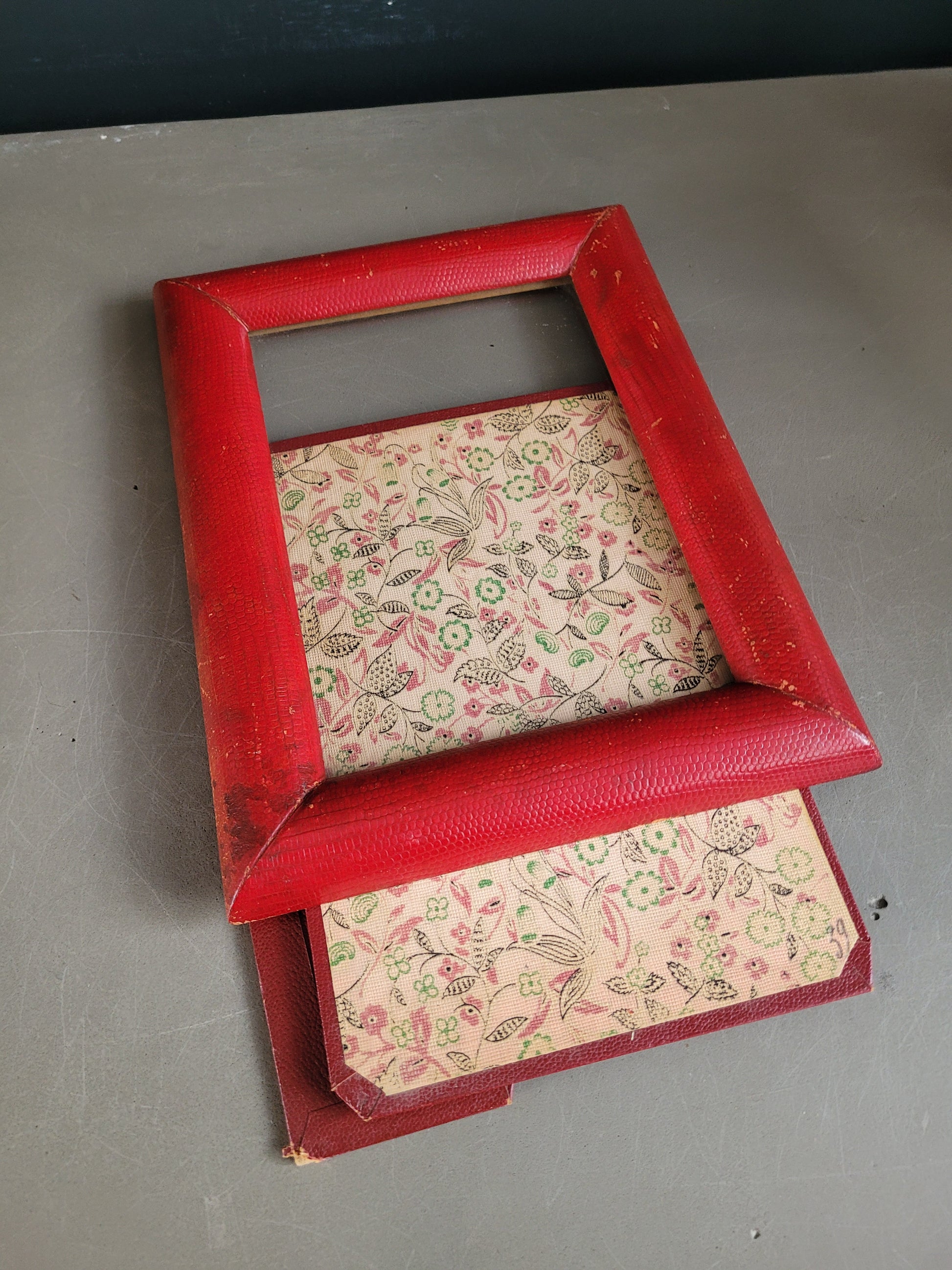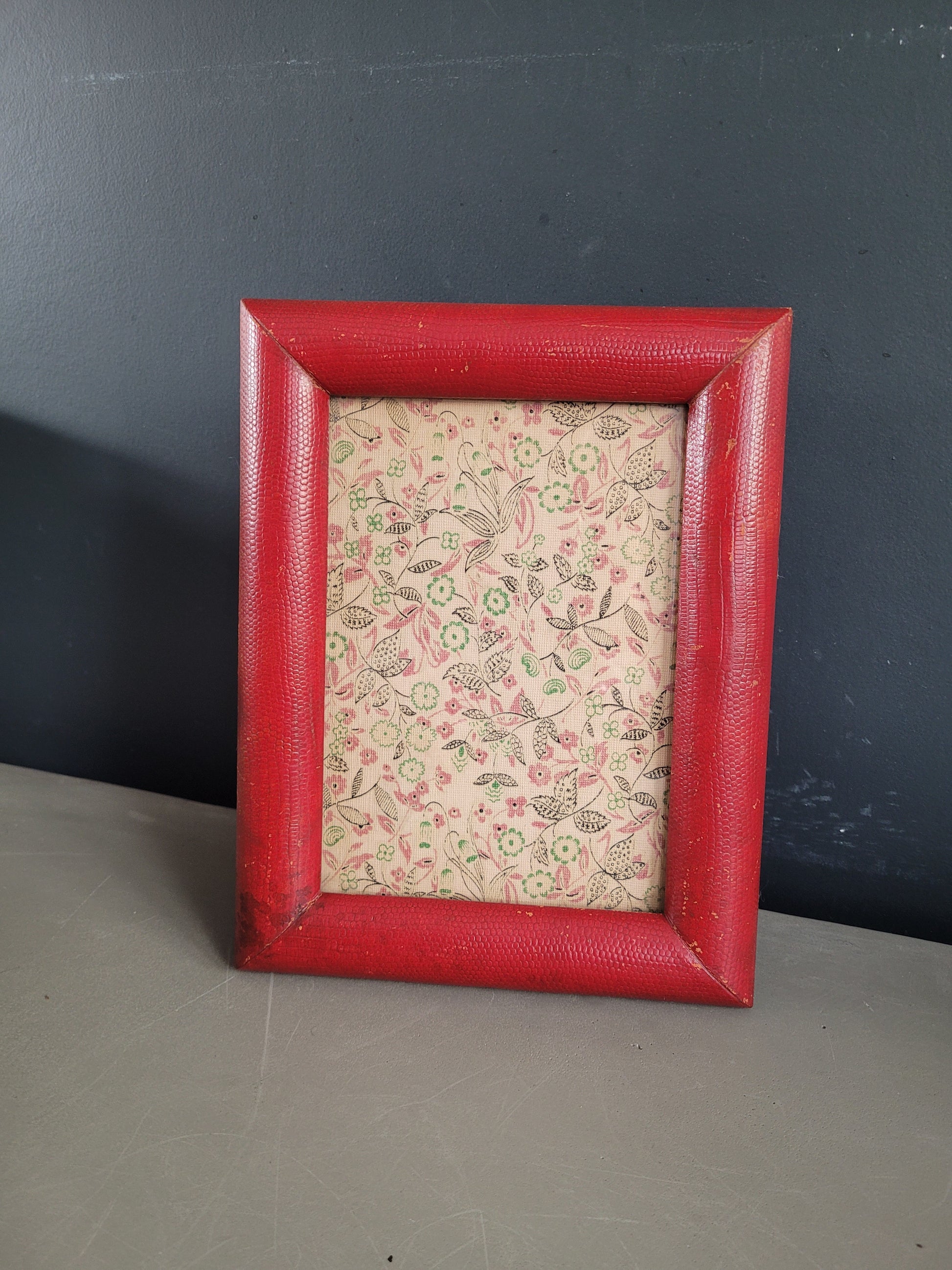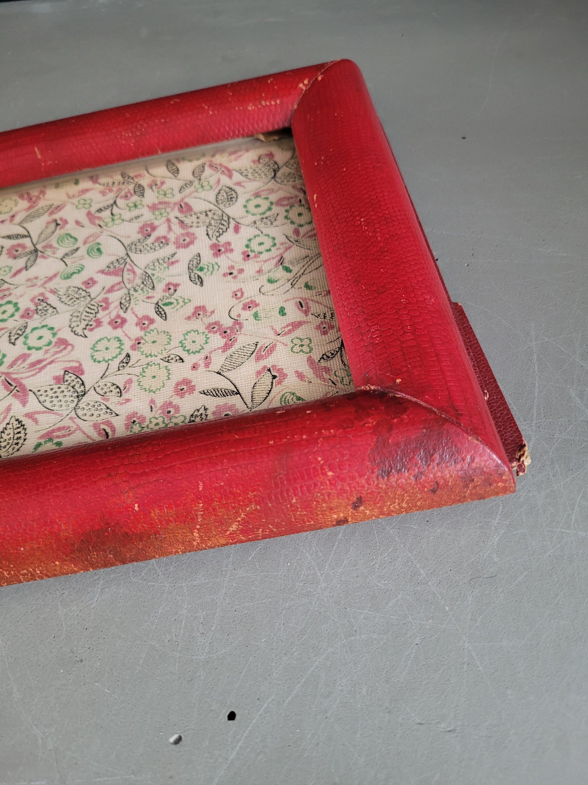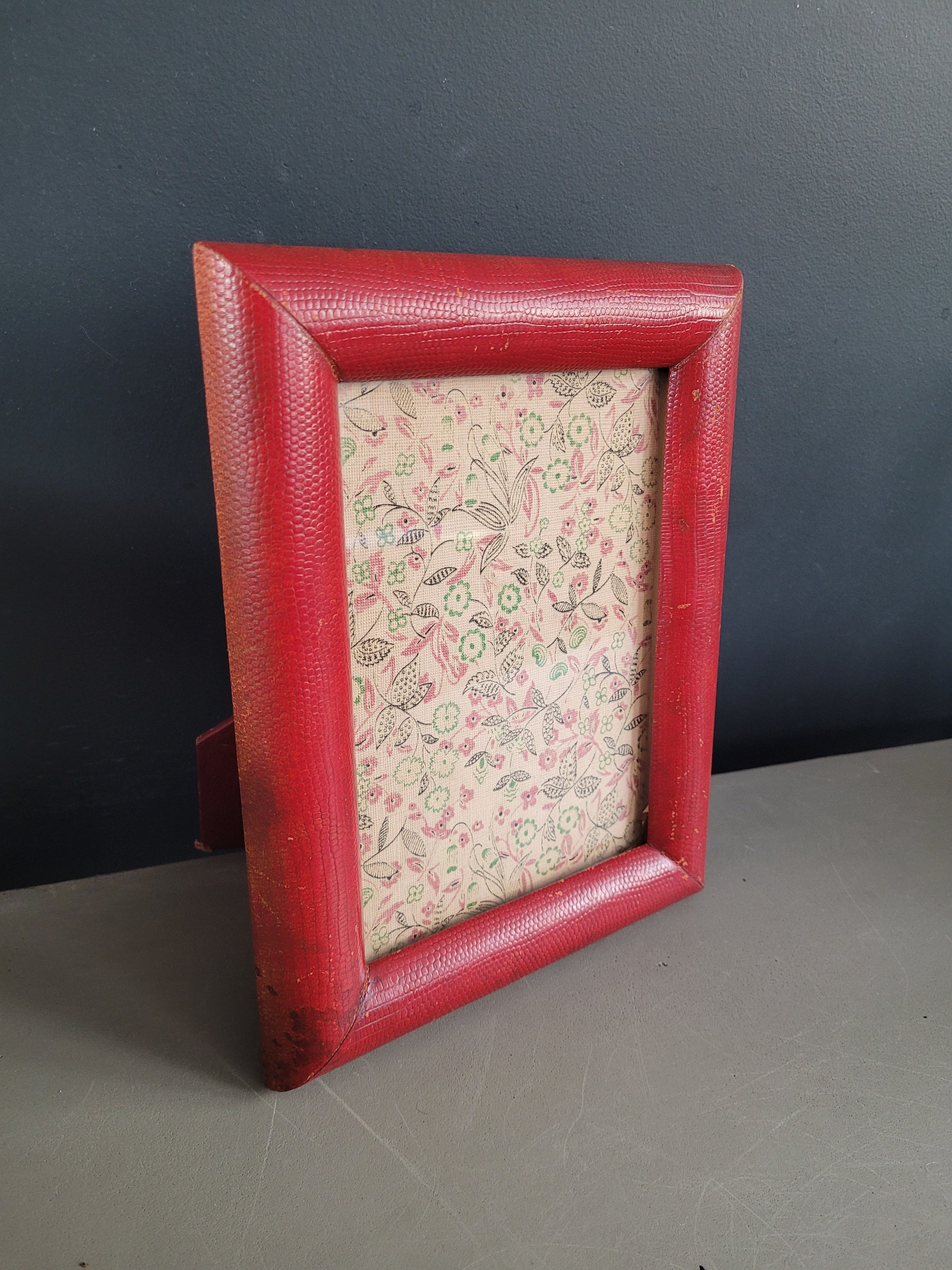 Cadre ancien à poser ou à suspendre en cuir rouge - Ref 793