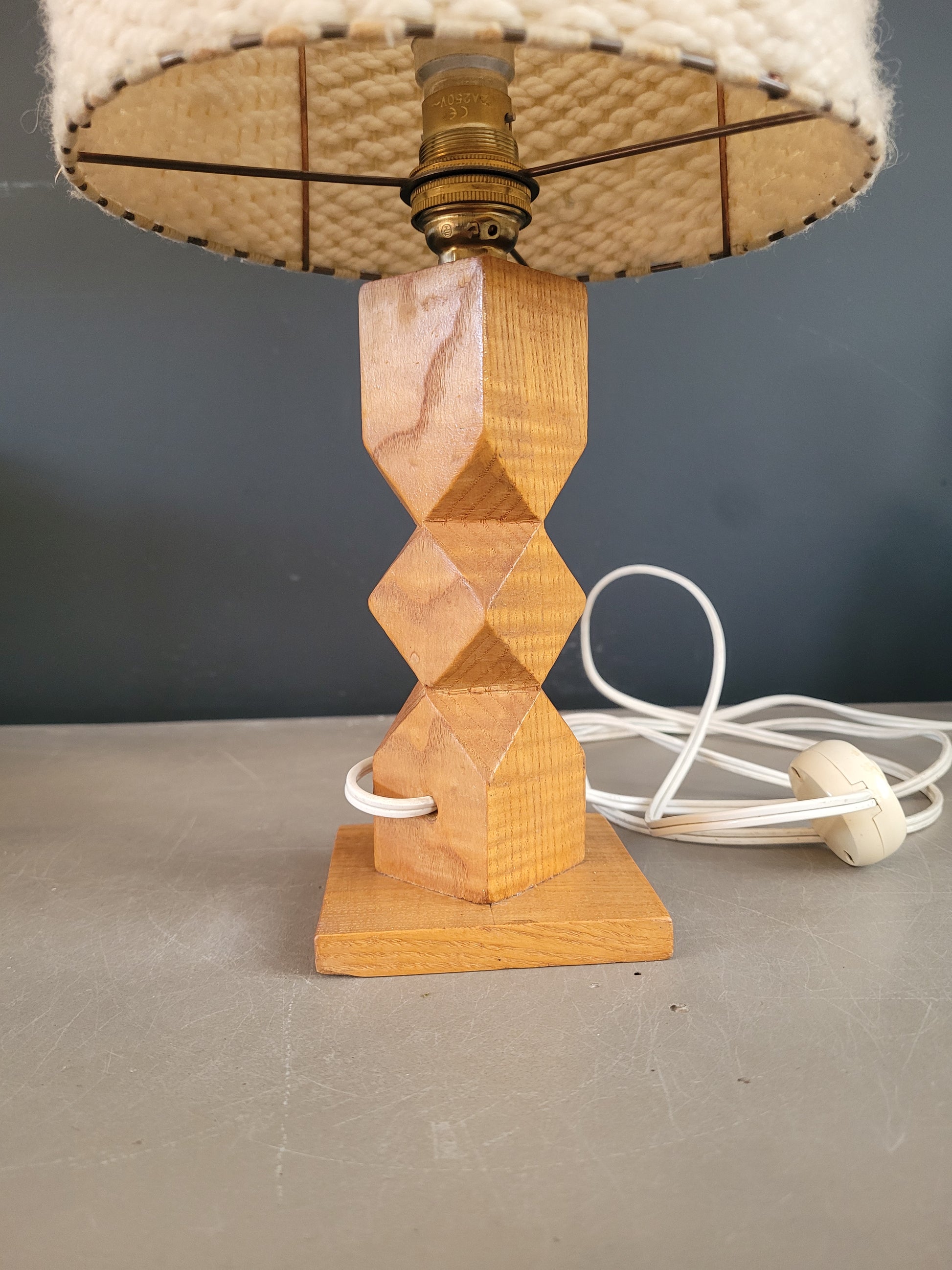 Lampe à poser vintage pied bois et abat-jour laine - 743