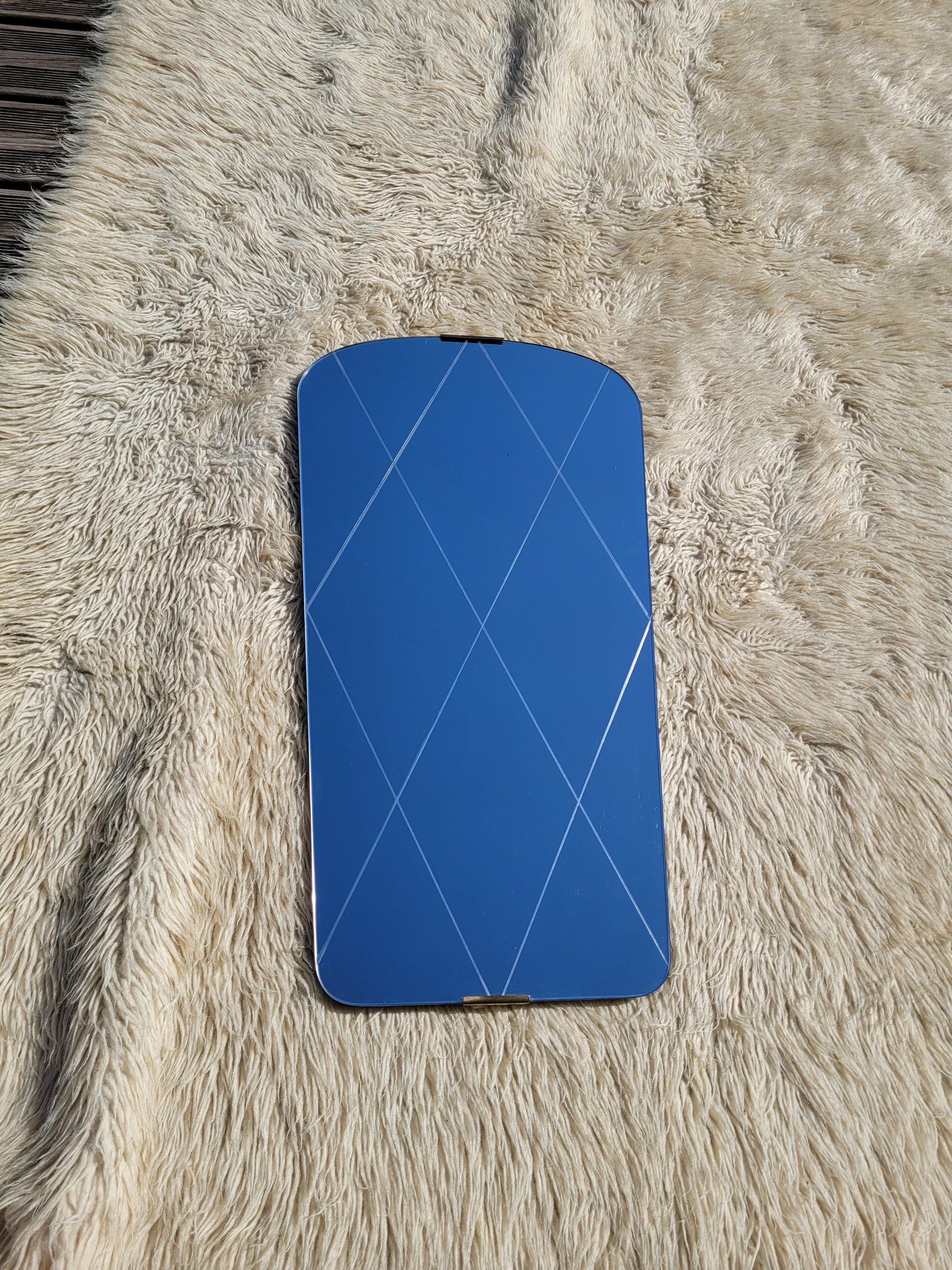 Sublime miroir rétroviseur avec gravure losanges sur toute la surface.