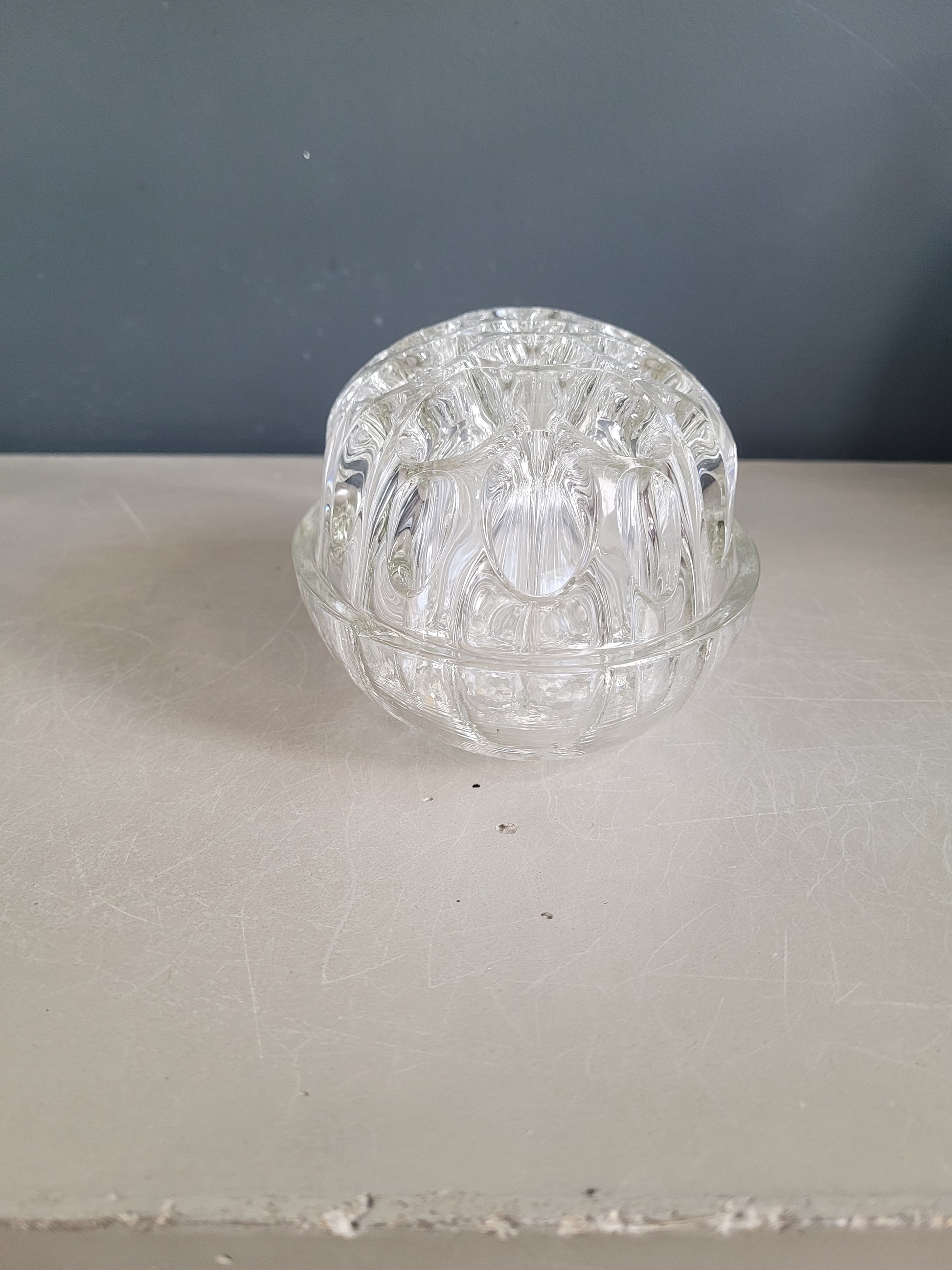 Superbe et imposant, ce pique-fleurs ancien en verre moulé vous permettra de réaliser de magnifiques compositions de fleurs fraîches, pour un effet chic ou champêtre sur votre table!