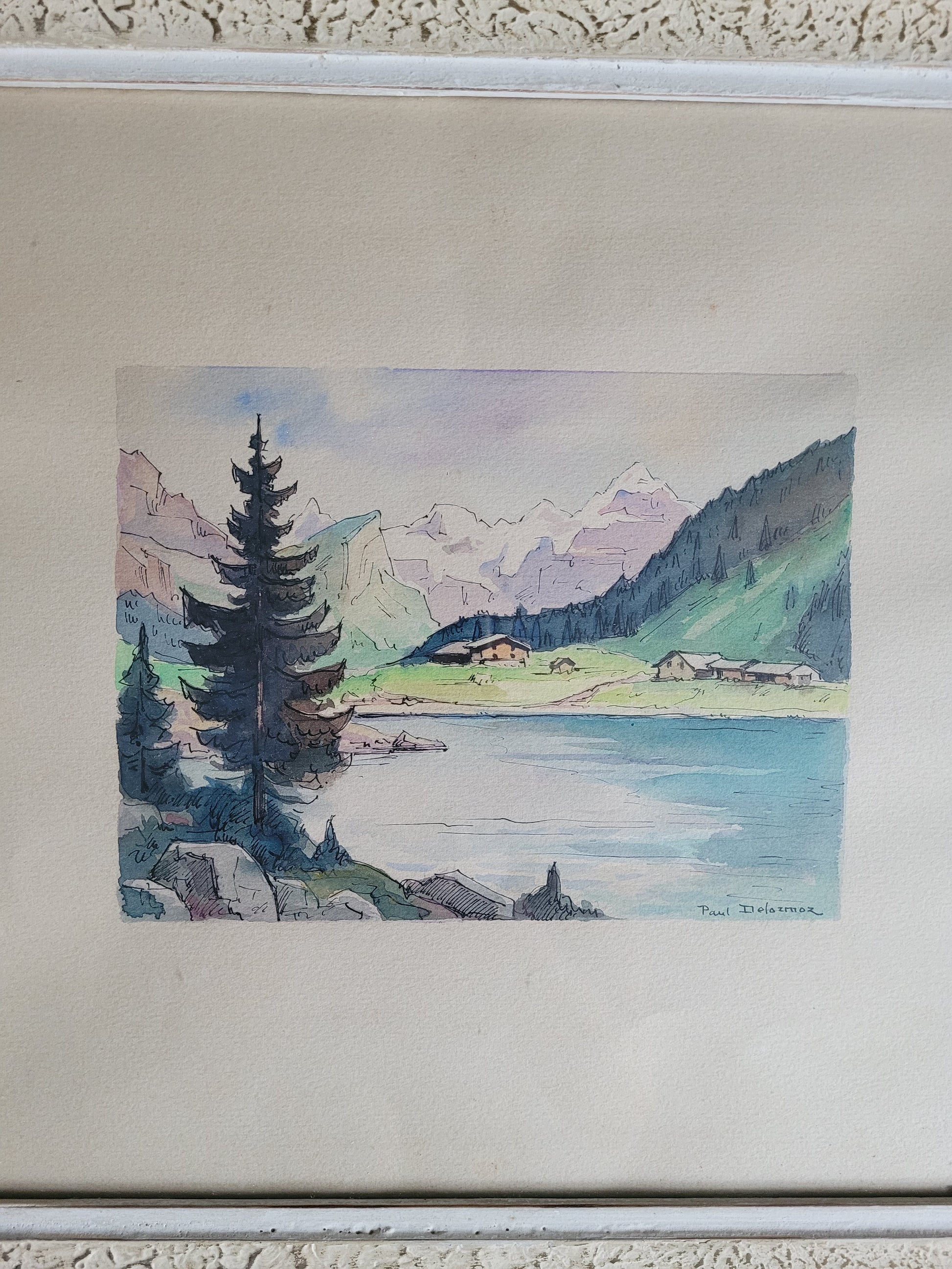 Magnifique aquarelle sur papier encadrée, signée Paul Delormoz (1895-1980) représentant un paysage de montagne.