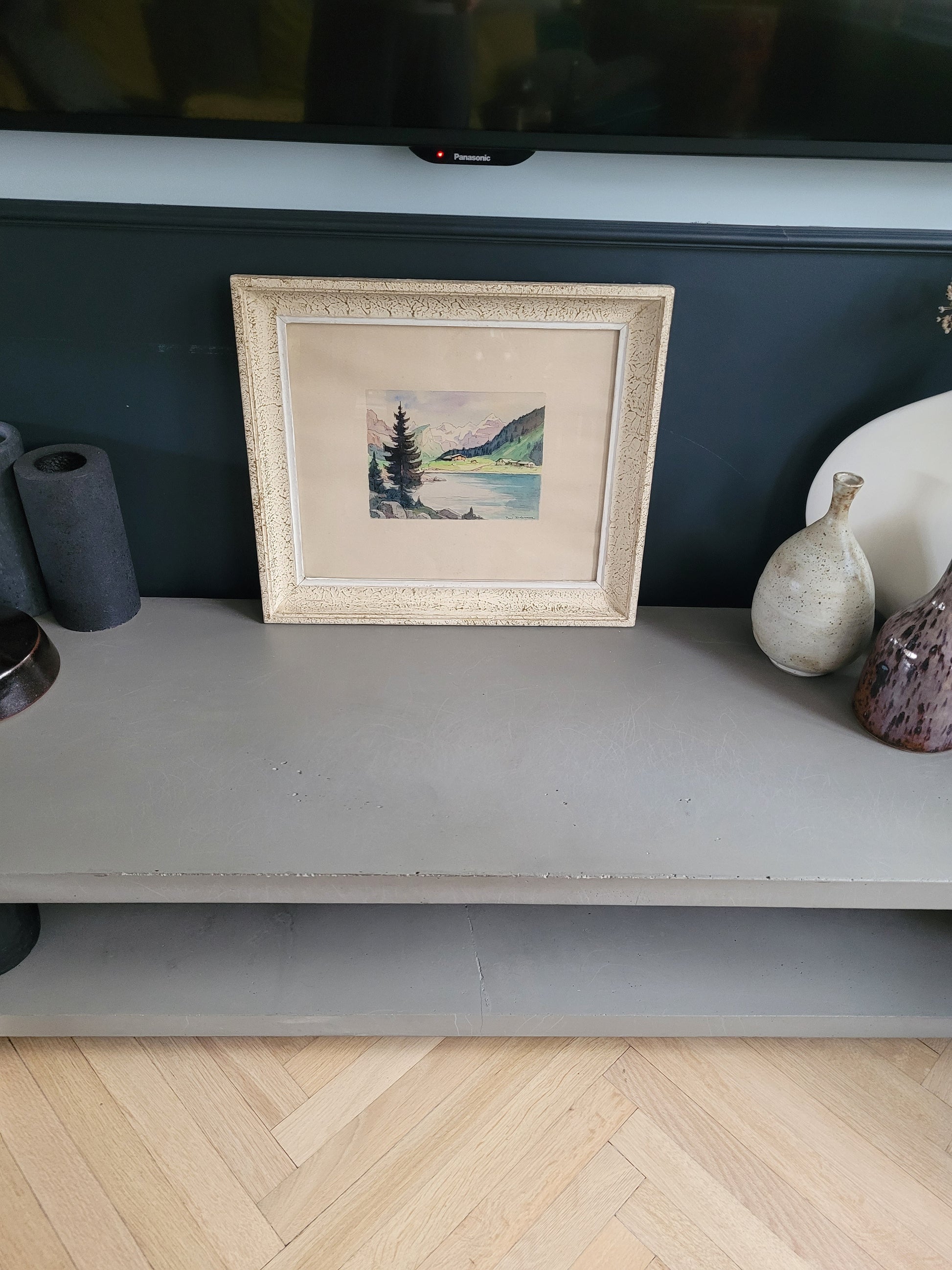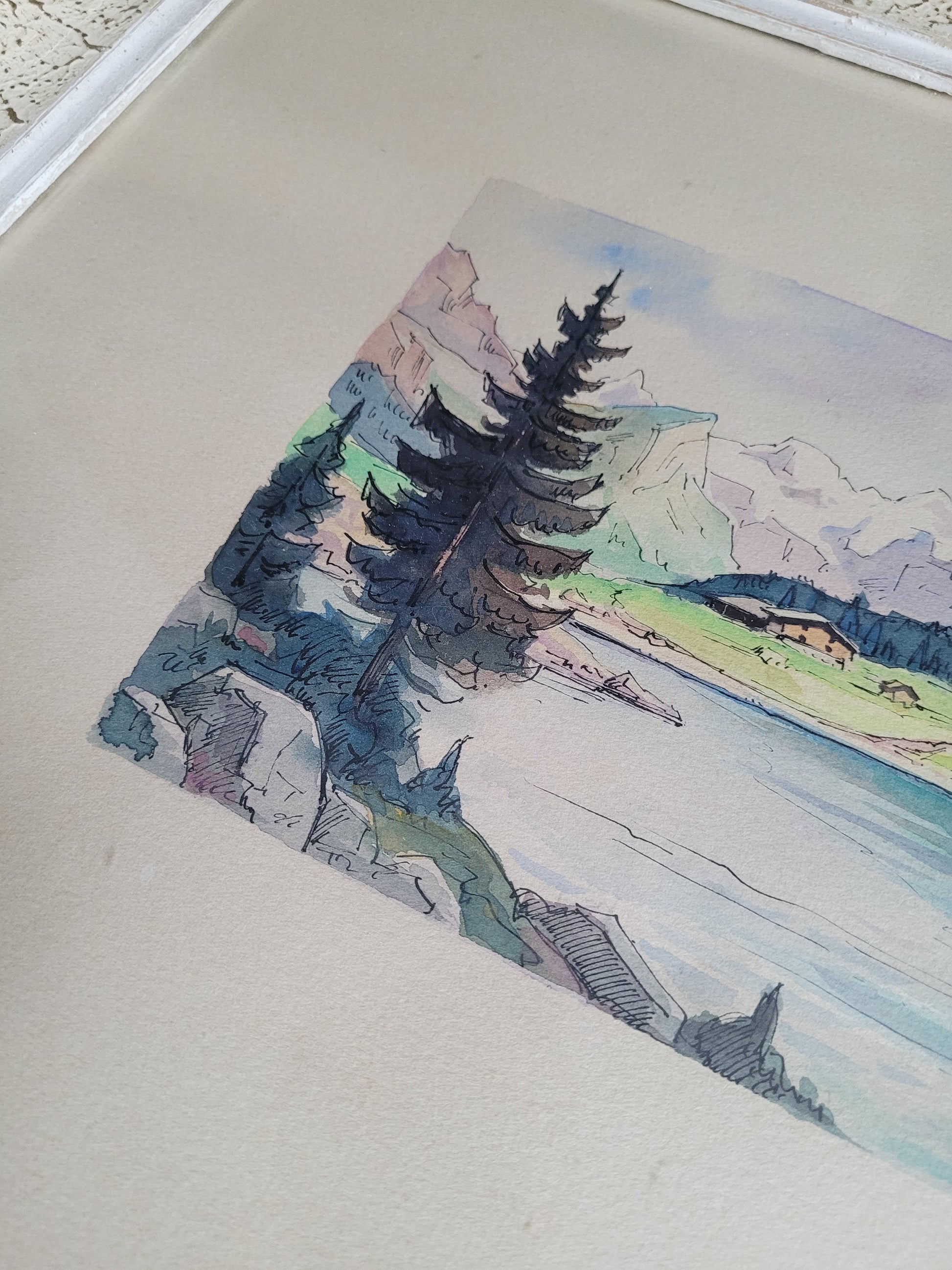 Tableau aquarelle paysage de montagne signé - Ref 384