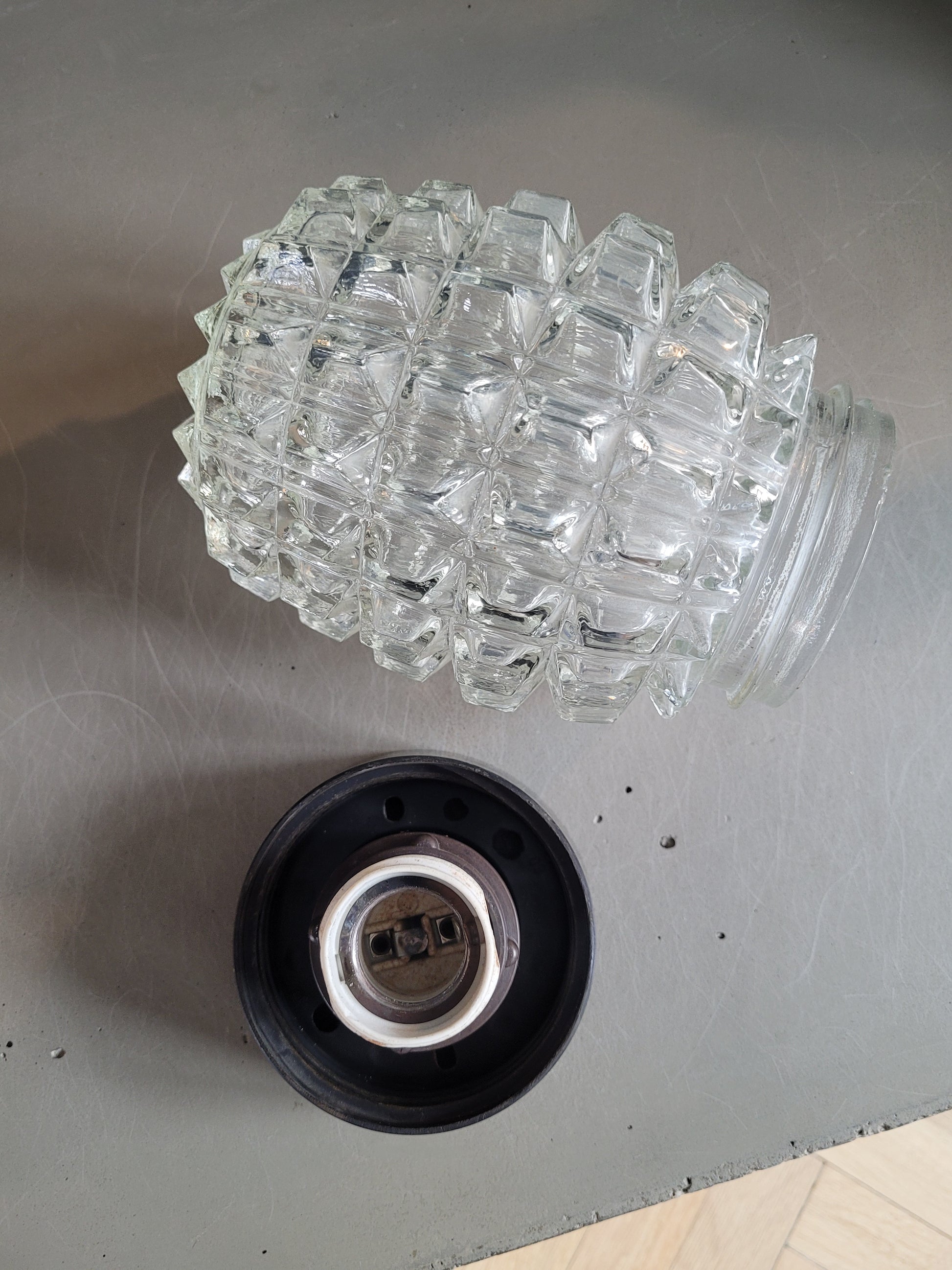 Le globe est en verre moulé, transparent et incolore, et les formes donnent un rendu incroyable à l'éclairage.