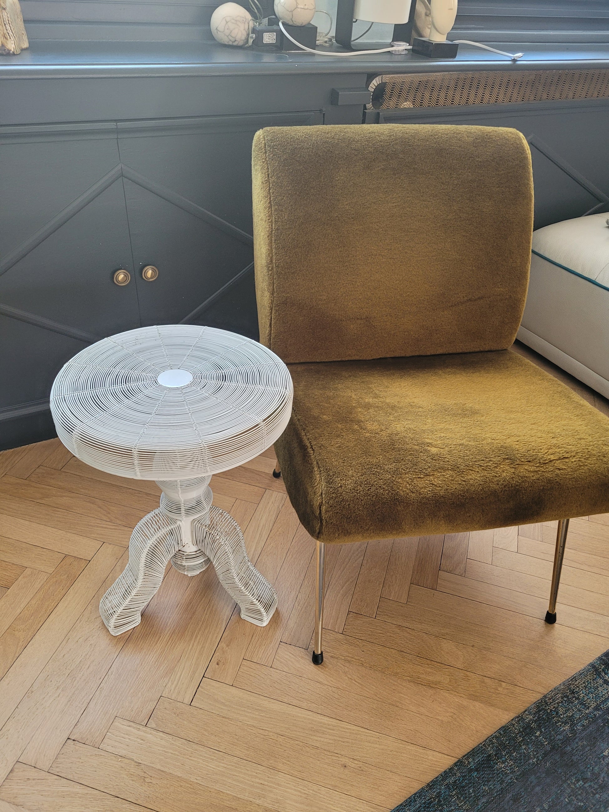 Bout de canapé en fil métallique laqué blanc - Ref 765