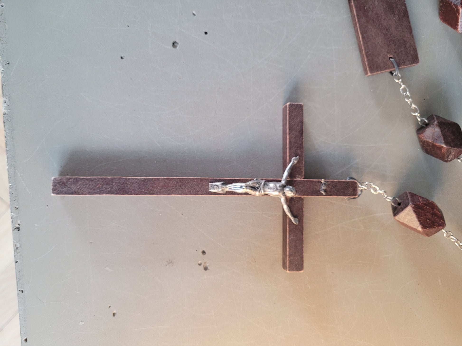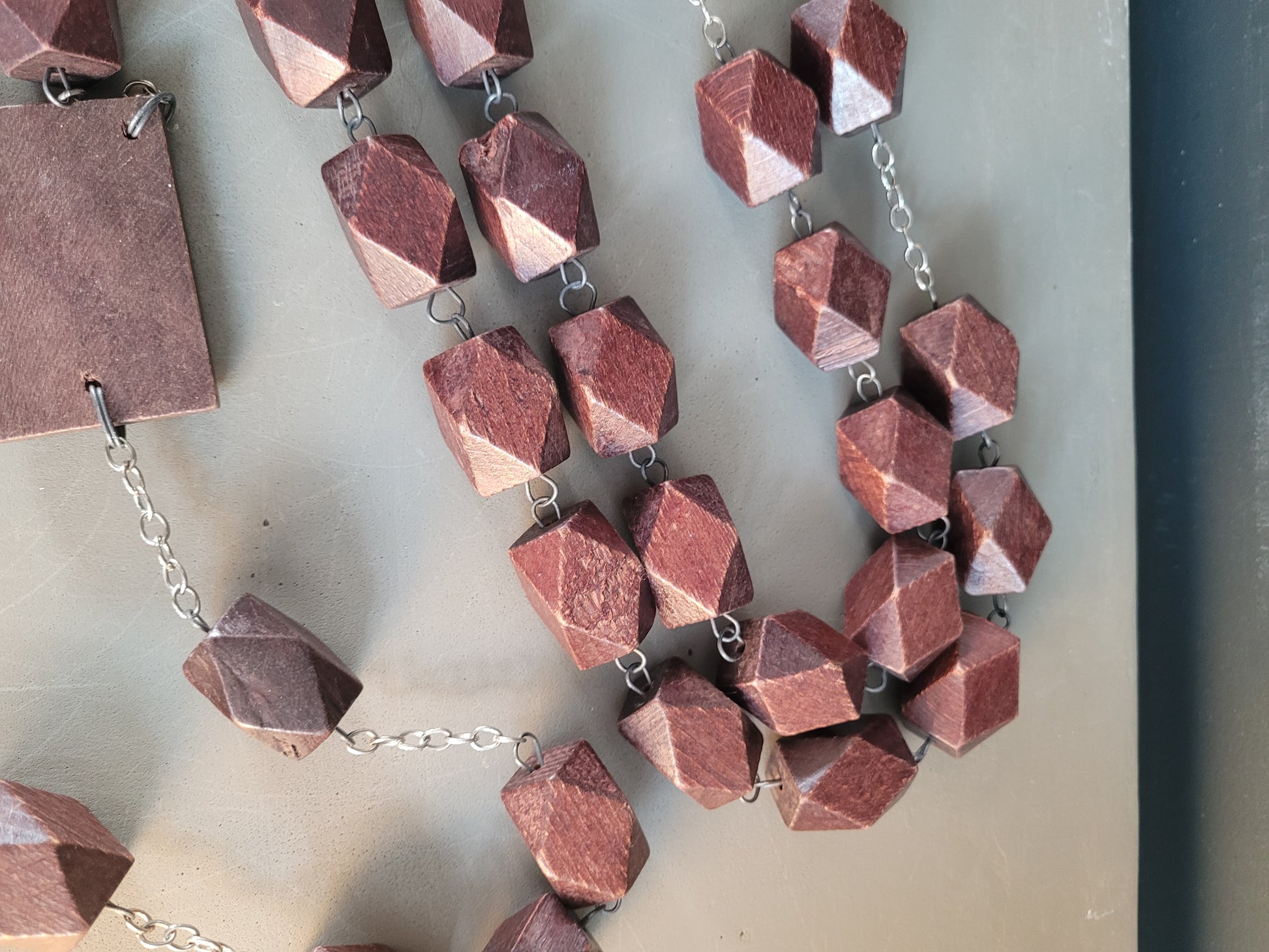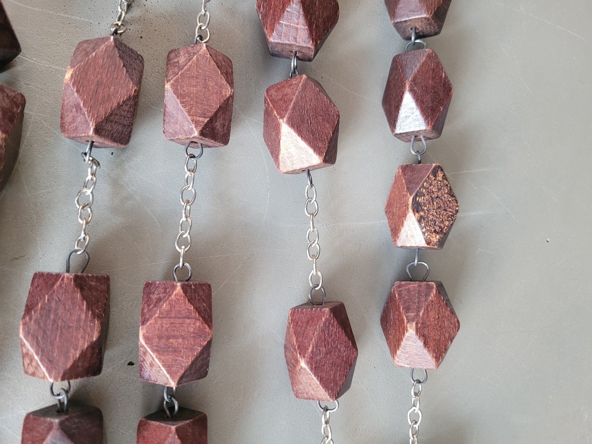 Ce grand chapelet ancien de 170 cm de long, est réalisé en perles de bois taillées, à 14 facettes chacune.