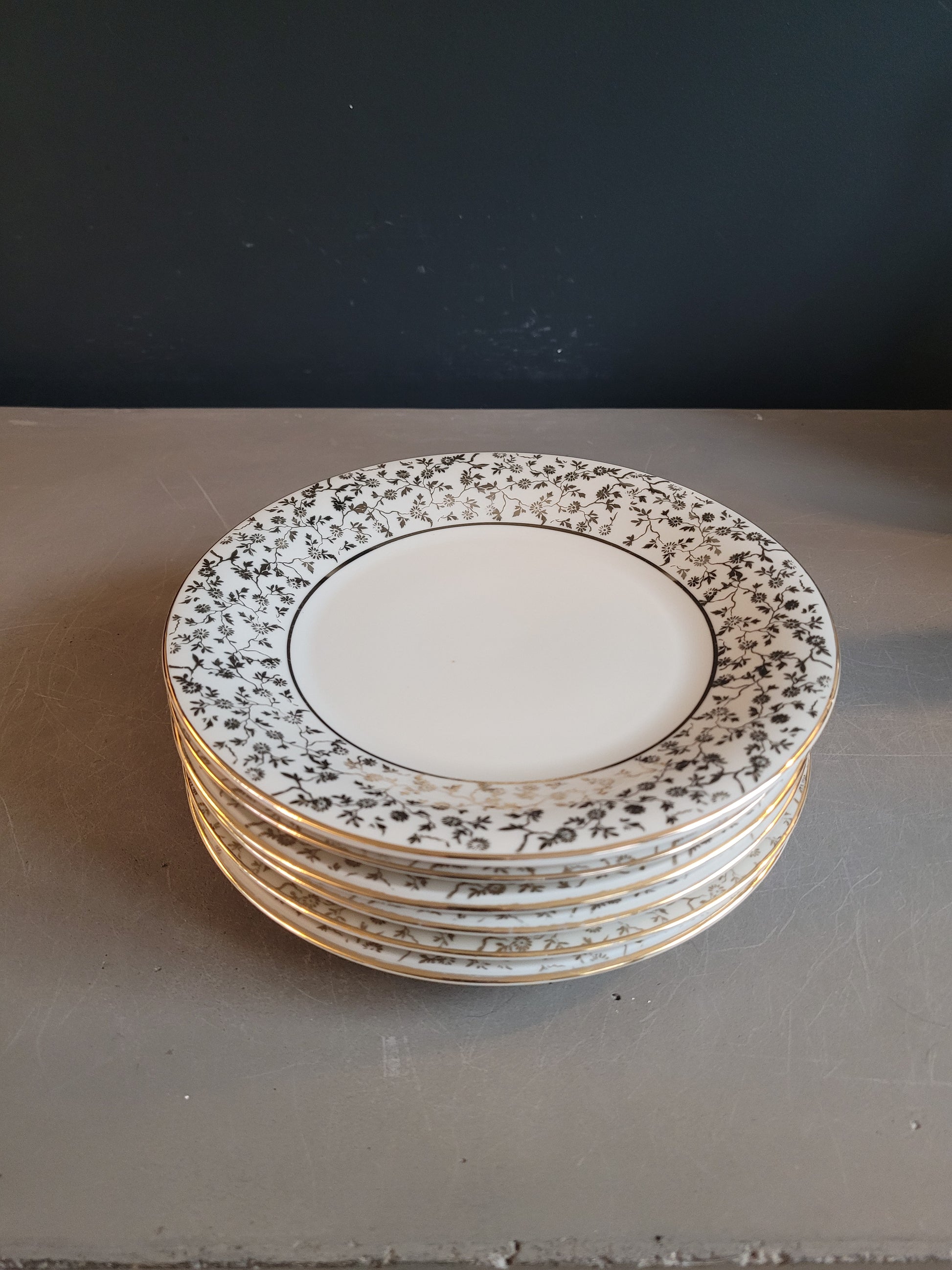 Tips modernité : fonctionne très bien en dépareillées avec d'autres assiettes à motifs dorés!