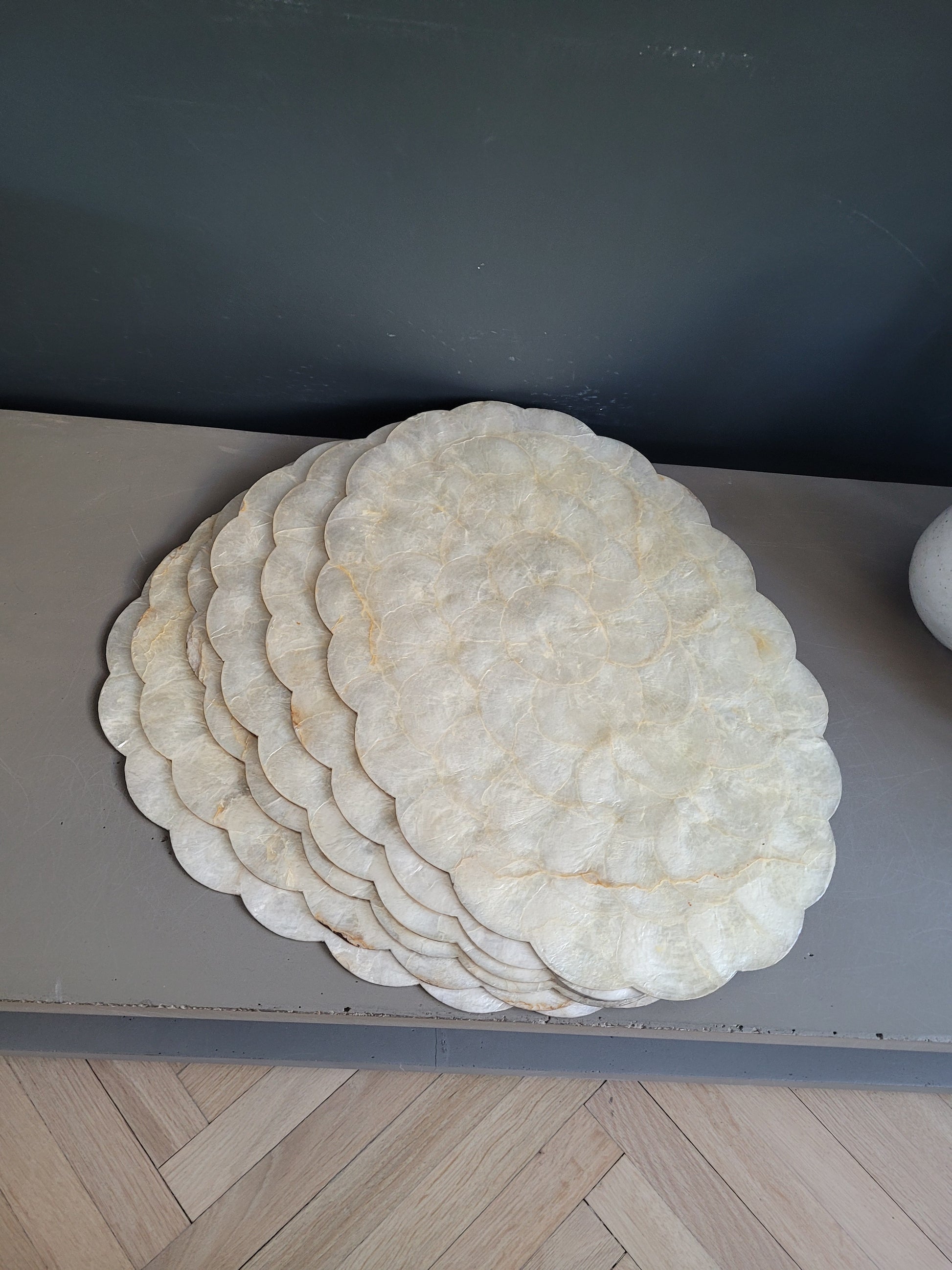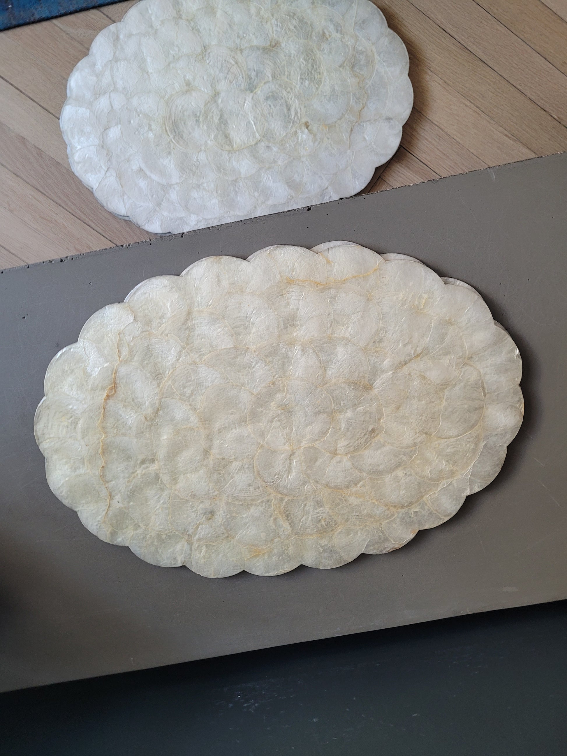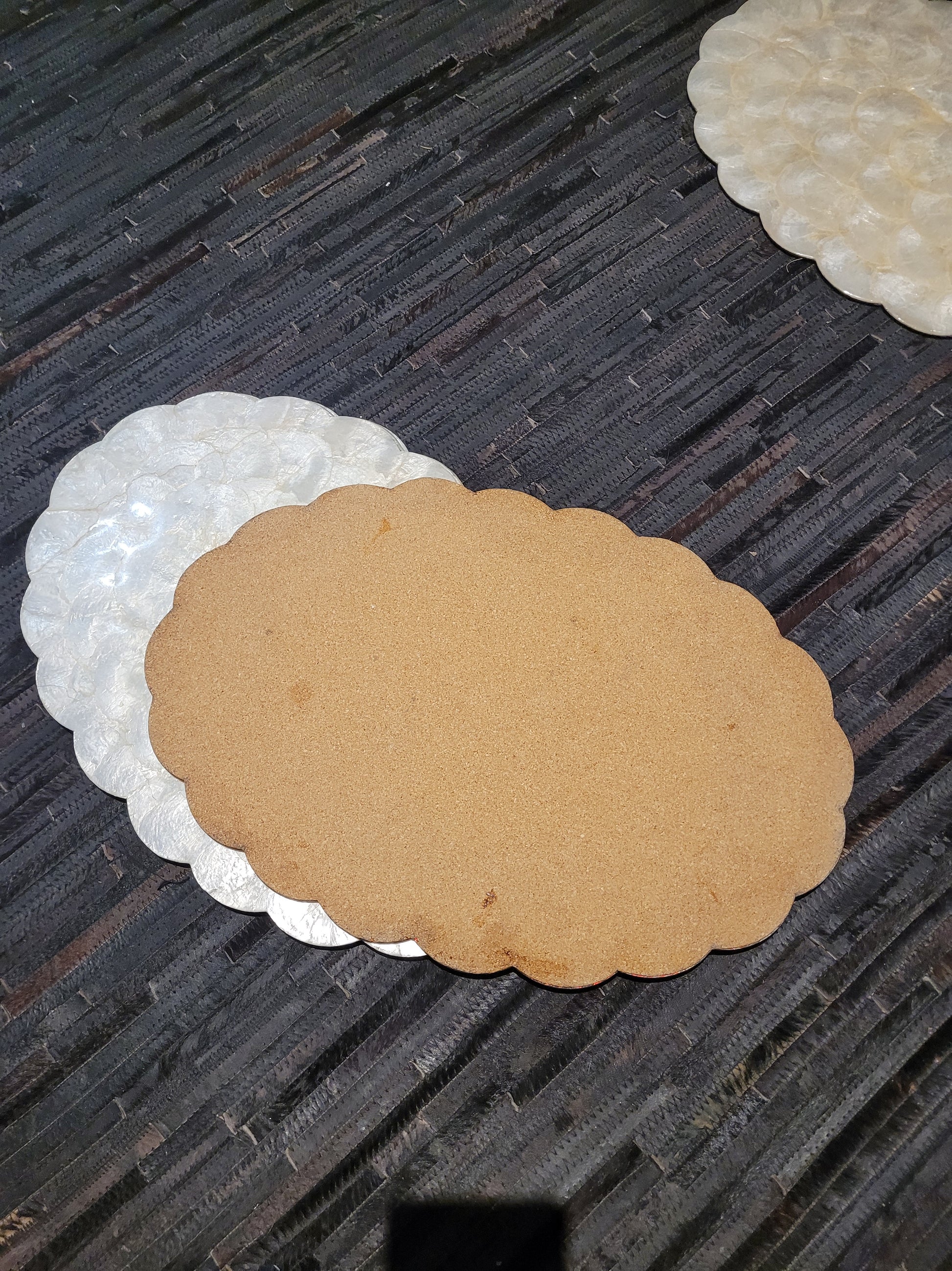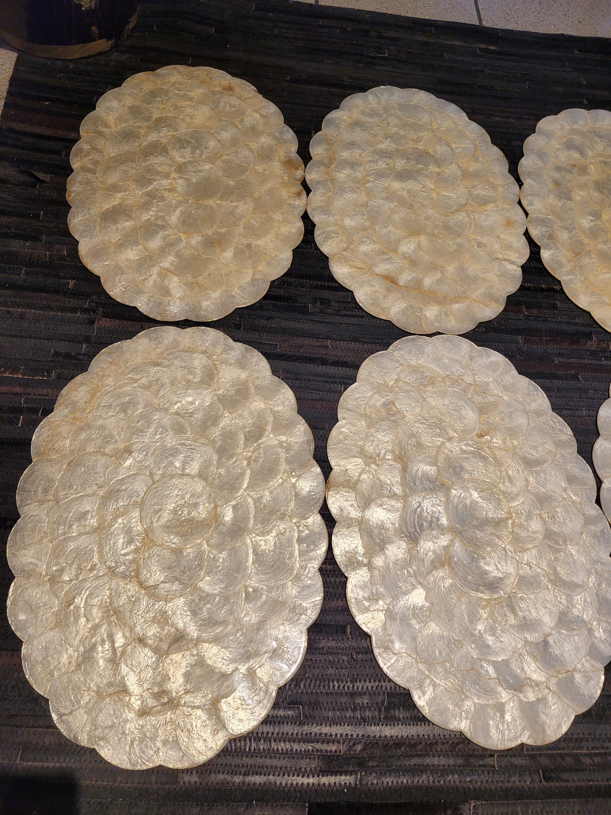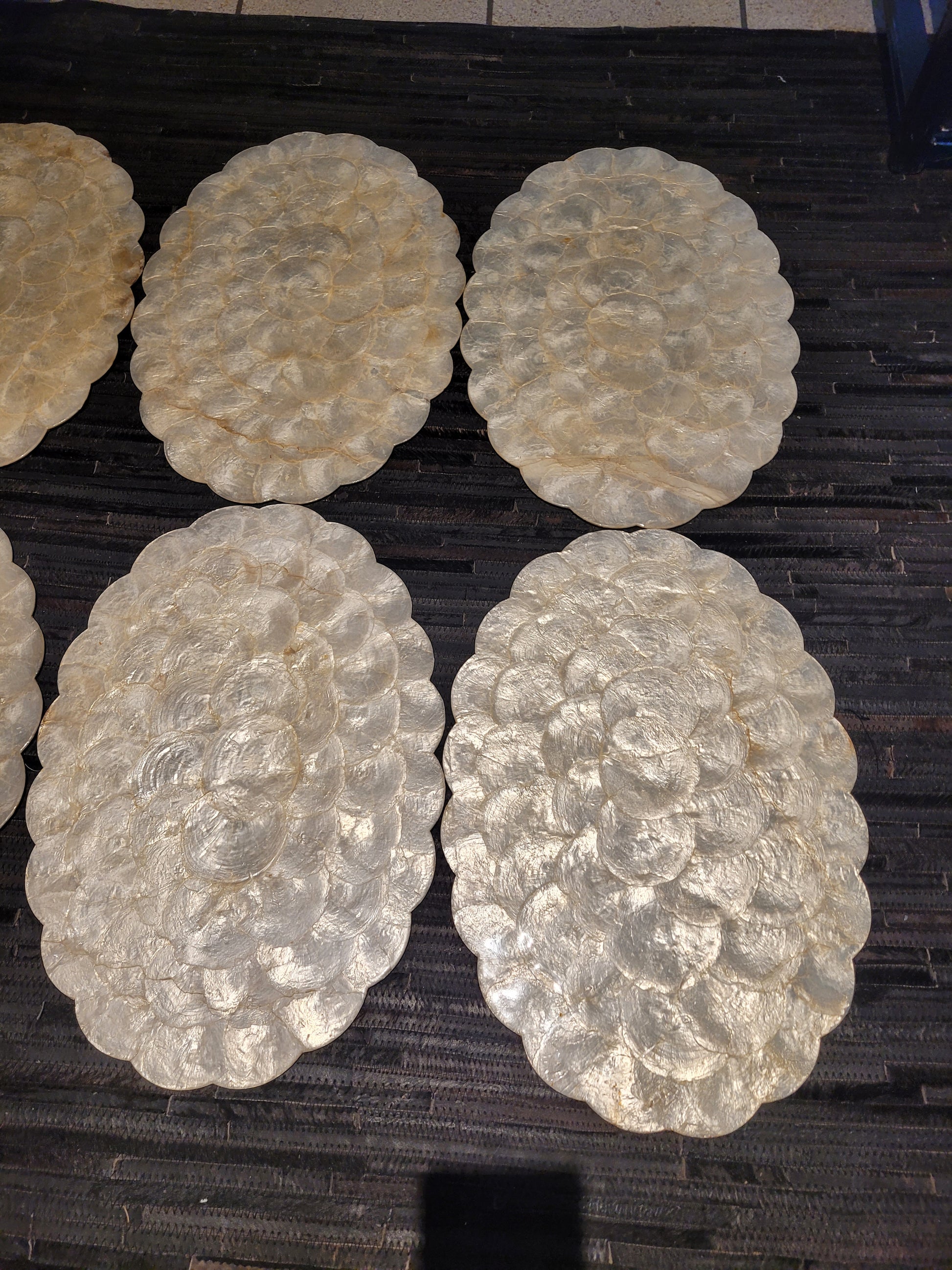 Lot de 6 sets de table en nacre sur liège.