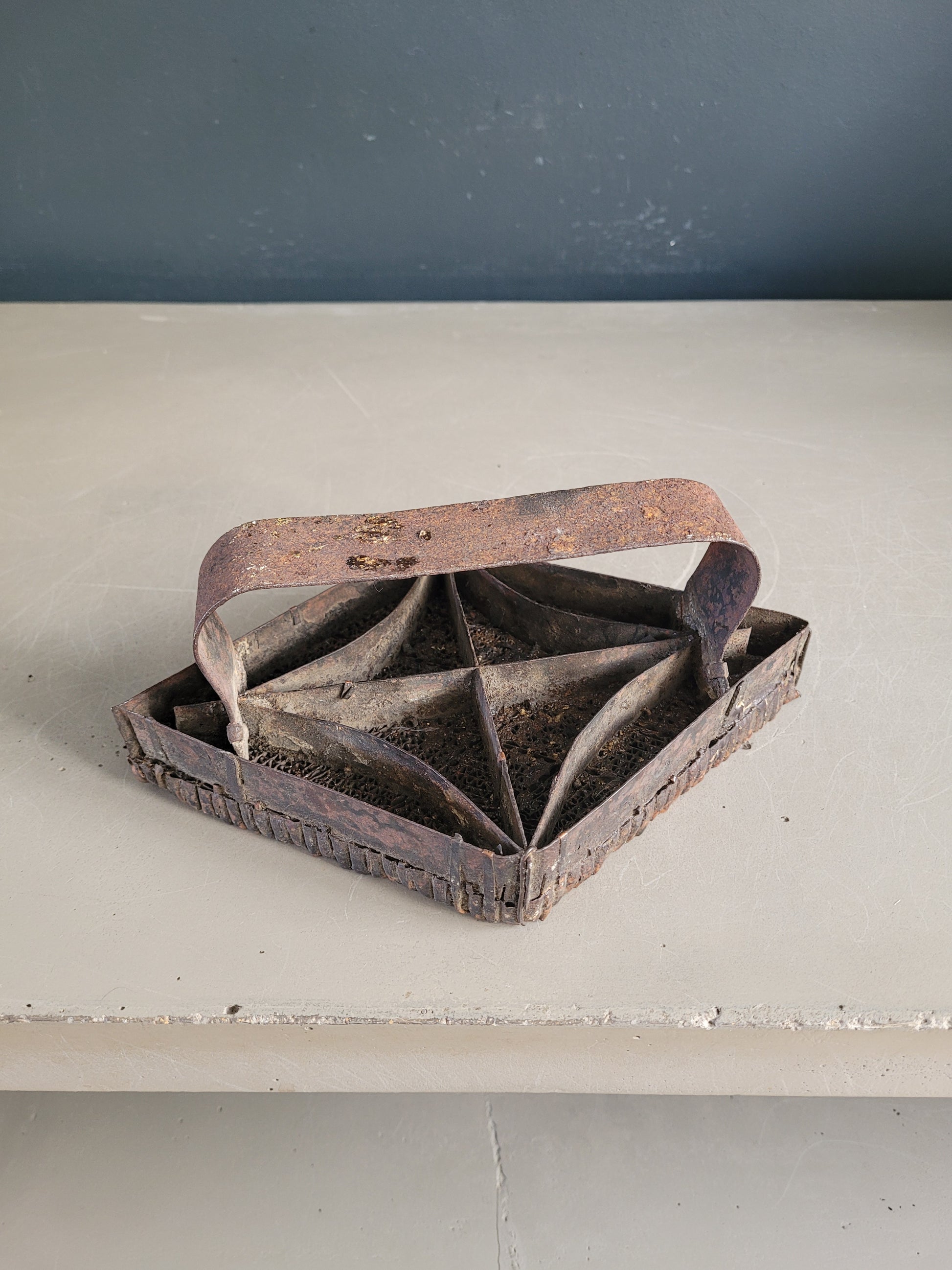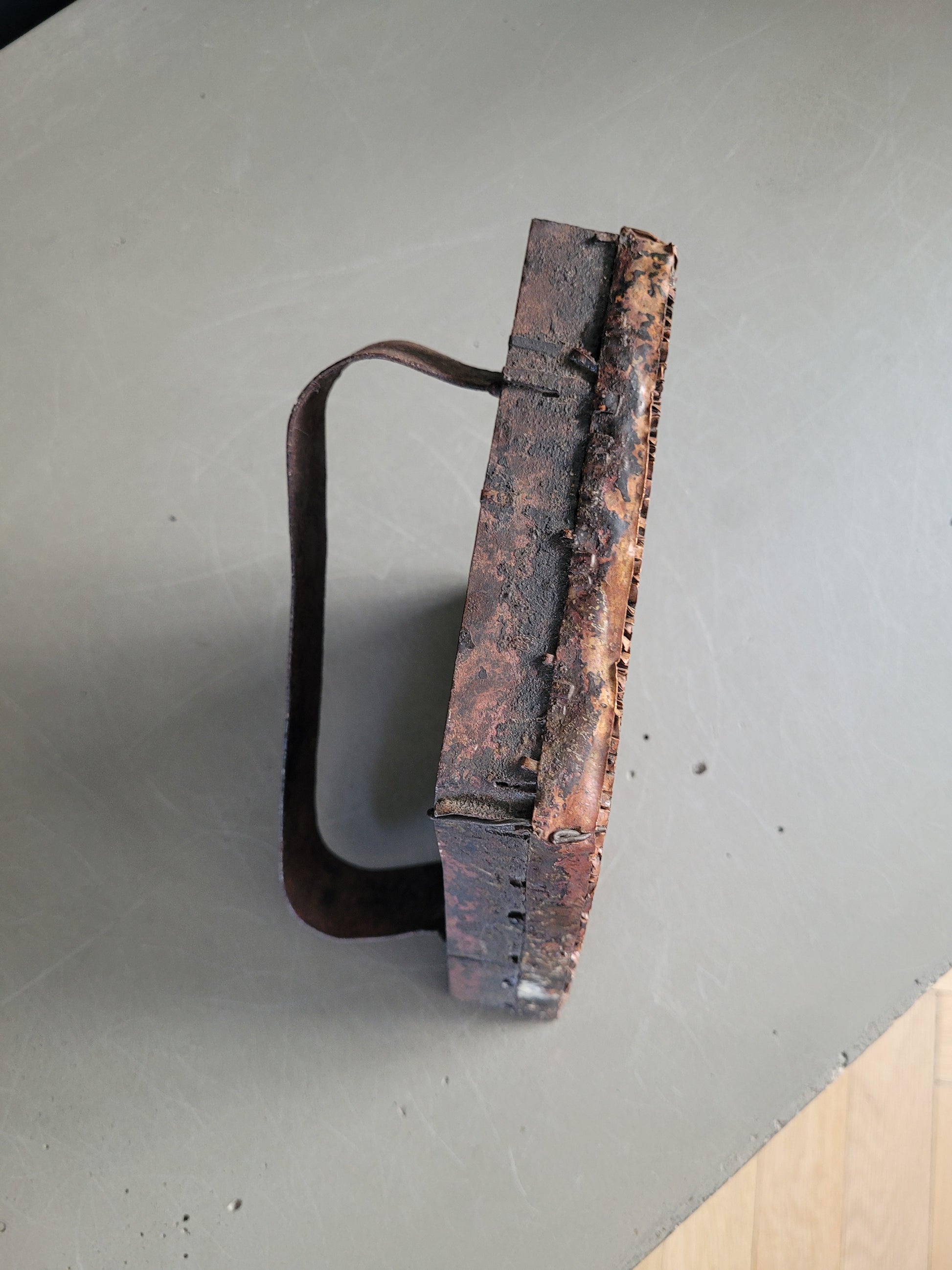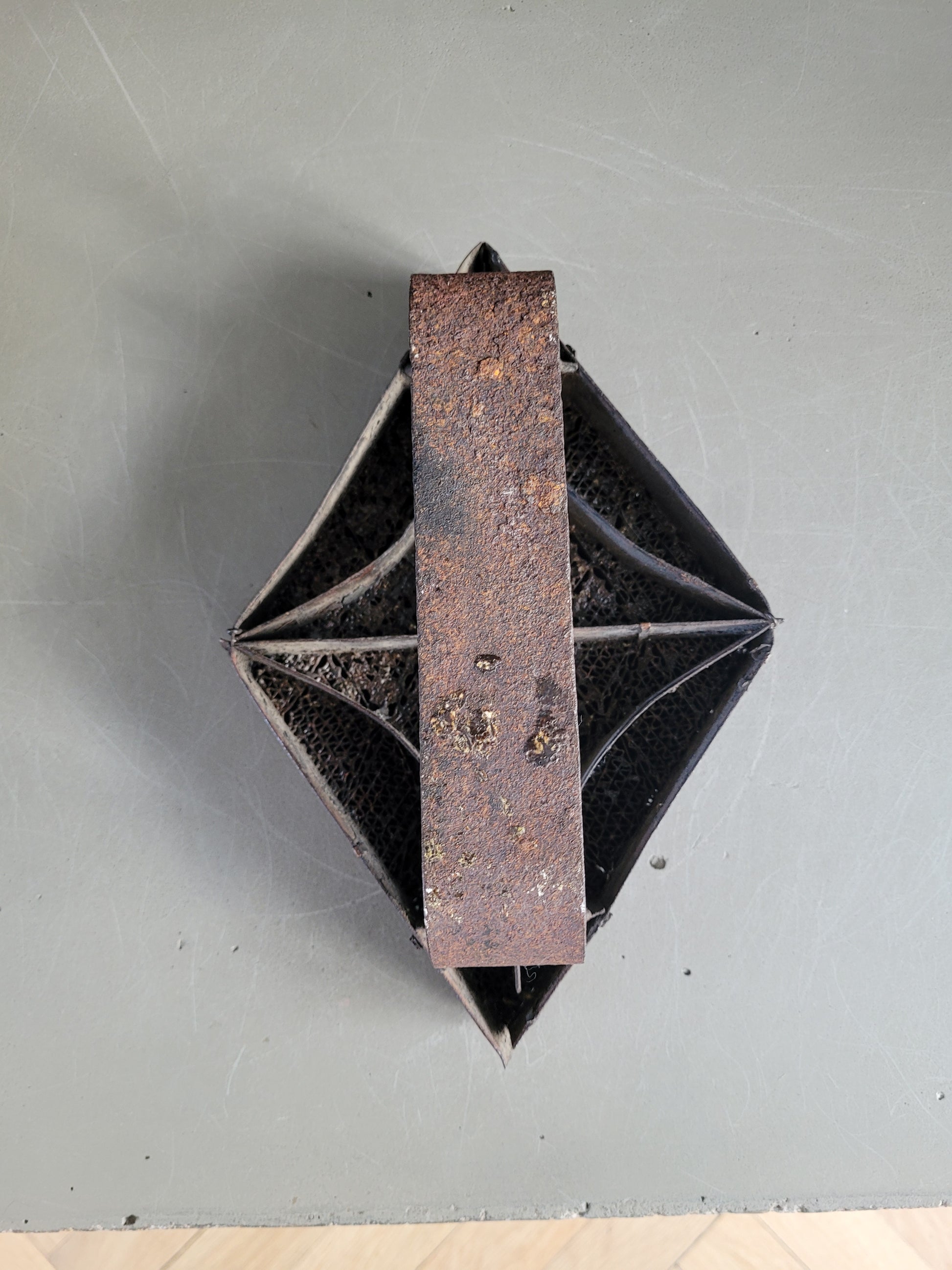 Dans son jus mais en très bon état de solidité, aucun jeu, aucun défaut de soudure. Certaines lamelles ont bougé mais sont redressables facilement (ou à laisser telles quelles pour un rendu plus changeant). Il reste des traces de cire, vestiges de son utilisation passée.