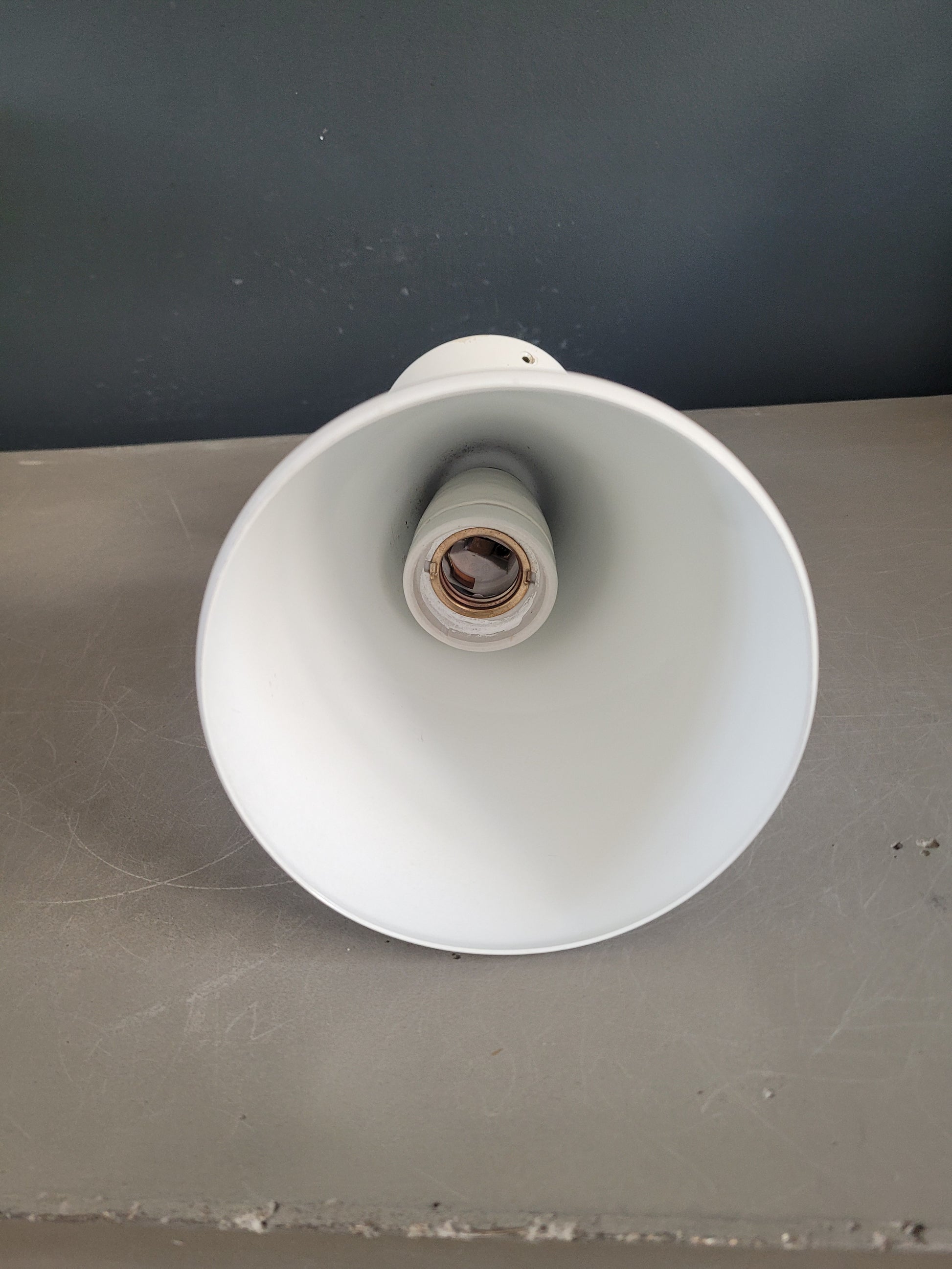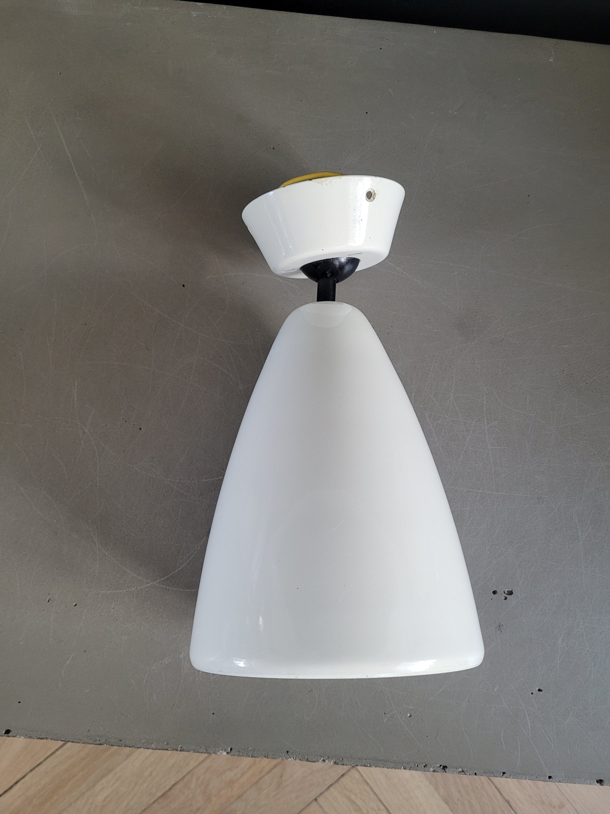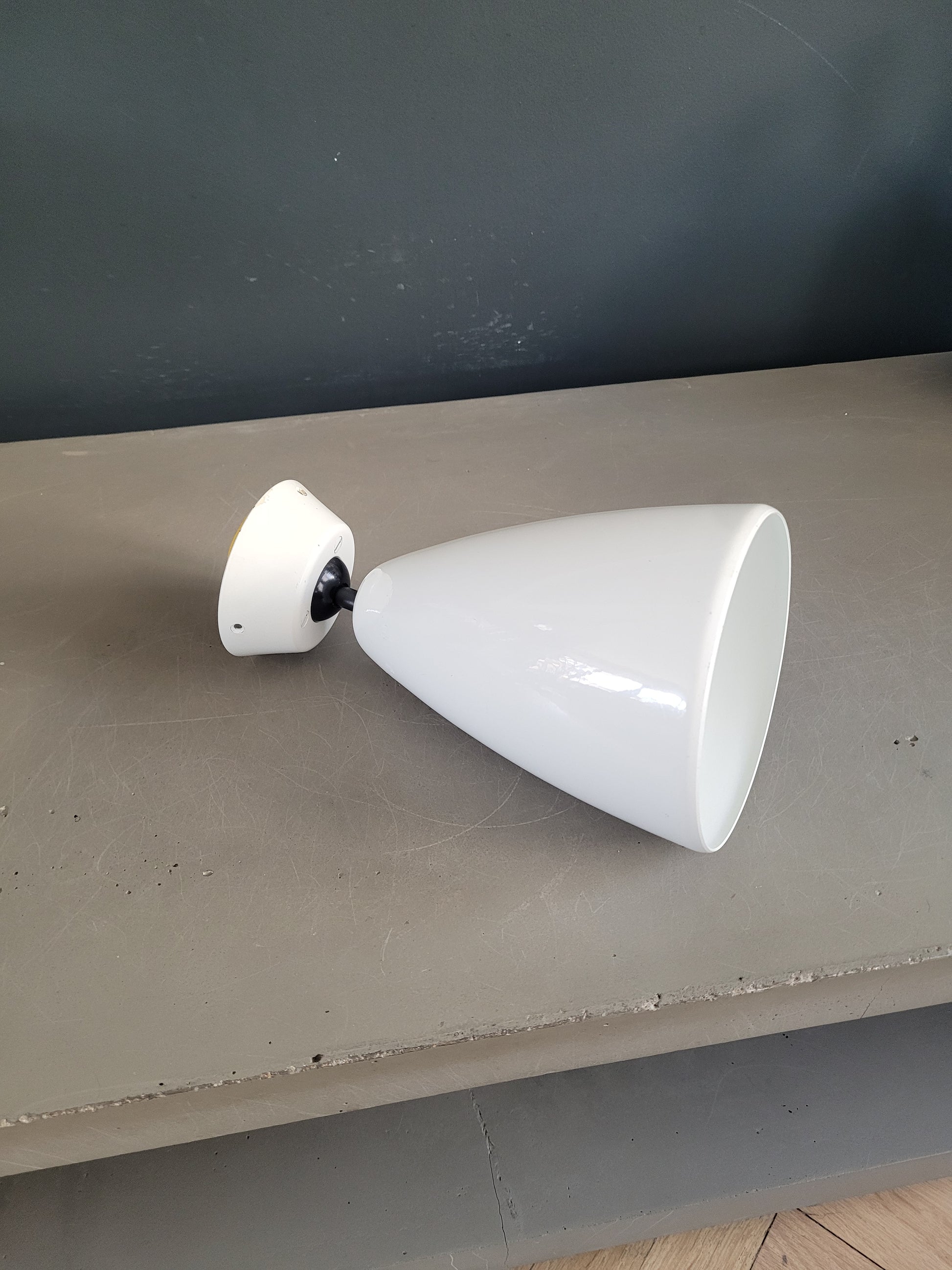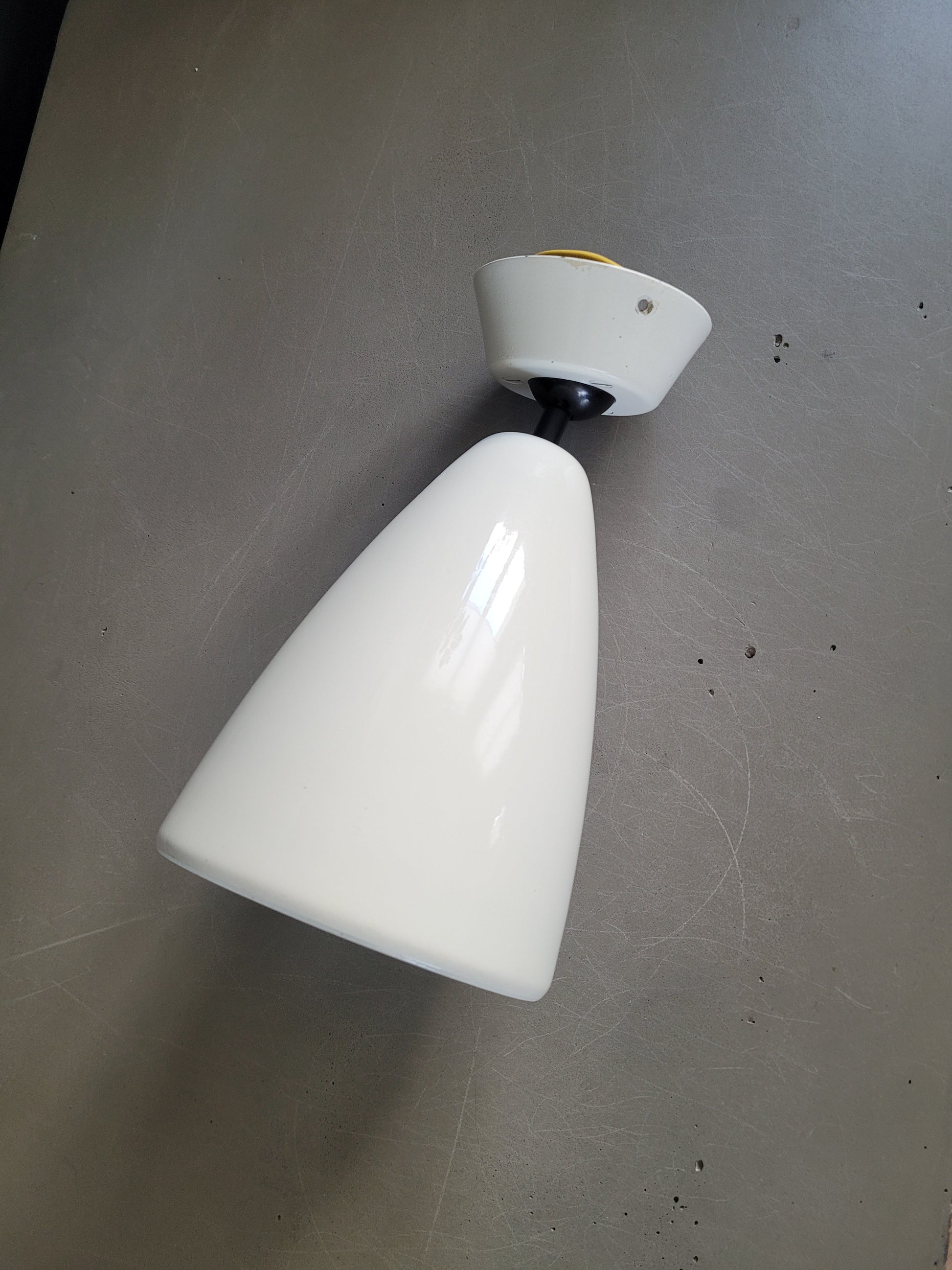 Sublime applique ancienne en métal laqué blanc, en forme de cône. La rosace est en métal laqué également.