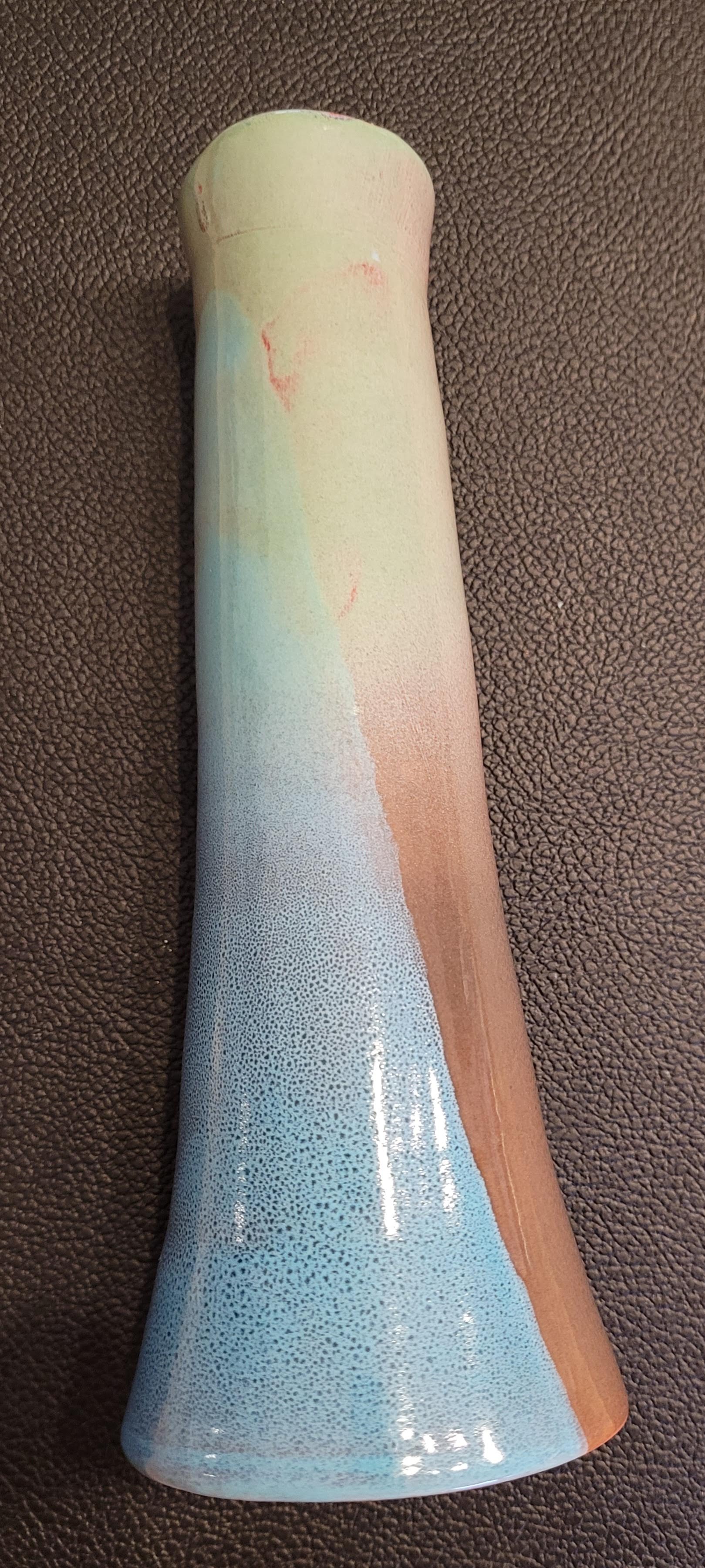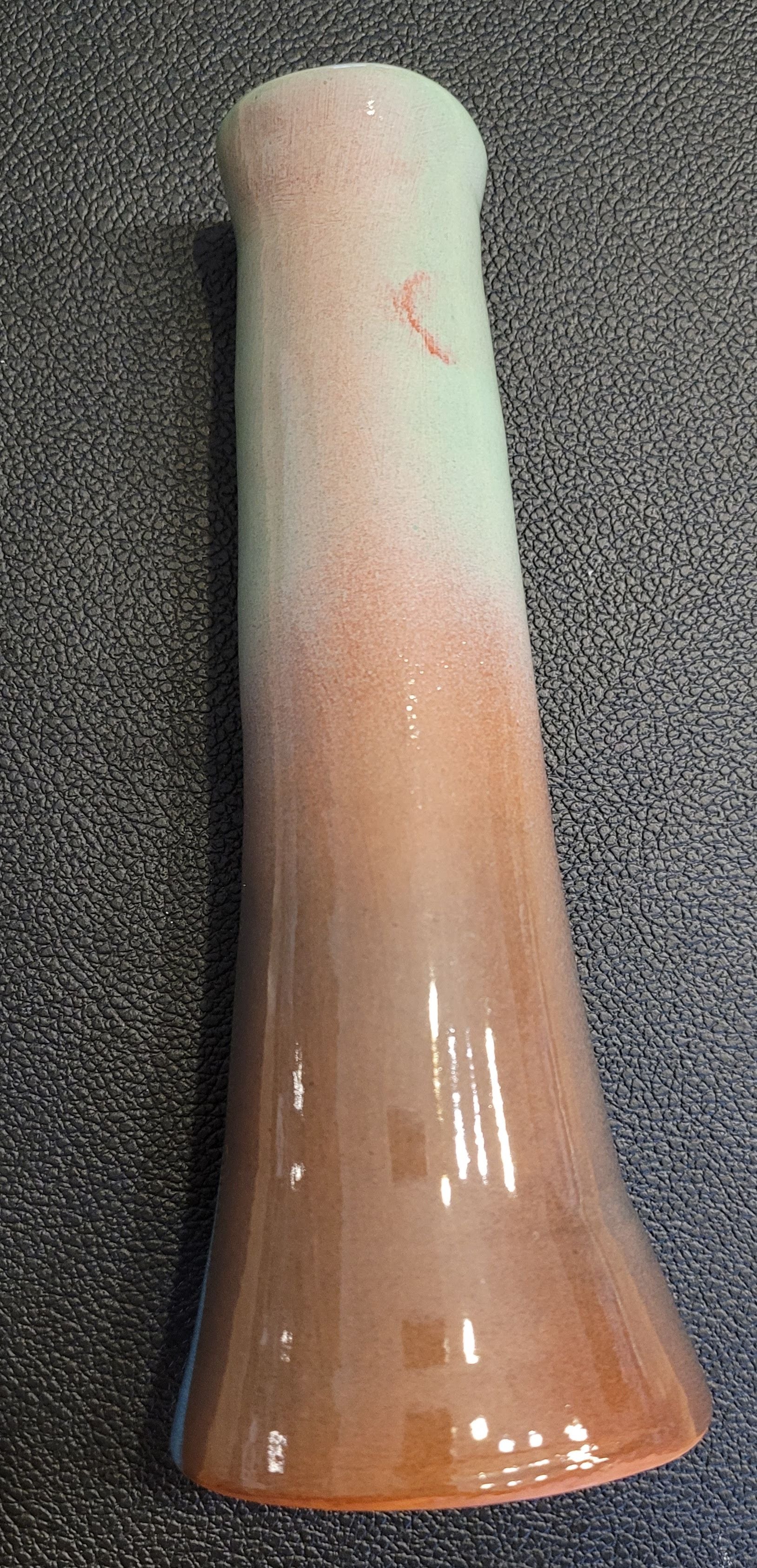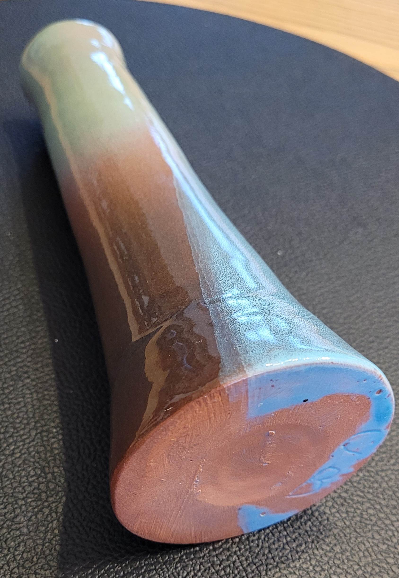 Superbe bougeoir (ou vase soliflore) en terre cuite émaillée, signé CB.
