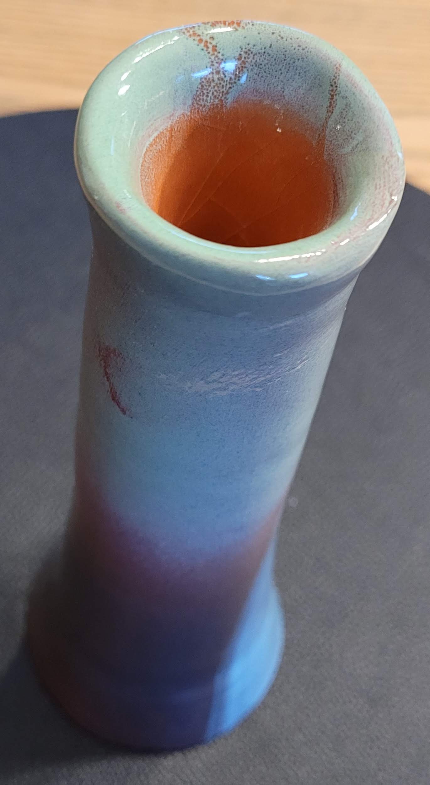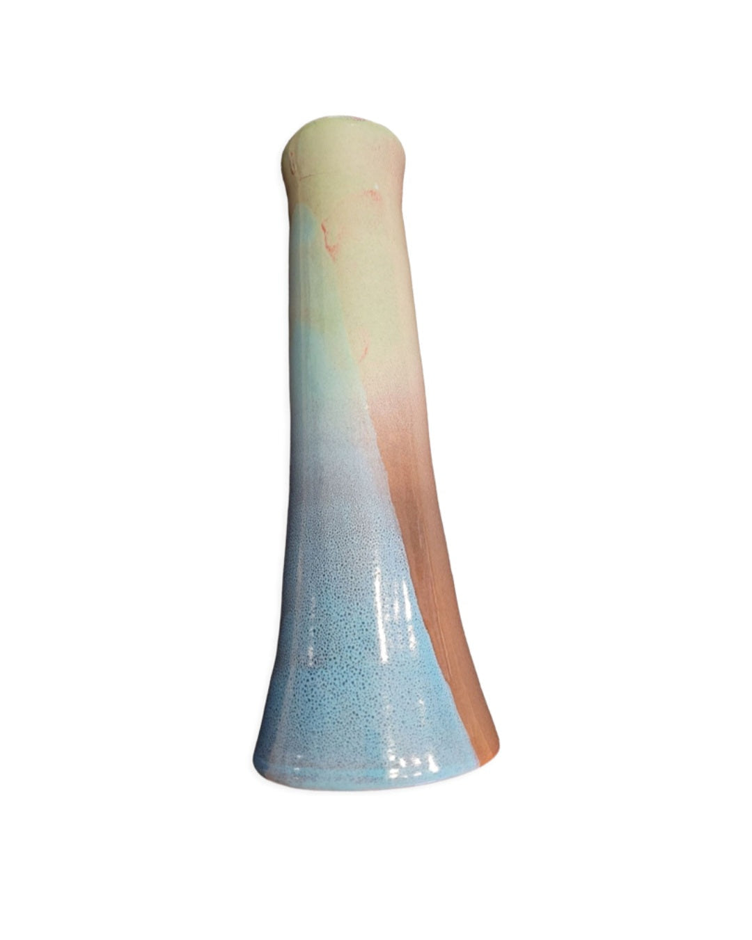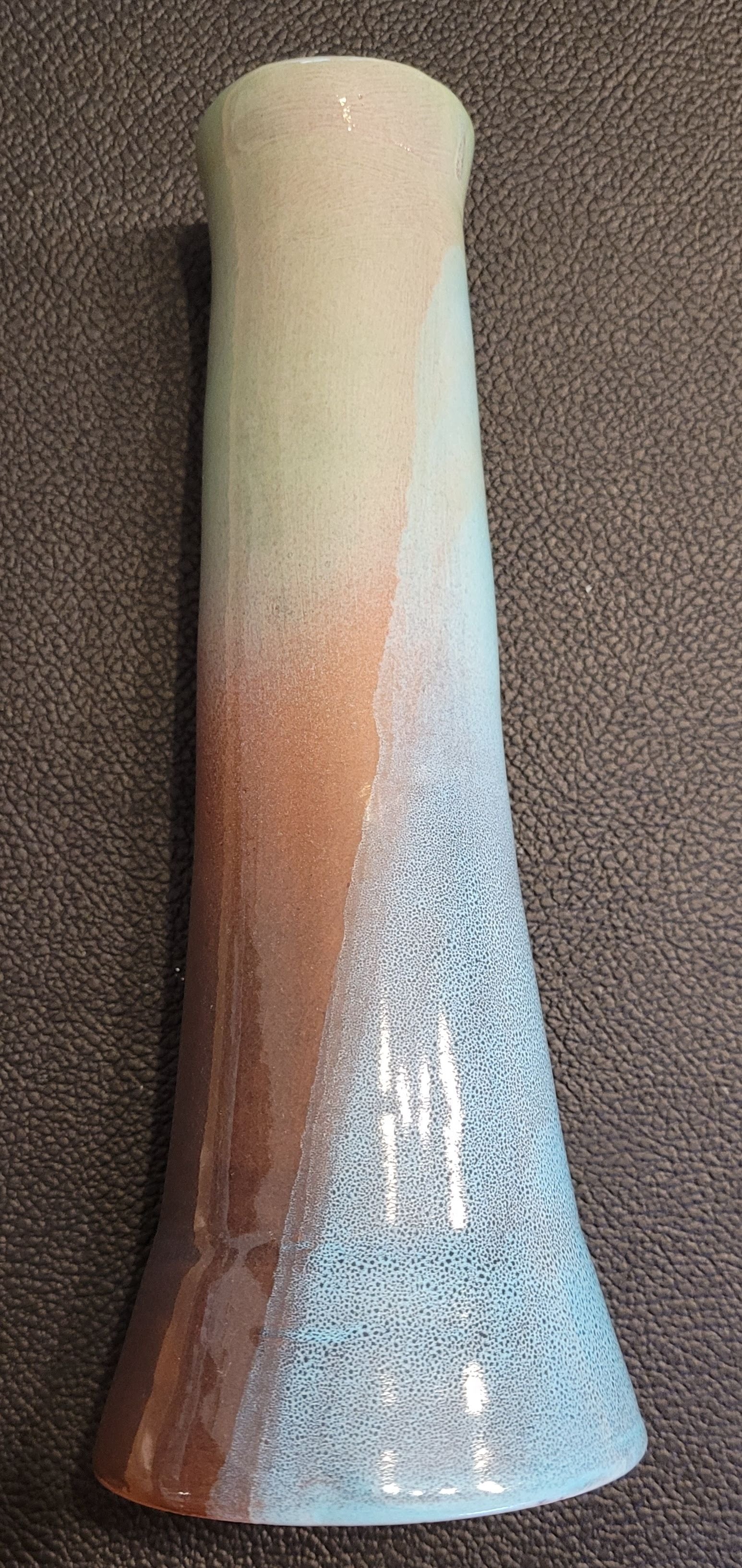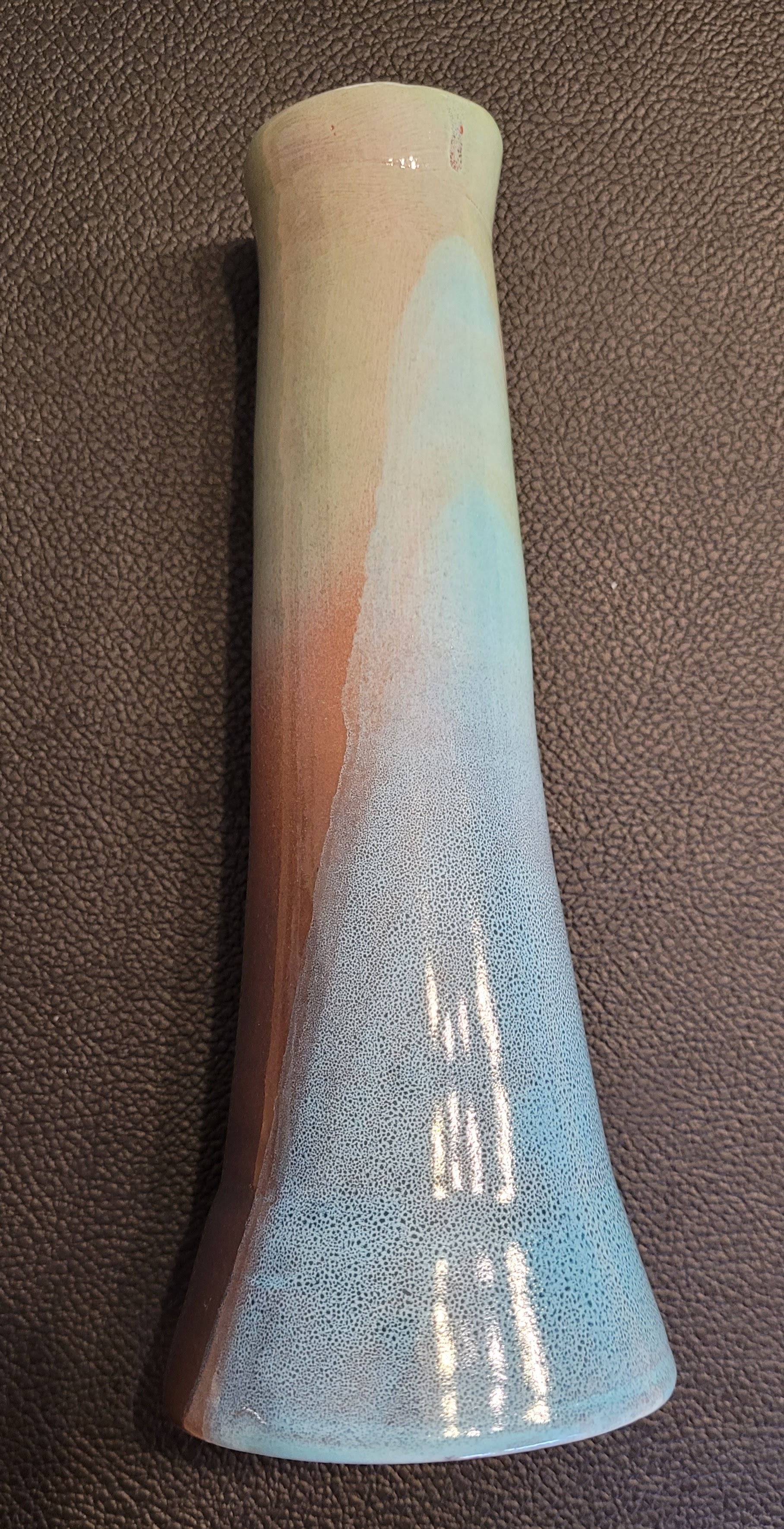 Superbe bougeoir (ou vase soliflore) en terre cuite émaillée, signé CB.