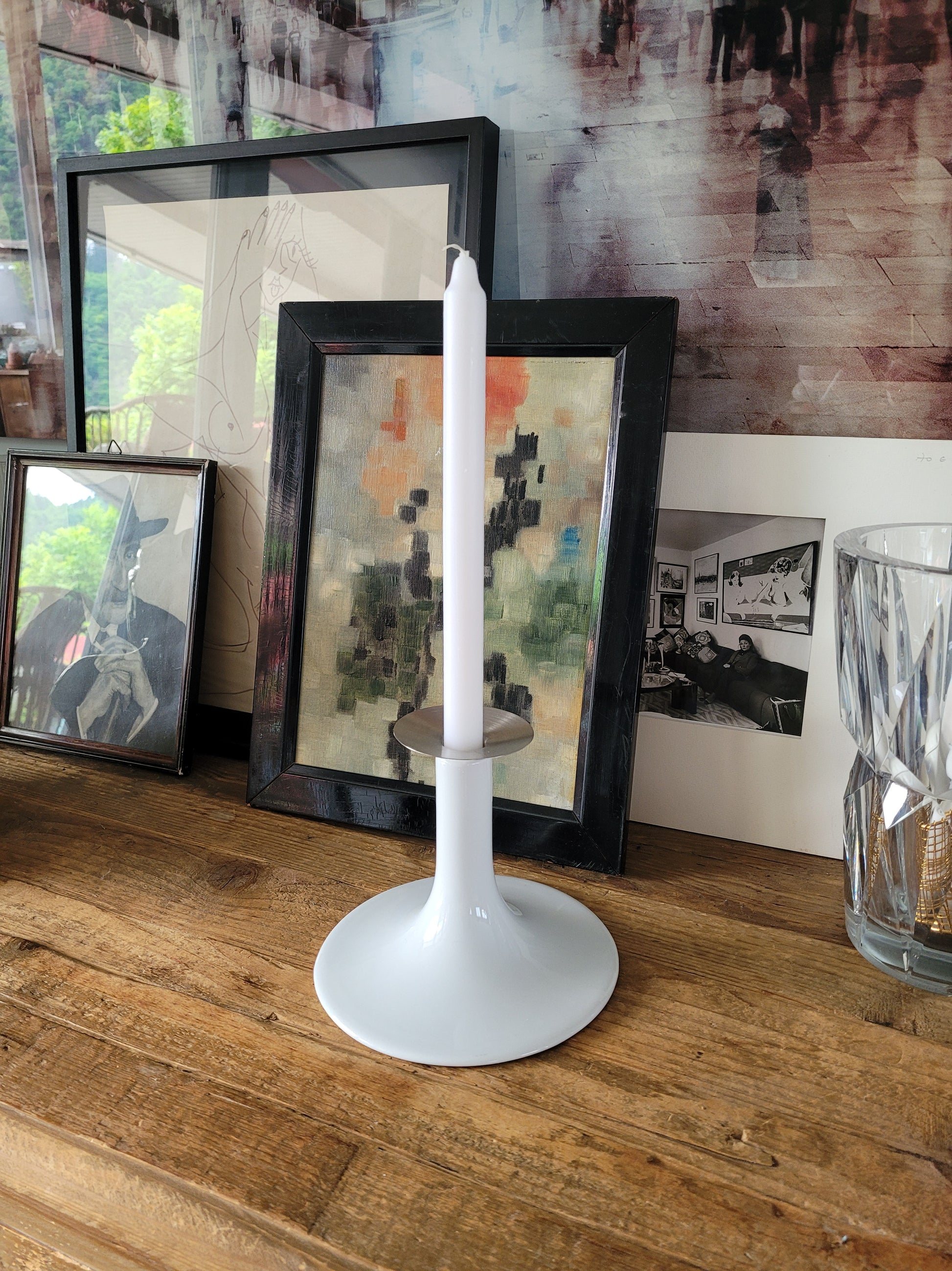 Sublime bougeoir Ikea en porcelaine blanc pur et inox.