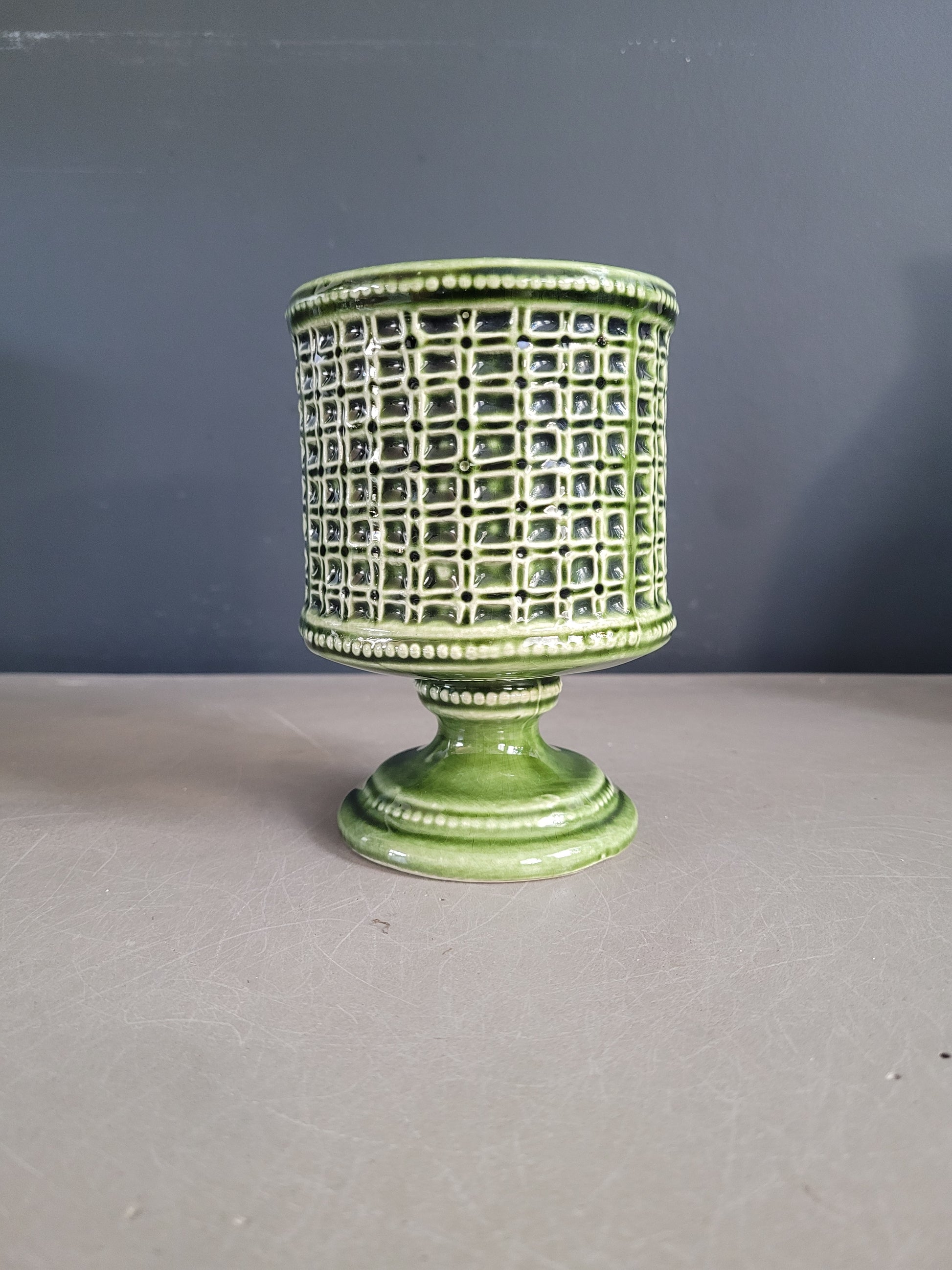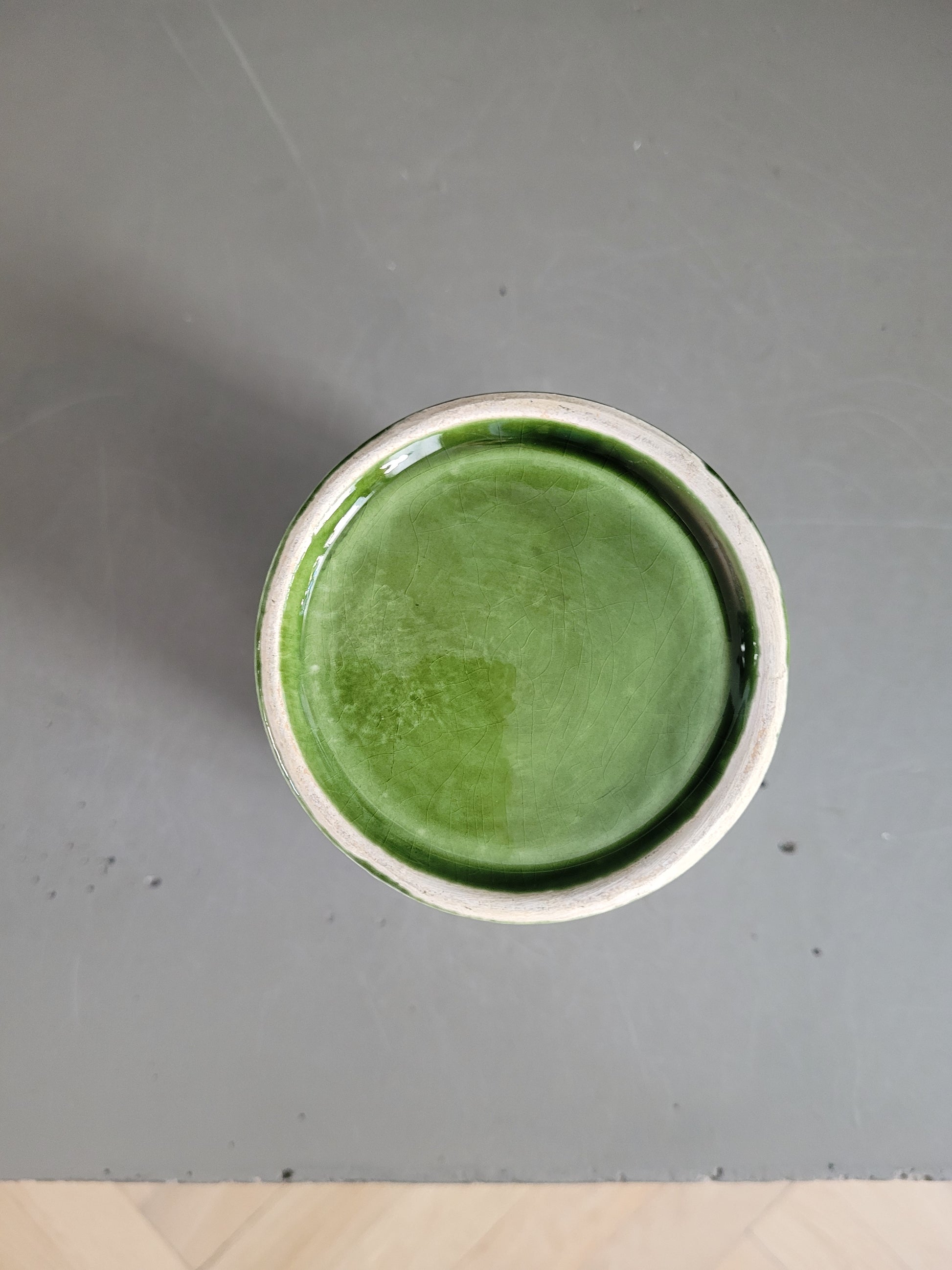 Cache-pot sur pied en céramique émaillée verte - Ref 568