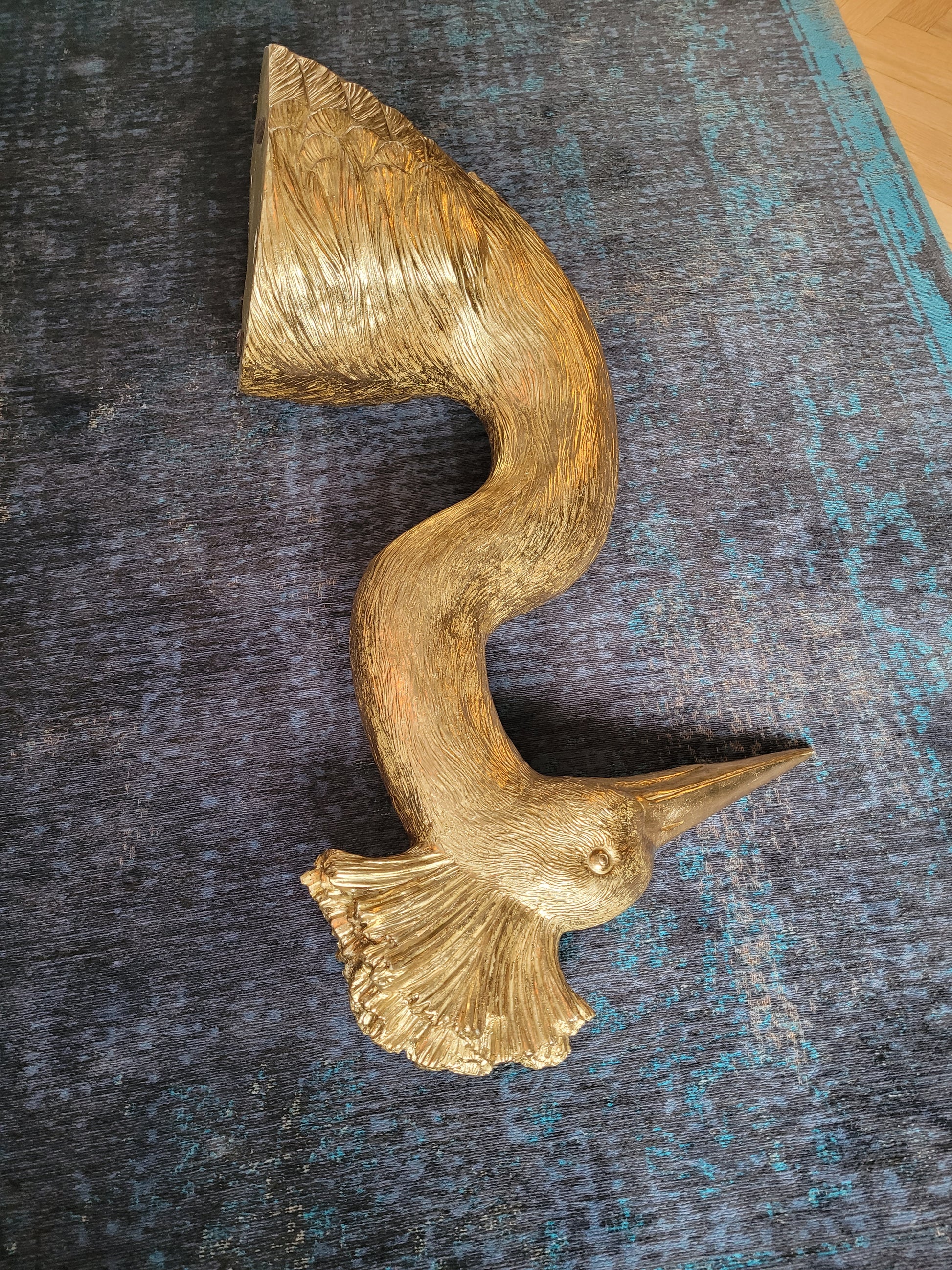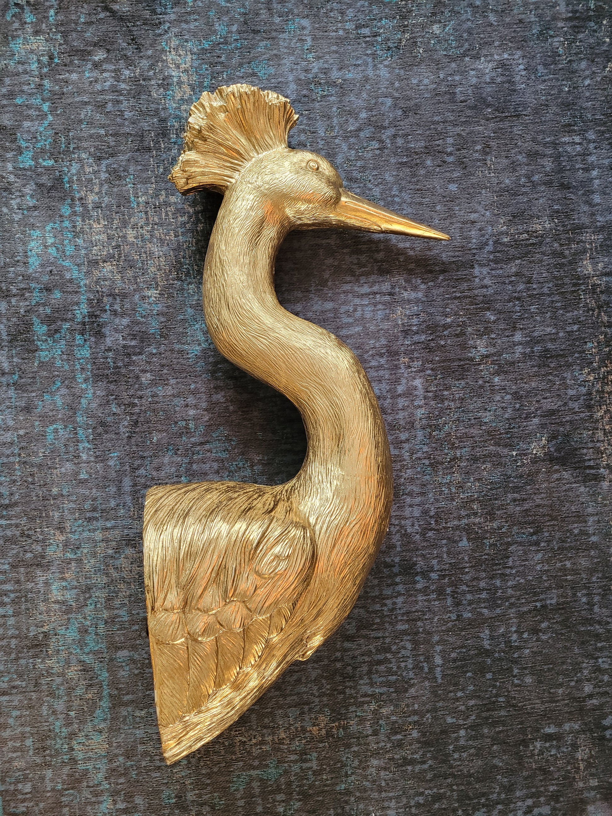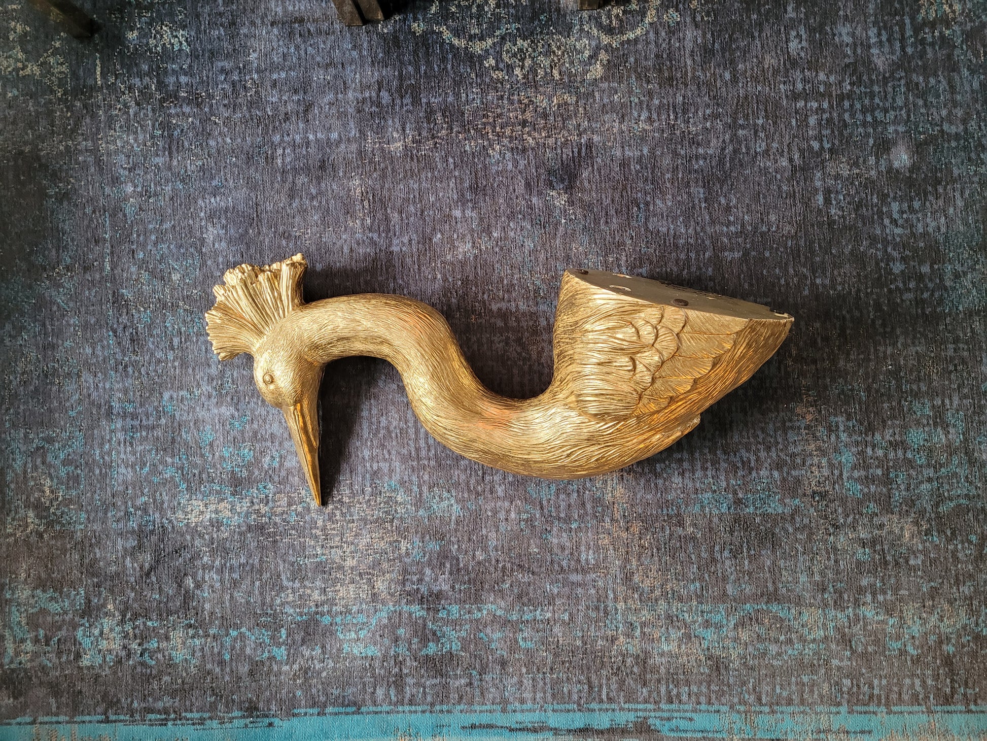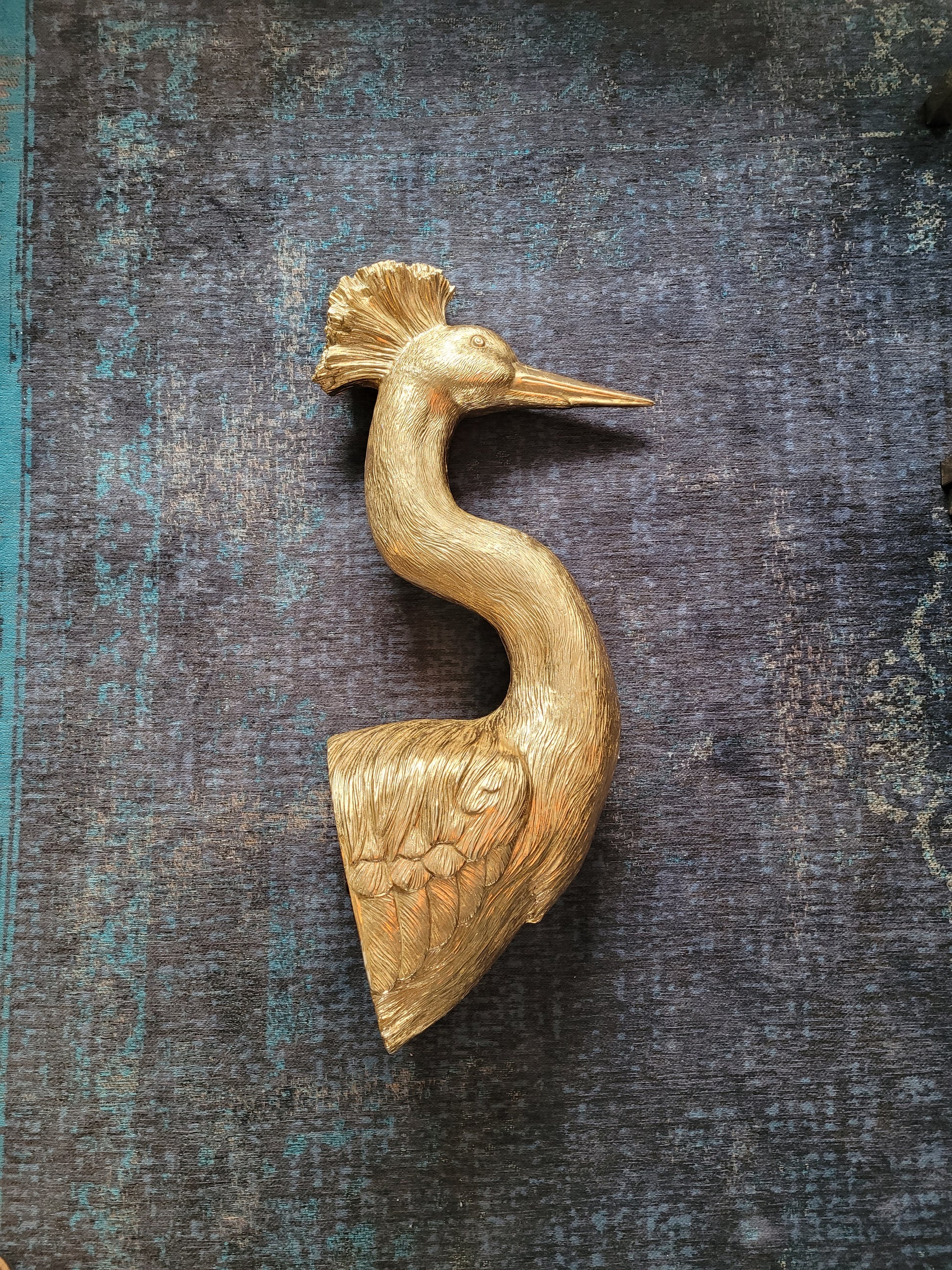 Super décoratif et original, ce paon en résine peint en doré évoque la taxidermie mais sur un ton léger et ludique !
