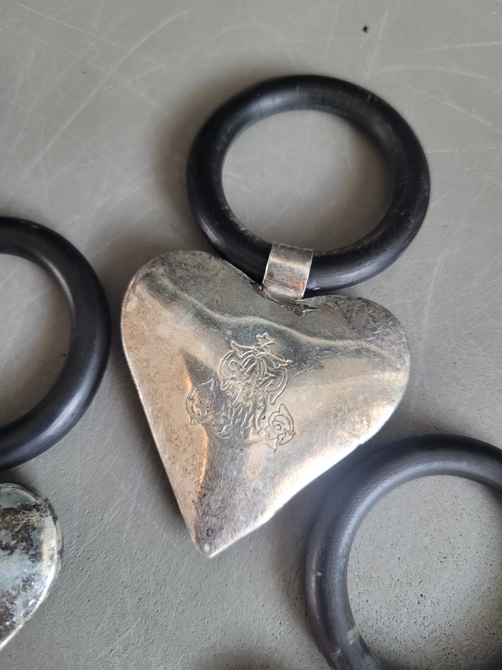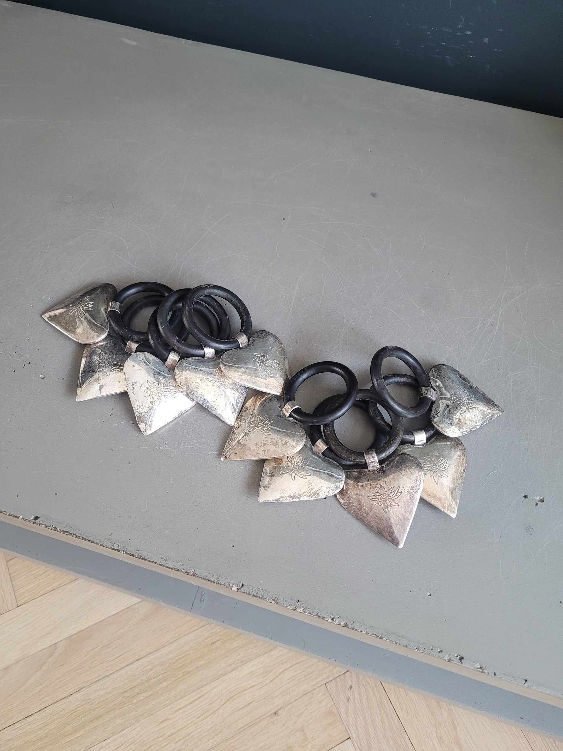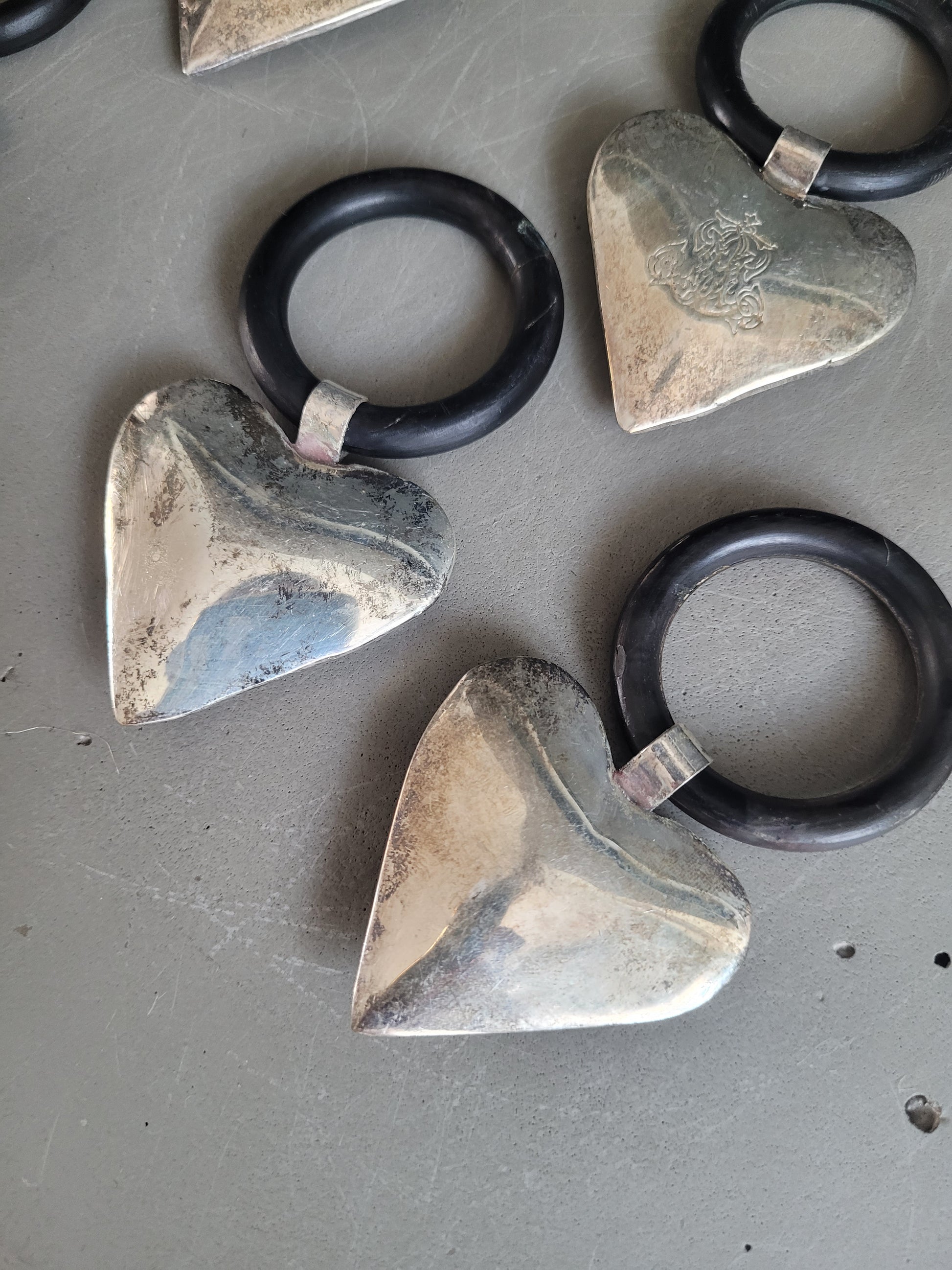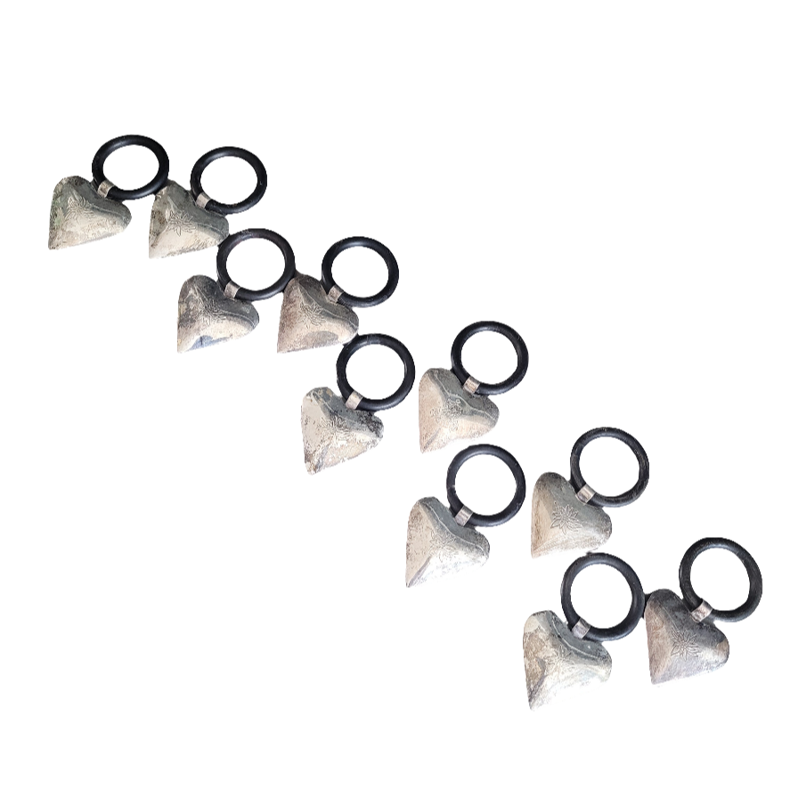 Très bel ensemble de 10 anneaux avec un cœur en volume, gravé d'un motif edelweiss sur 1 face (sauf 1 qui a un autre motif, voir photos)