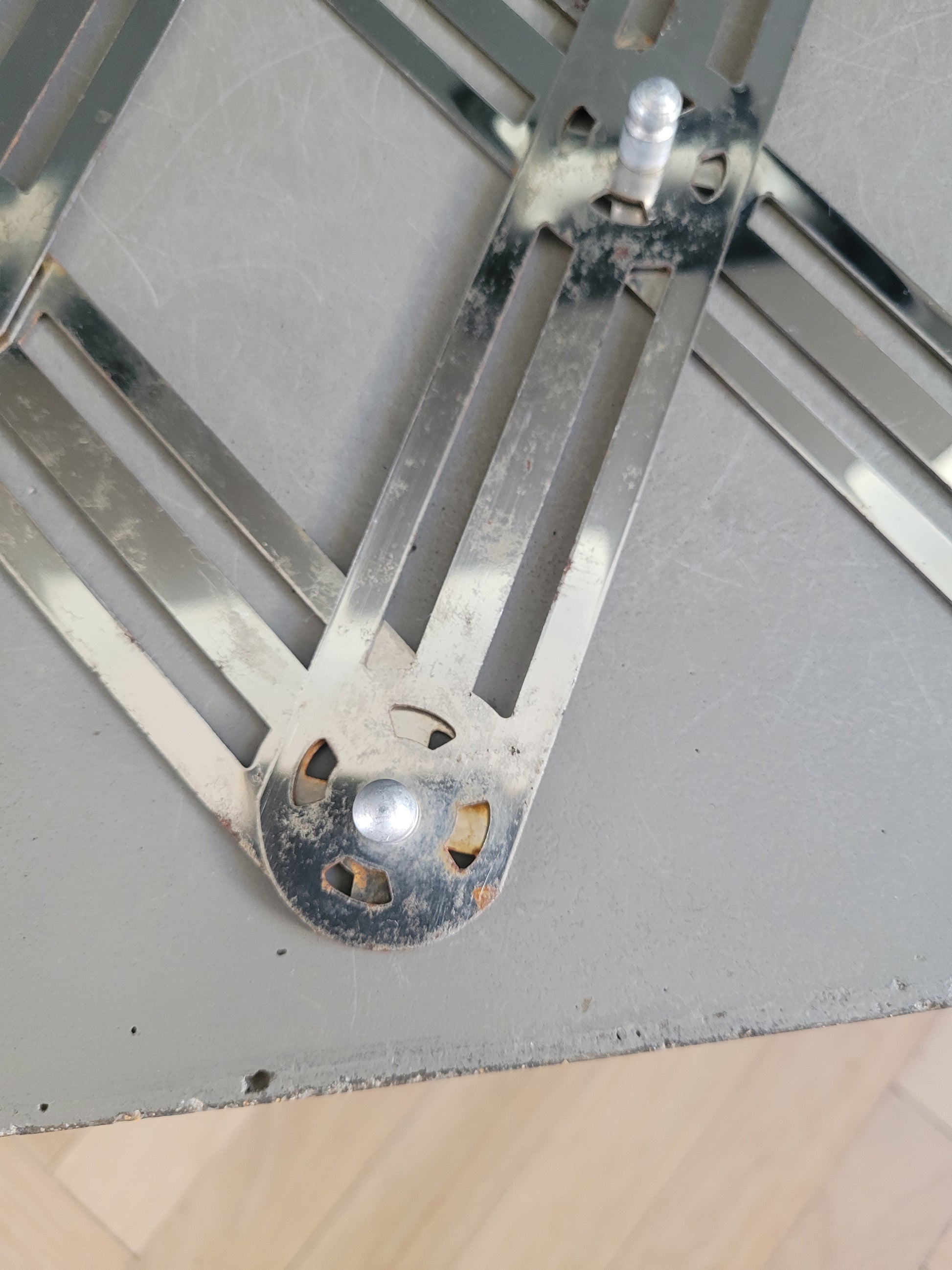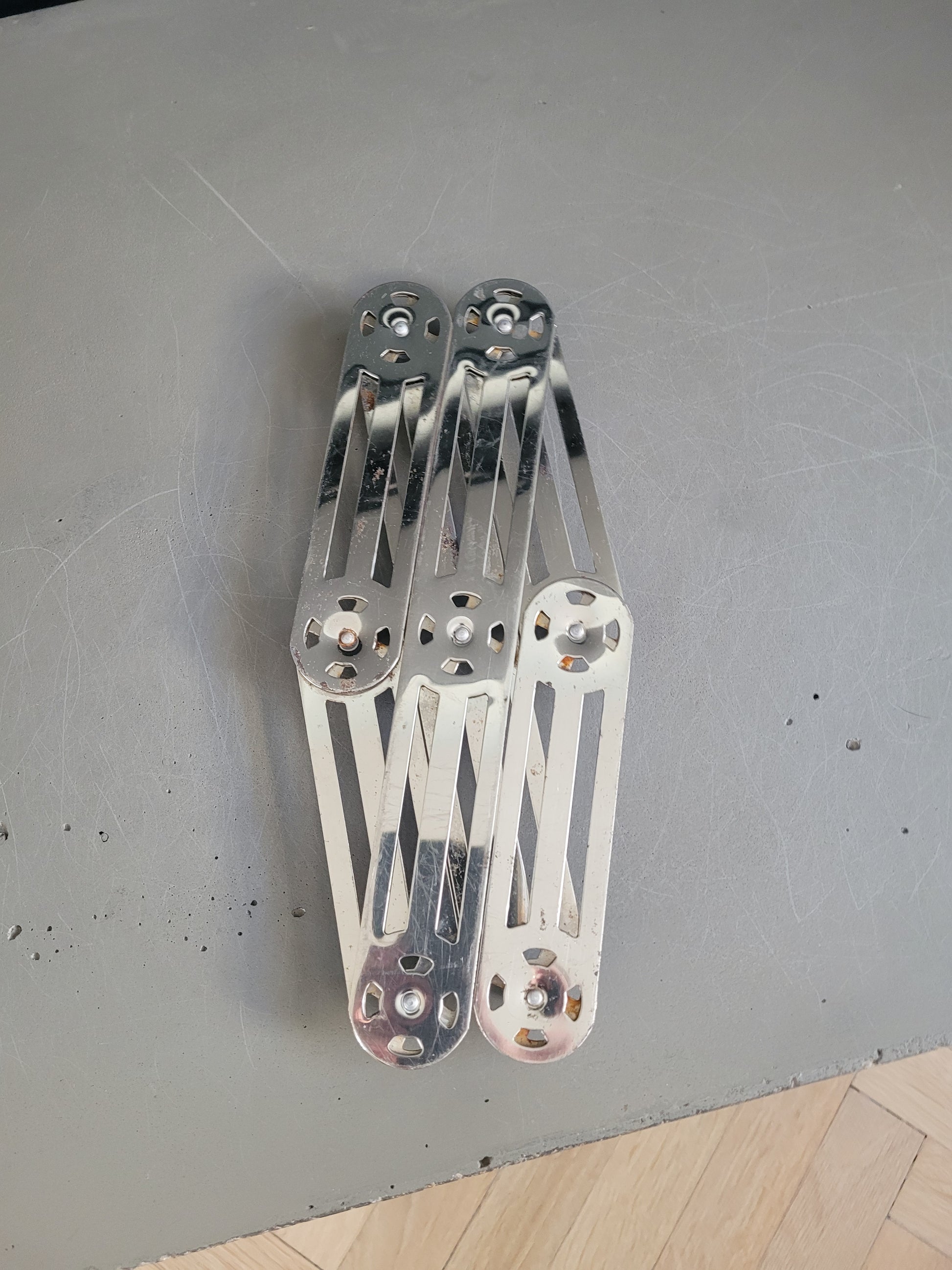 Bon état d'utilisation, quelques piqures du chrome et traces de rouille aux articulations visibles sir les photos.