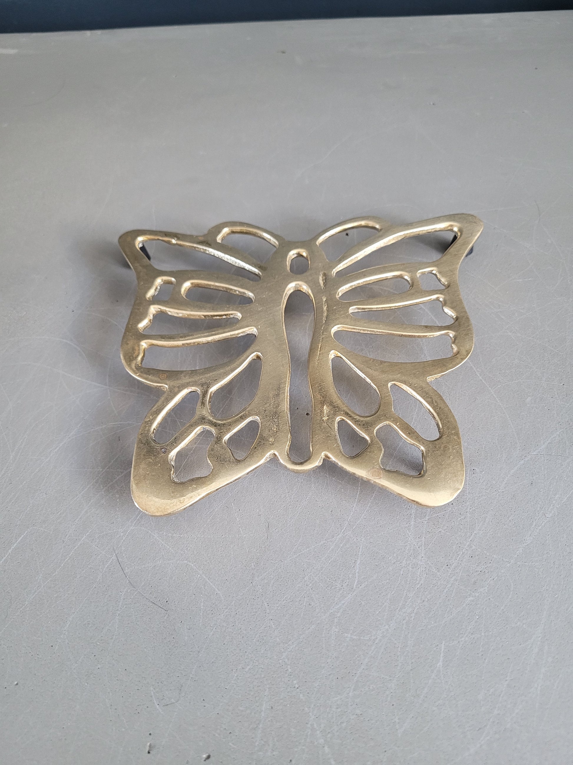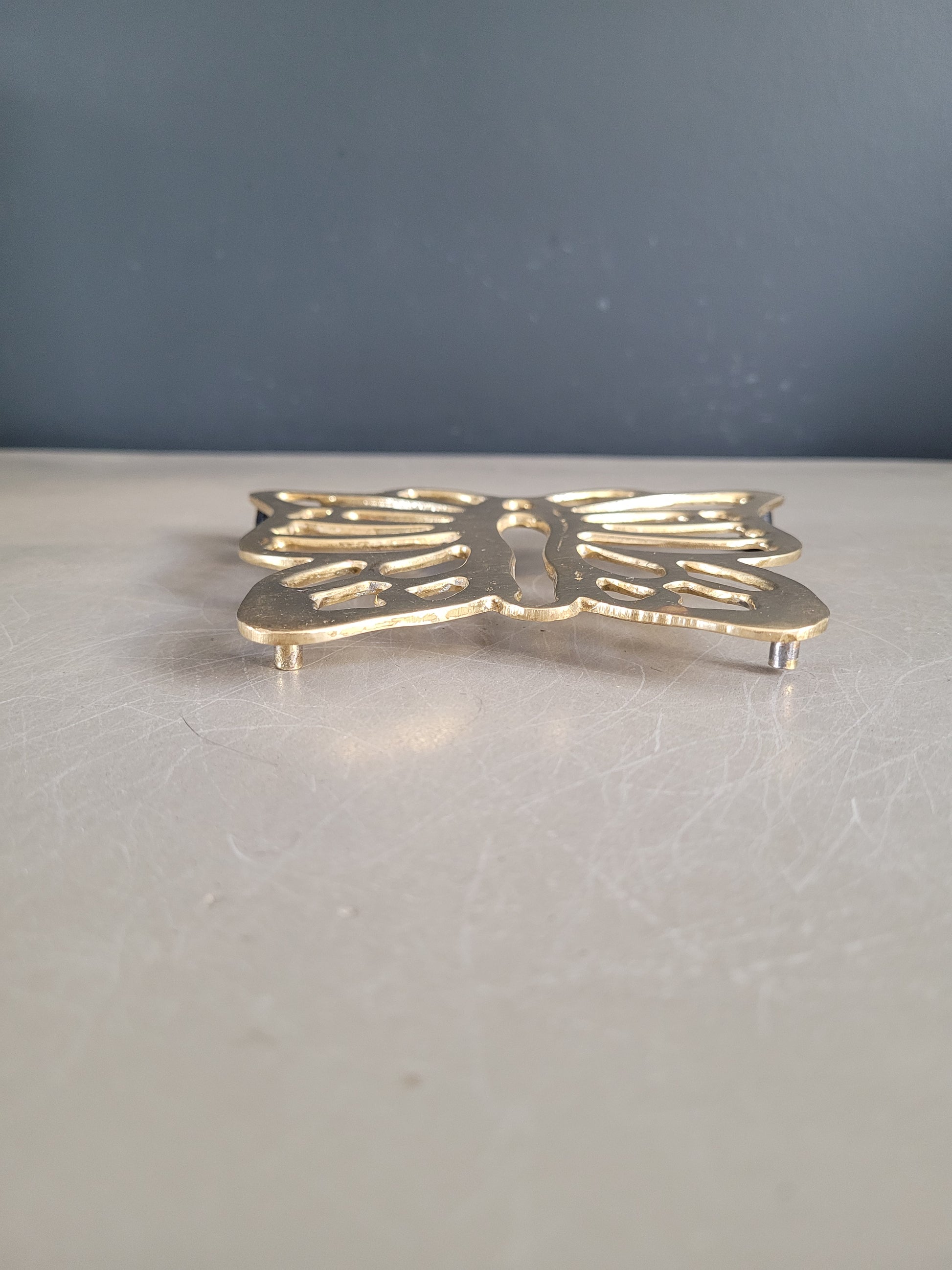 Très joli dessous de plat ou de bouteille en laiton massif en forme de papillon.