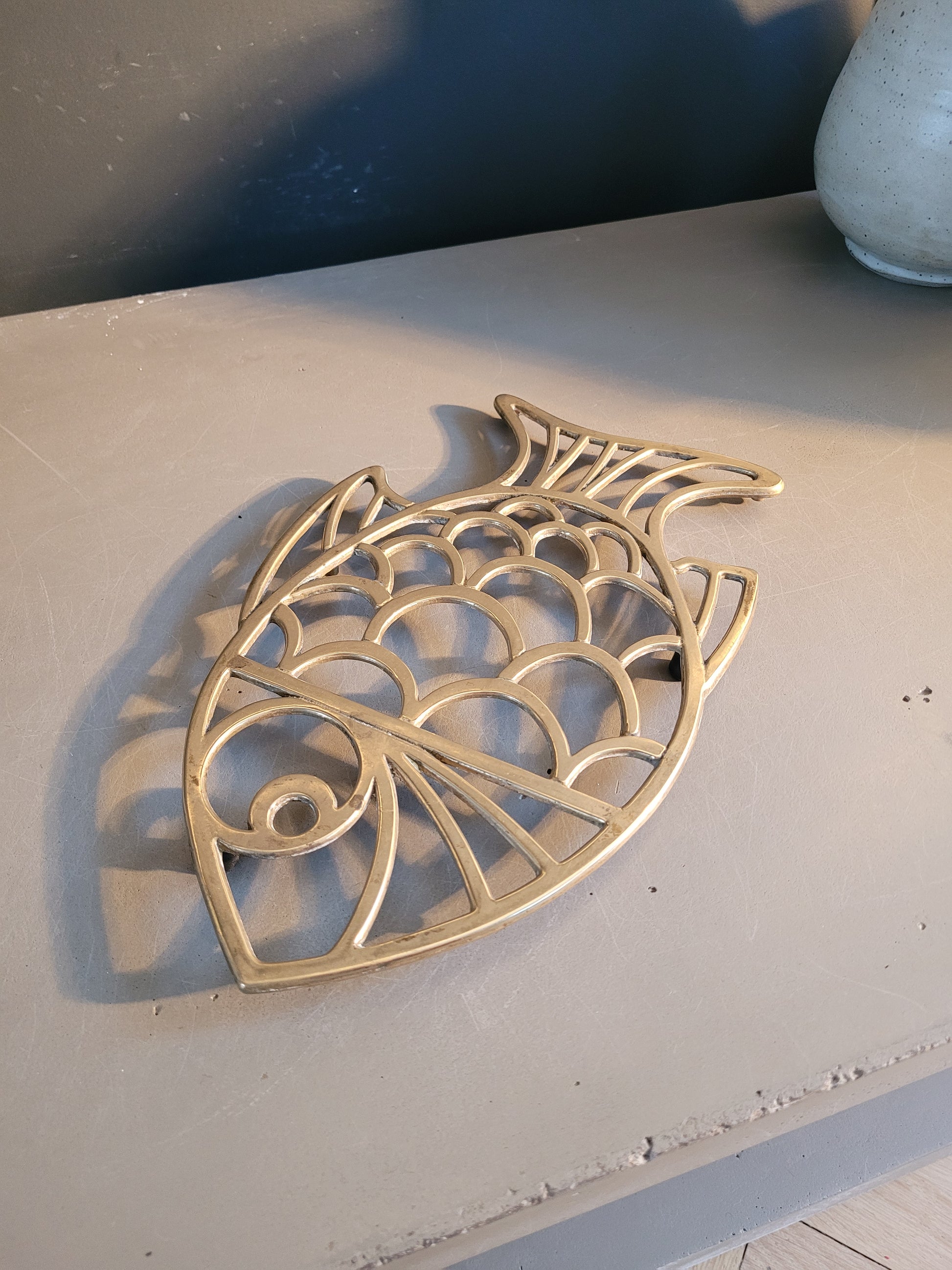 Magnifique grand dessous de plat en forme de poisson en laiton massif.