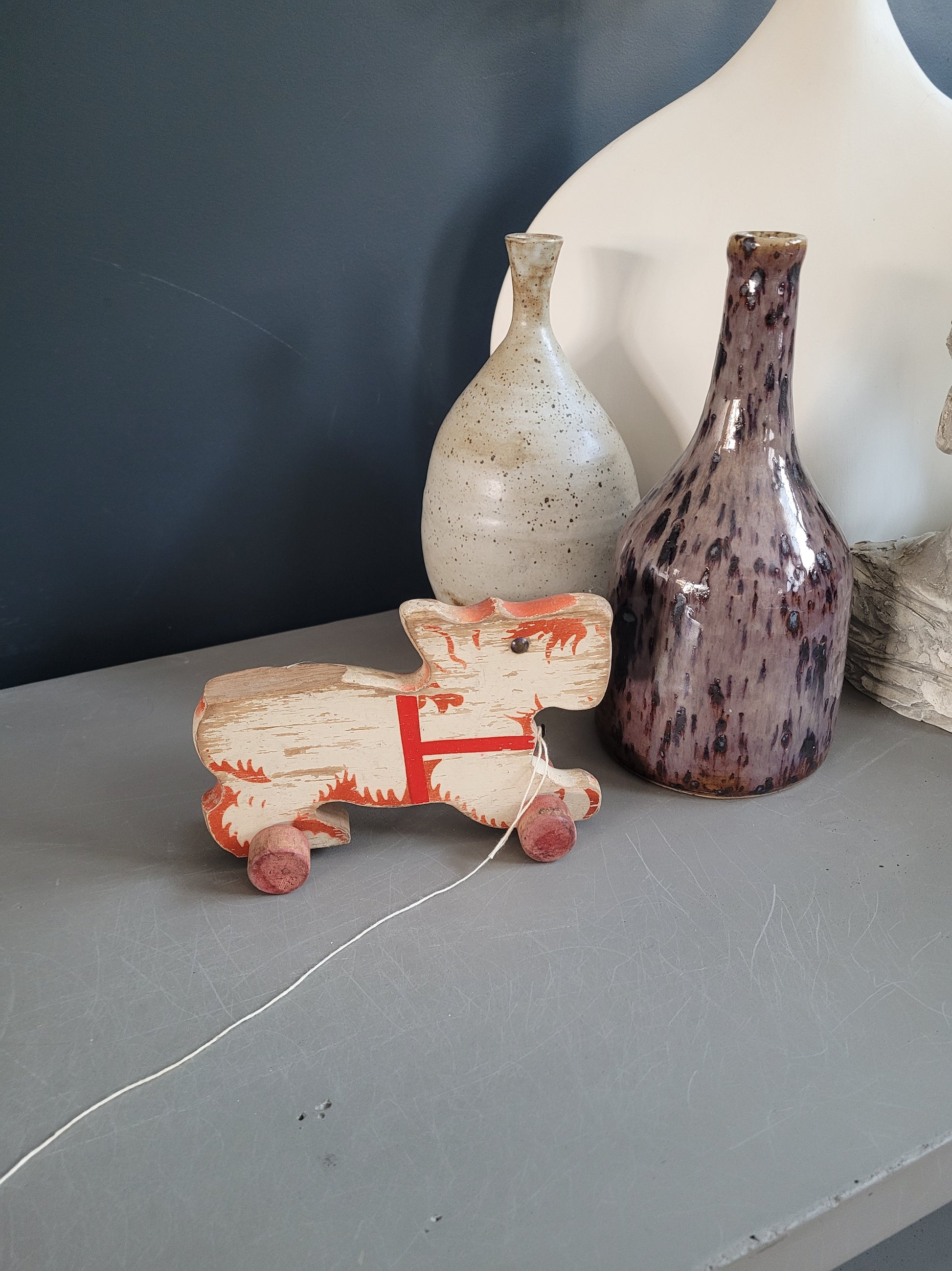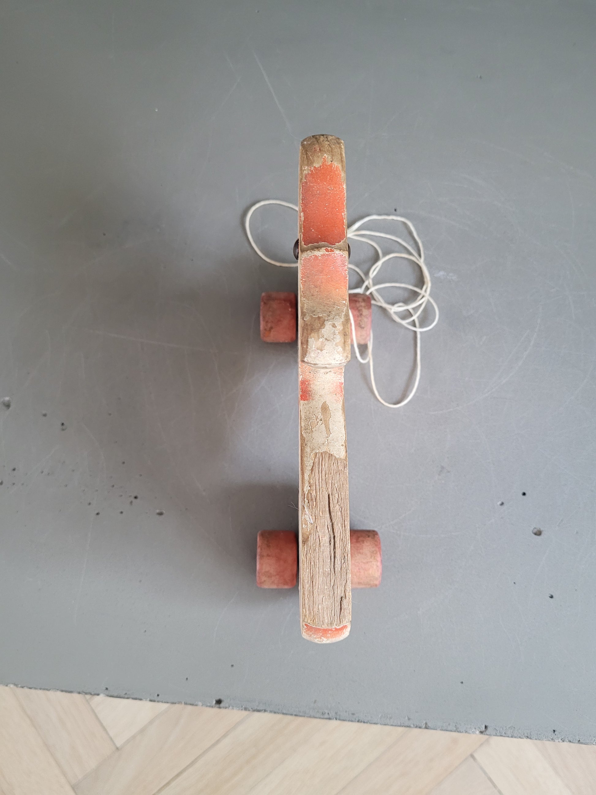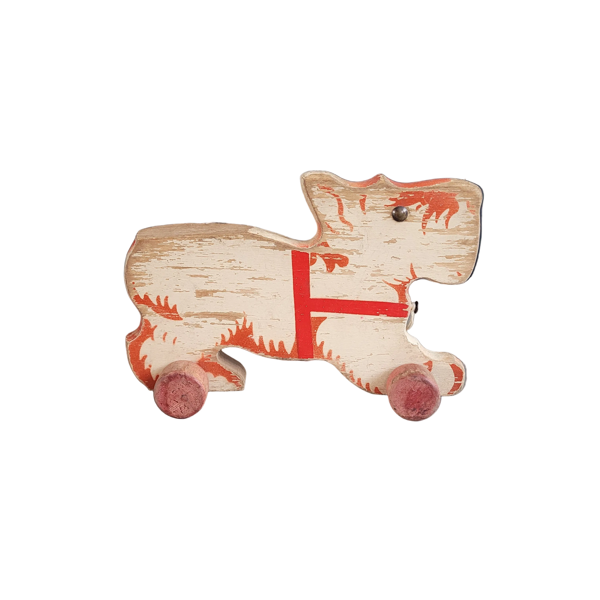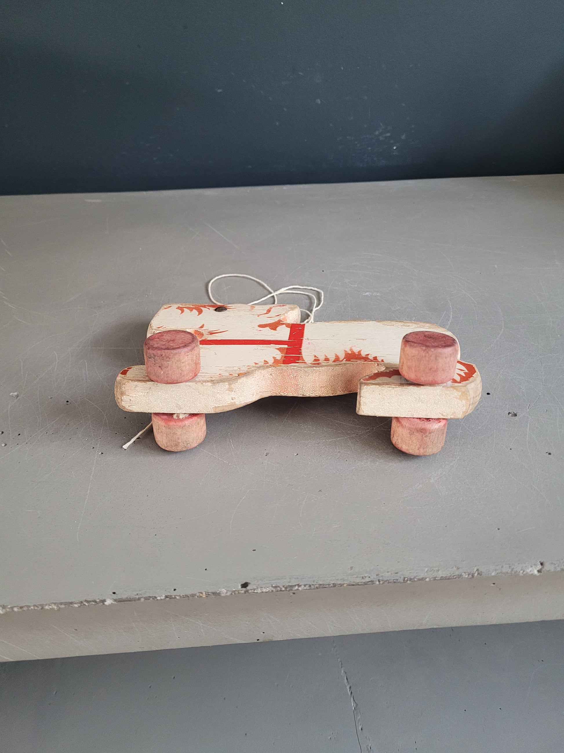 Chien à tirer ancien en bois peint. Un objet plein de charme, aussi décoratif que ludique!