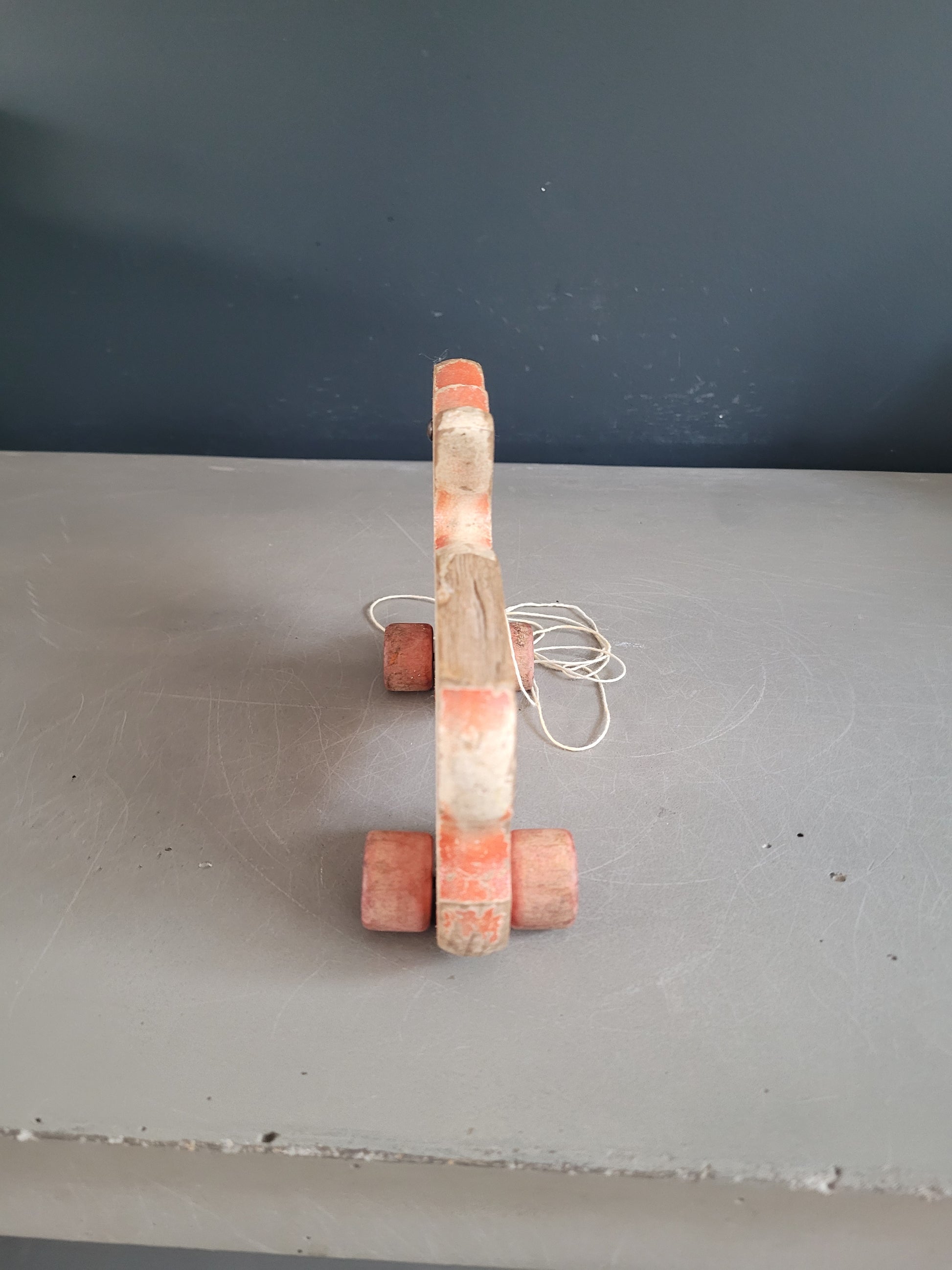 Jouet chien à tirer ancien en bois peint - Ref 906