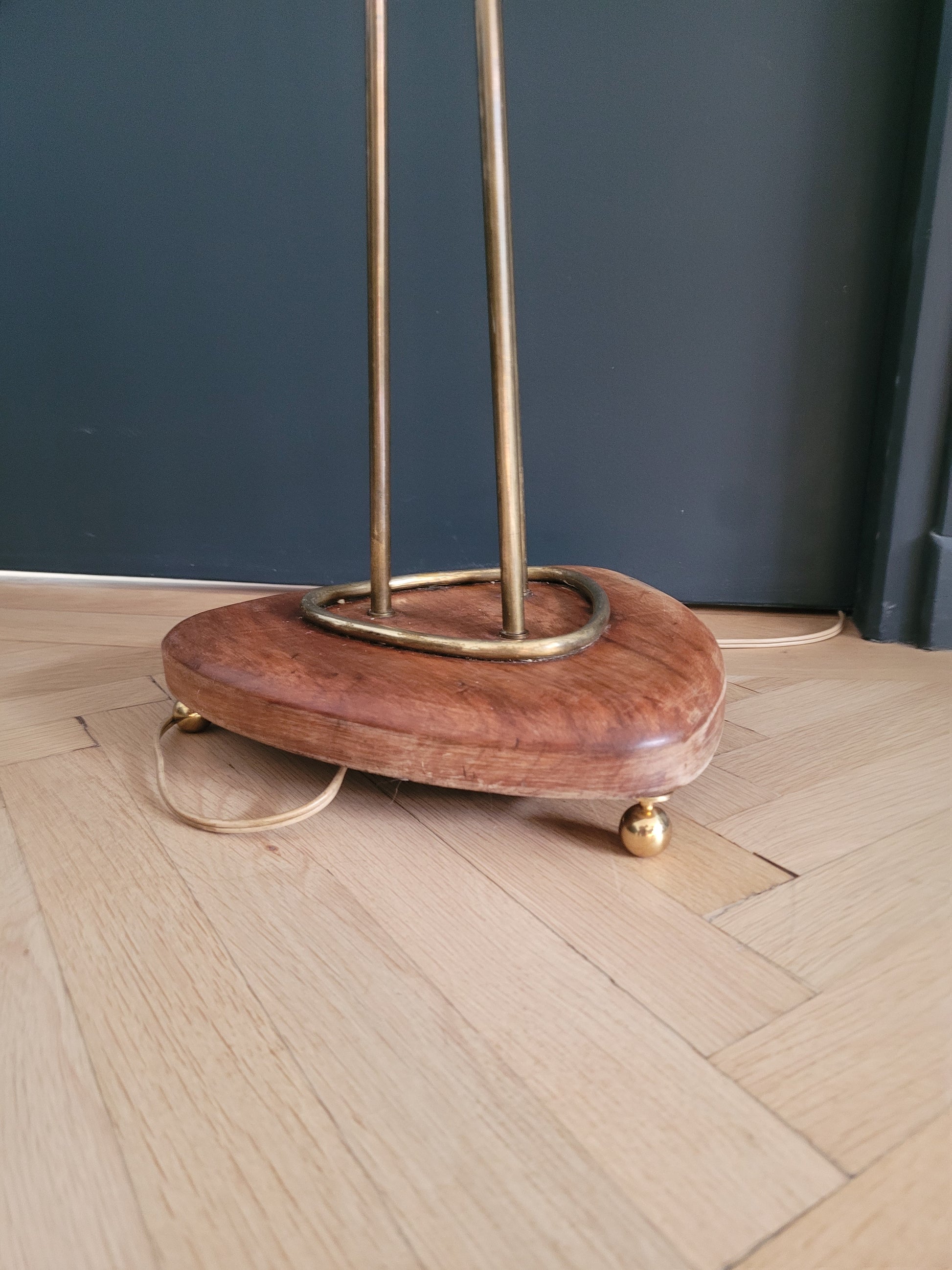 Une merveille en excellent état, le laiton présente des traces d'oxydation, et le vernis du bois est un peu passé, les rubans abat-jour sont en excellent état et la prise et les interrupteurs ont été modifiés et fonctionnent parfaitement.