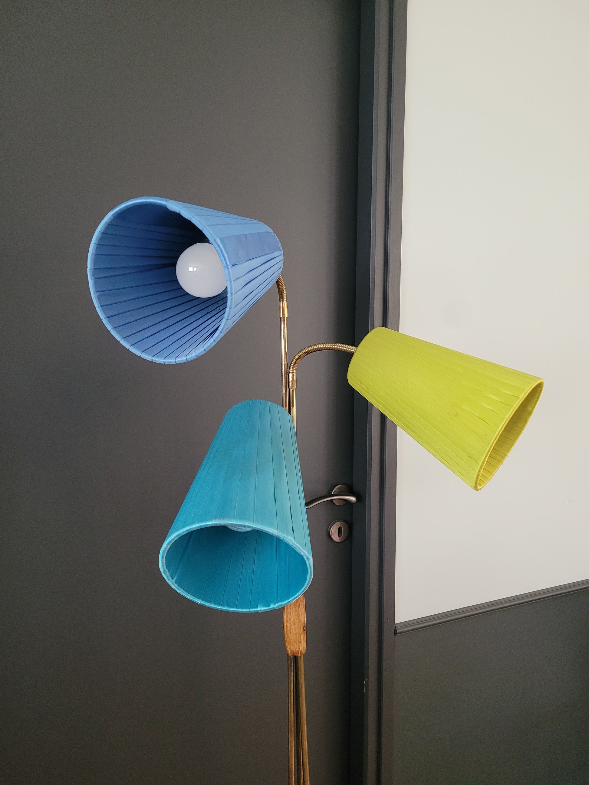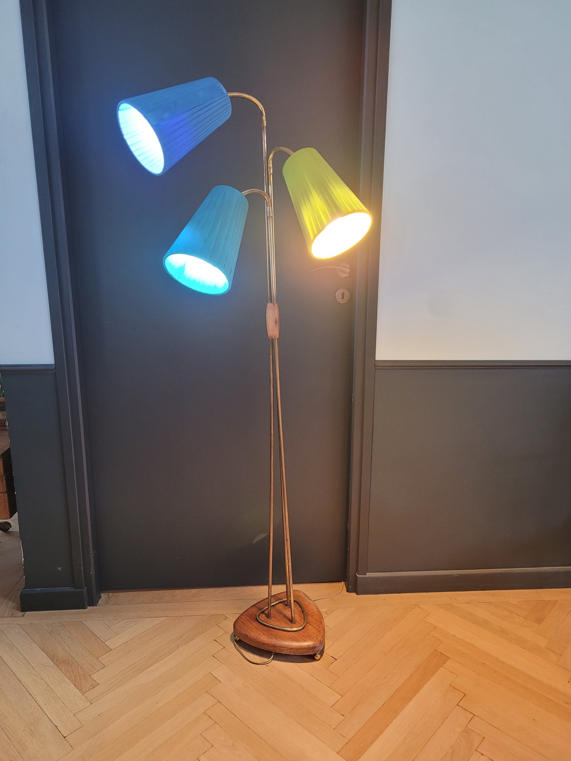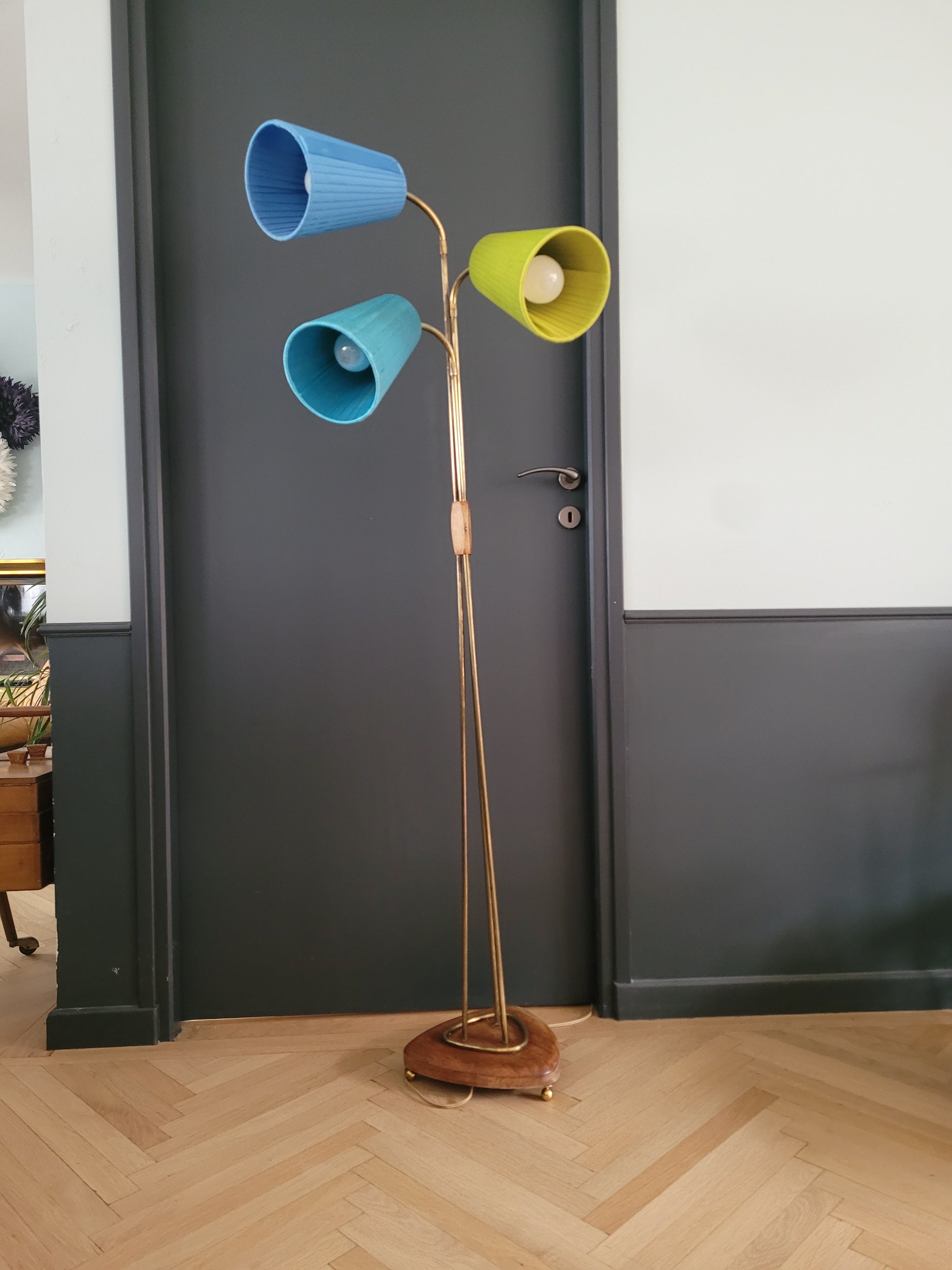 Magnifique lampadaire des années 40-50 à 3 points lumineux indépendants, commandés chacun avec son interrupteur.
