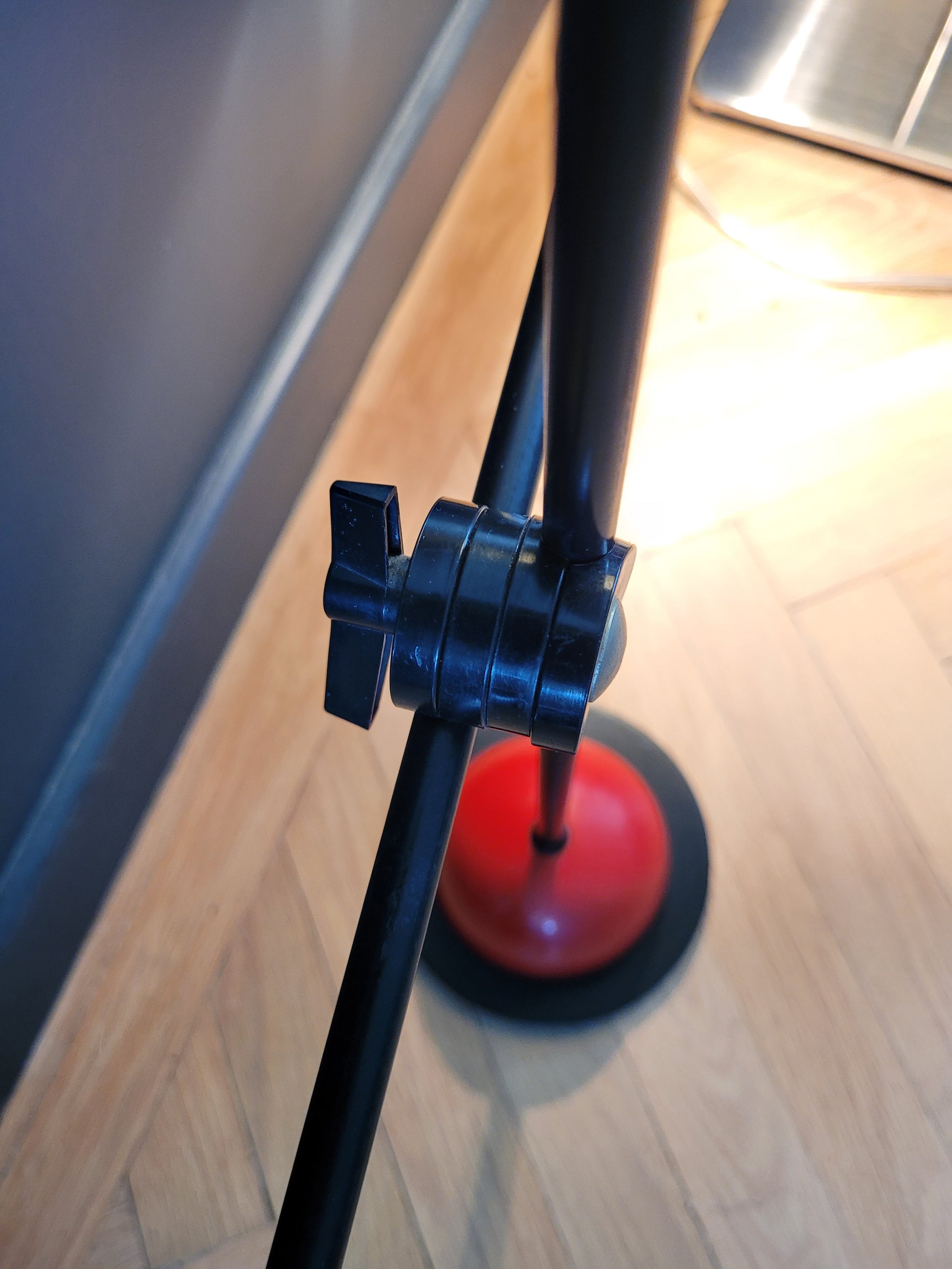 Magnifique lampe de bureau en métal laqué rouge et noir, réglable et orientable dans toutes les directions.
