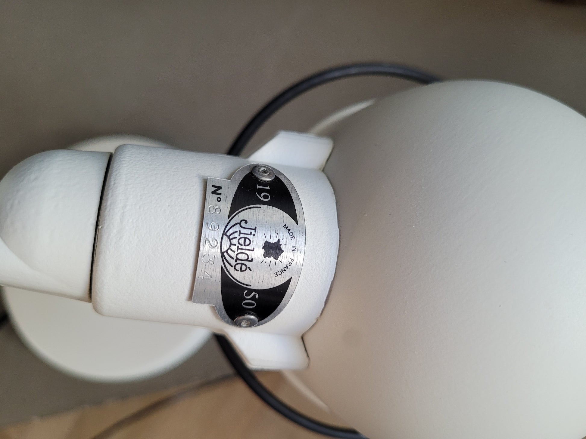 Superbe et iconique lampe de table Jieldé Signal, petite sœur de la Loft, couleur blanc mat.