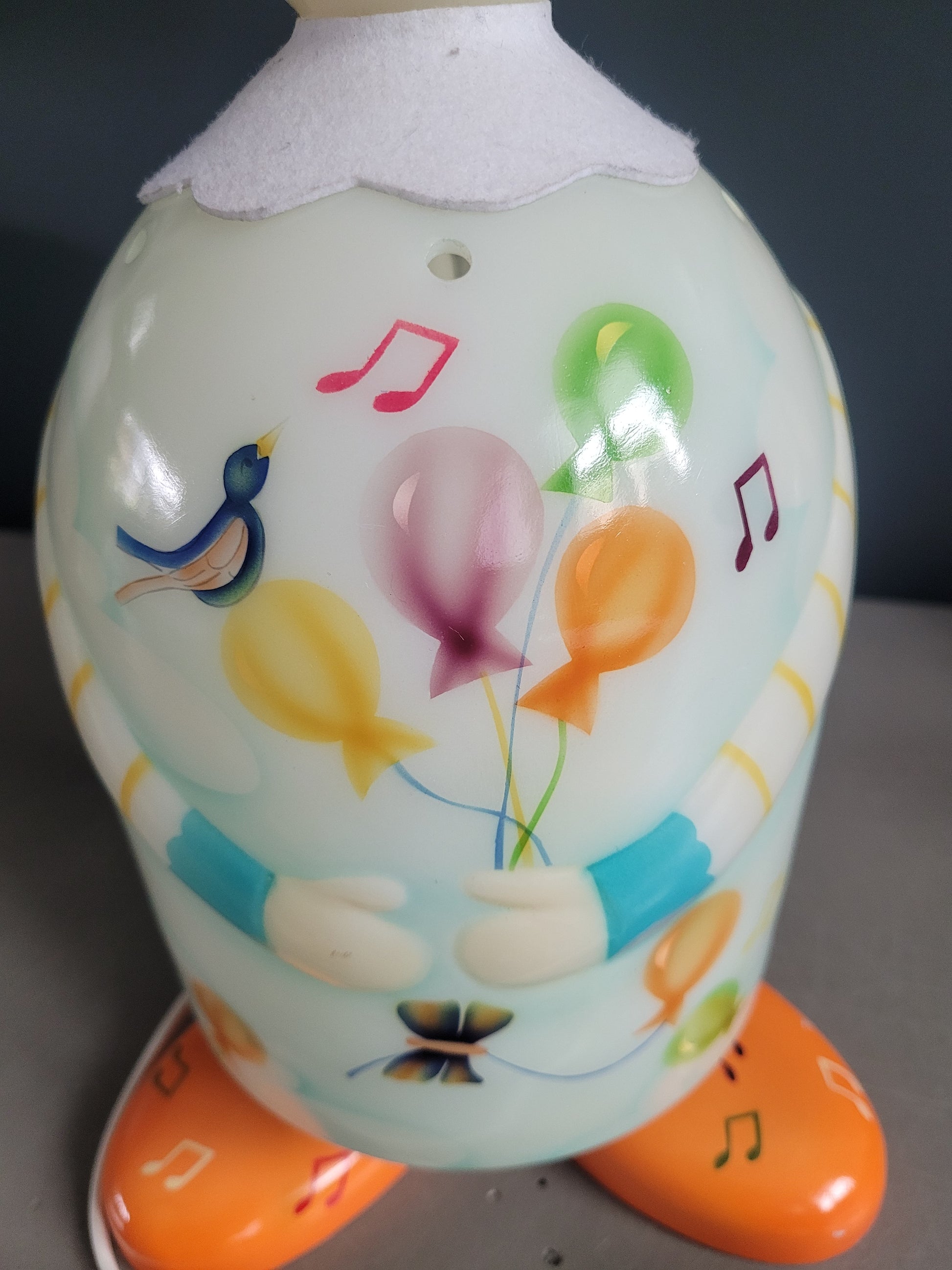Magnifique lampe pour chambre d'enfant L'Oiseau Bateau, en forme de petit personnage lumineux décoré de ballons colorés et de notes de musique, pour une ambiance douce et joyeuse dans la chambre.