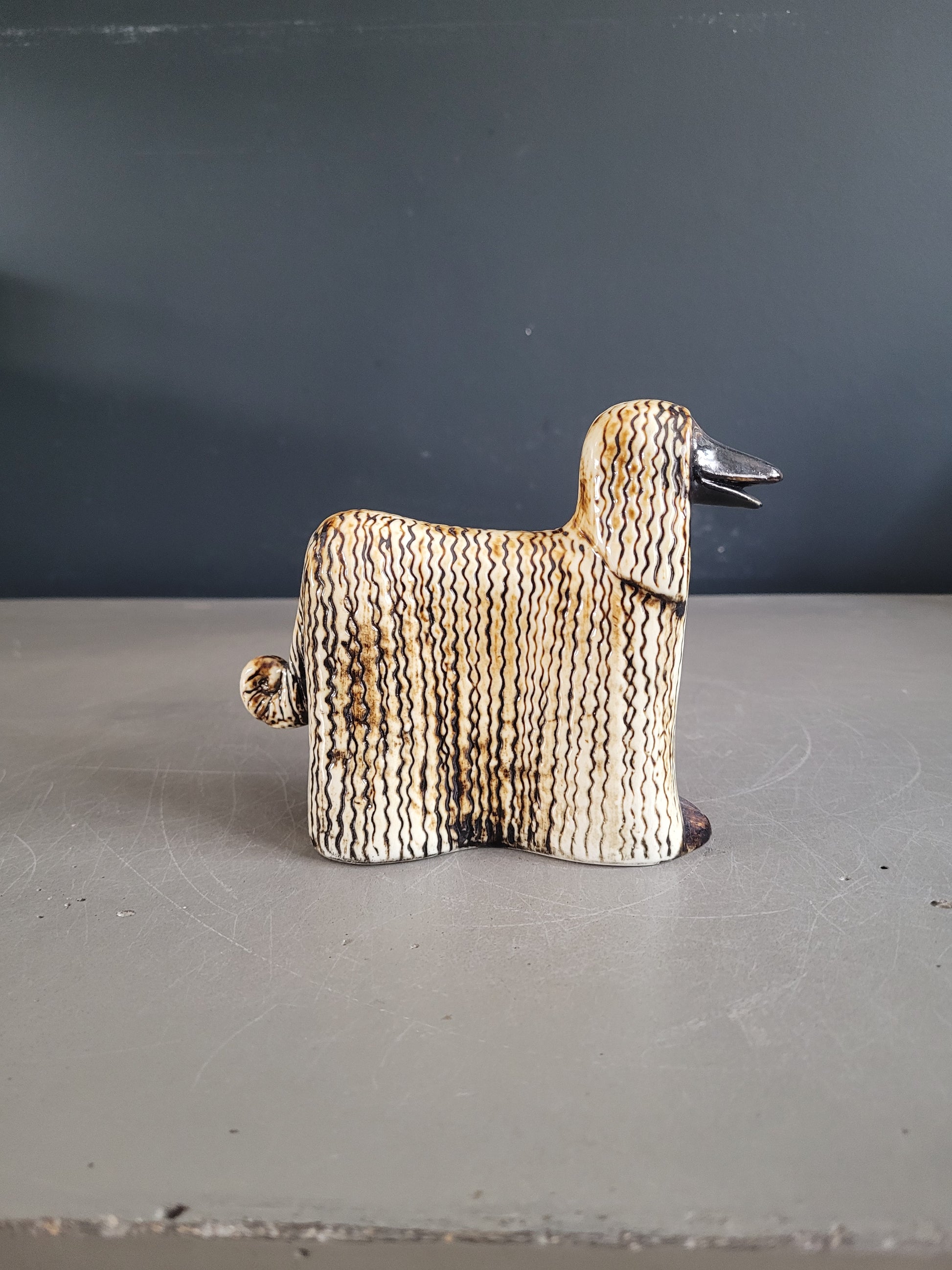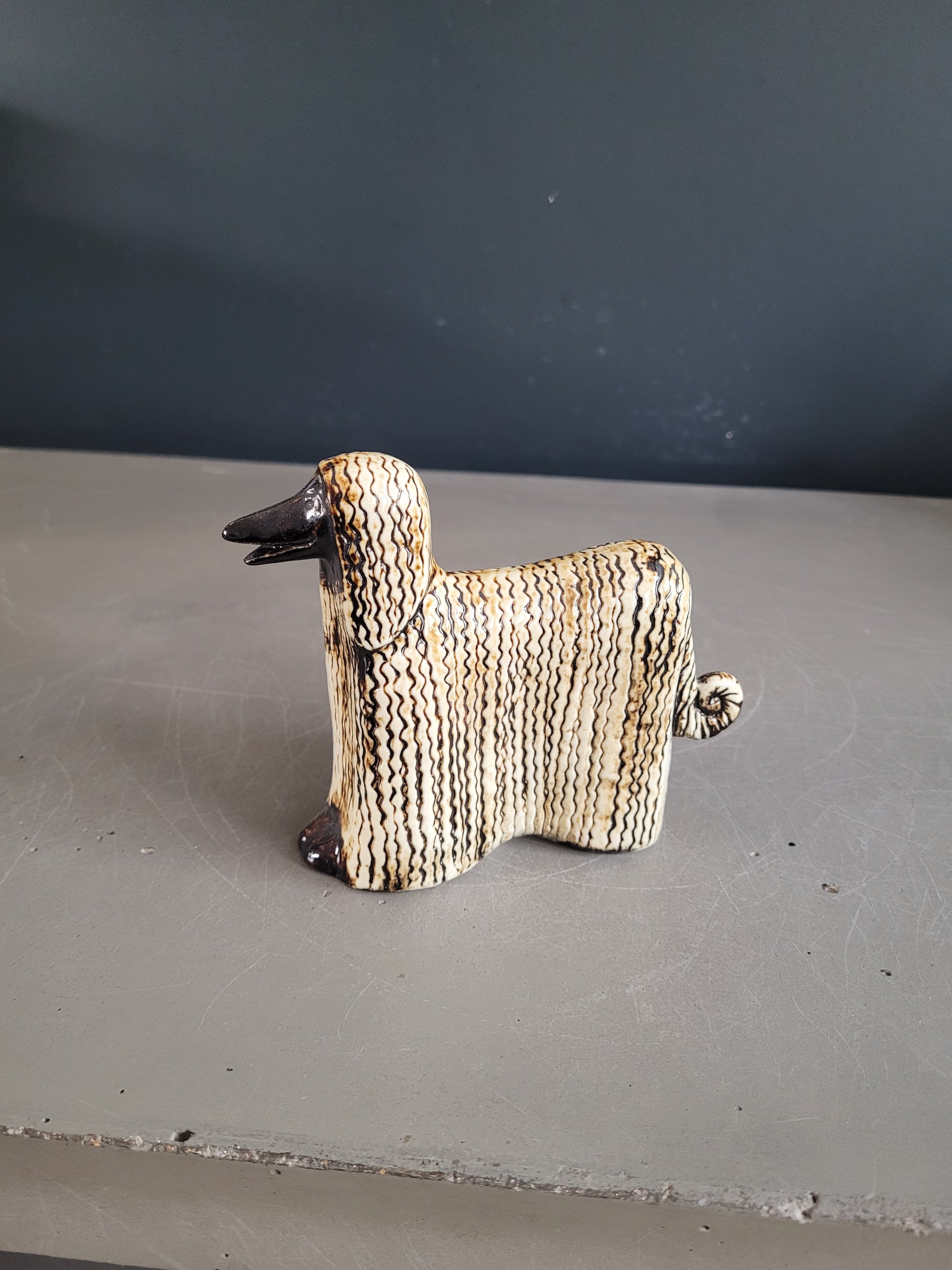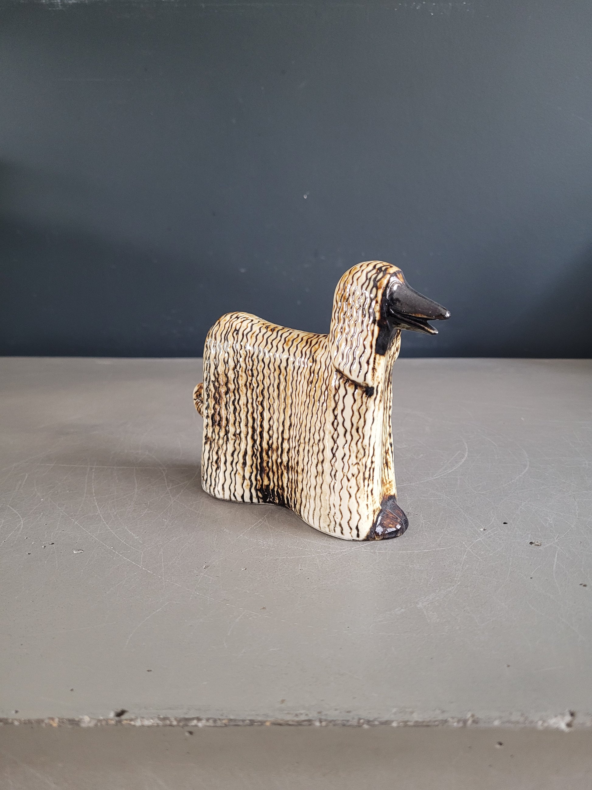 Magnifique lévrier Afghan de la série Kennel, de la célèbre céramiste et designeuse Lisa Larson édité par Gustavsberg dans les années 70.