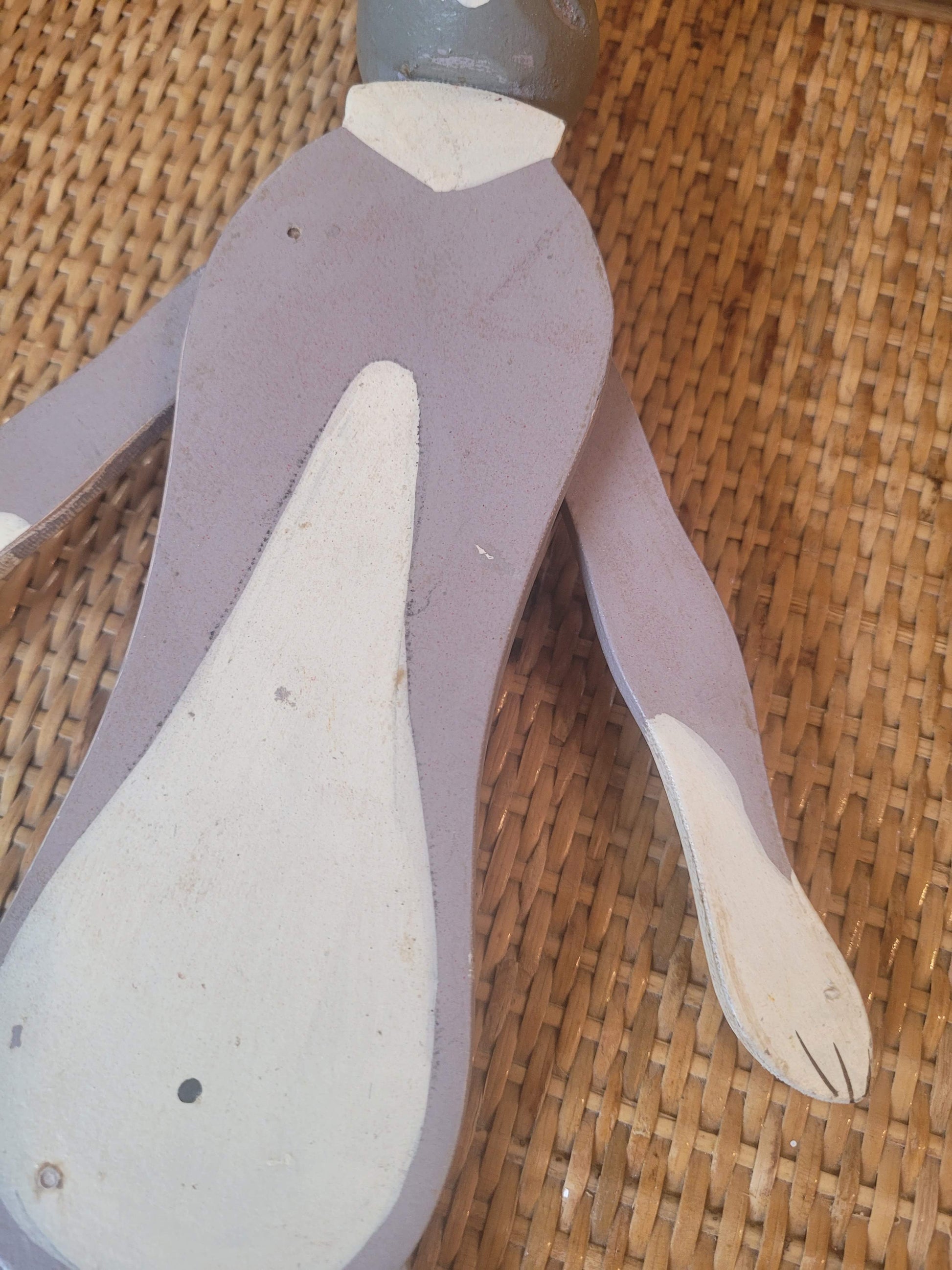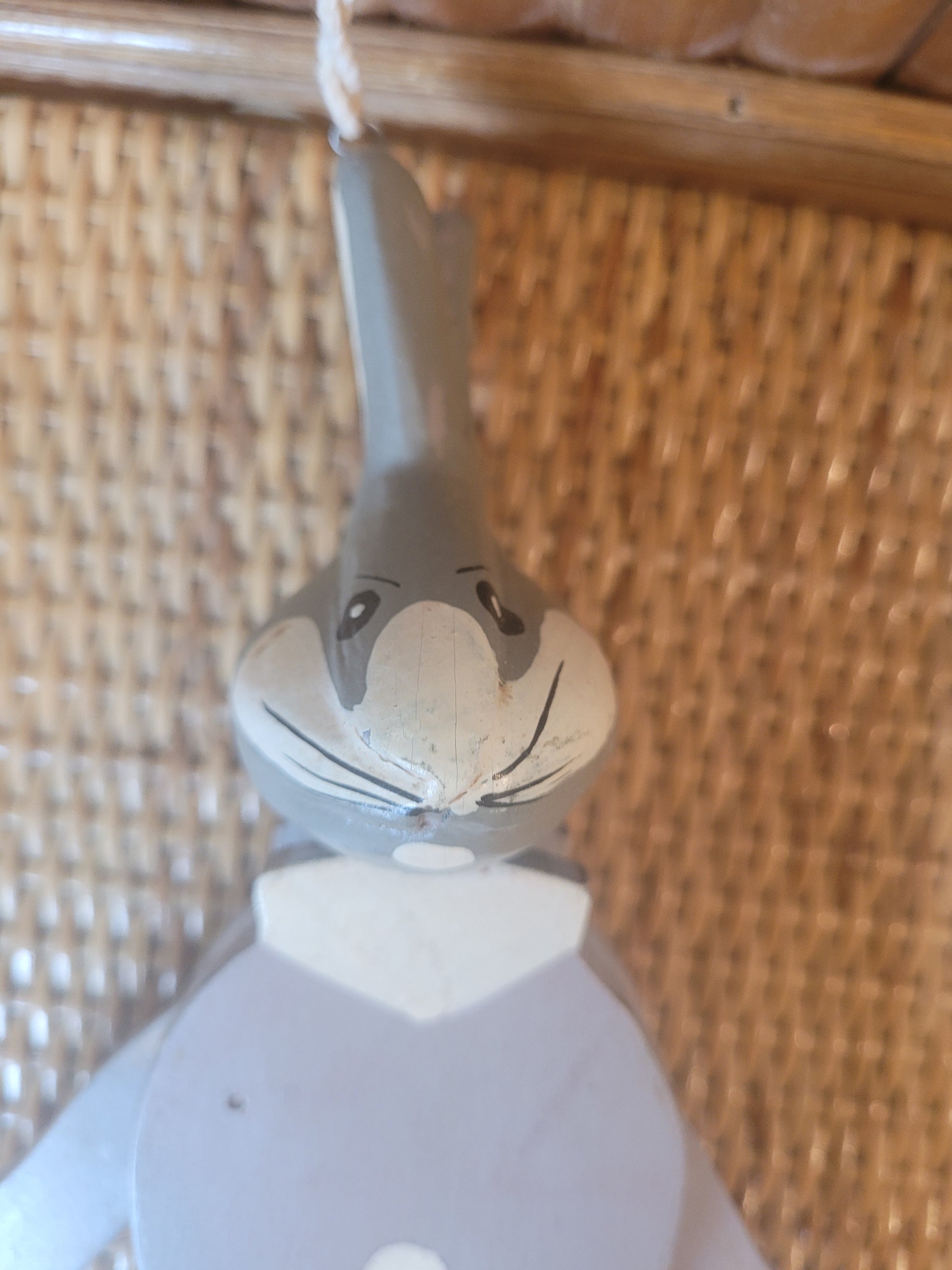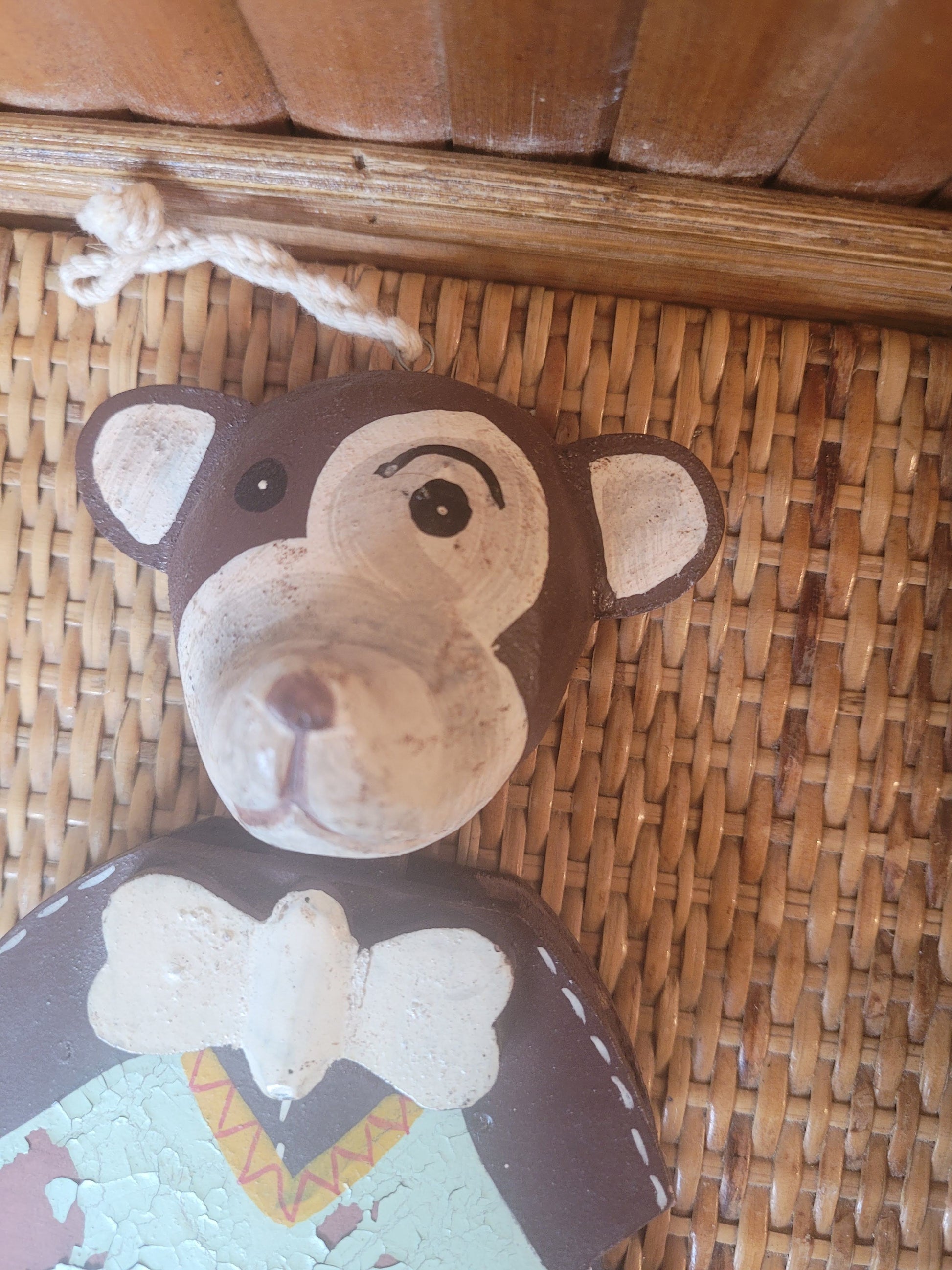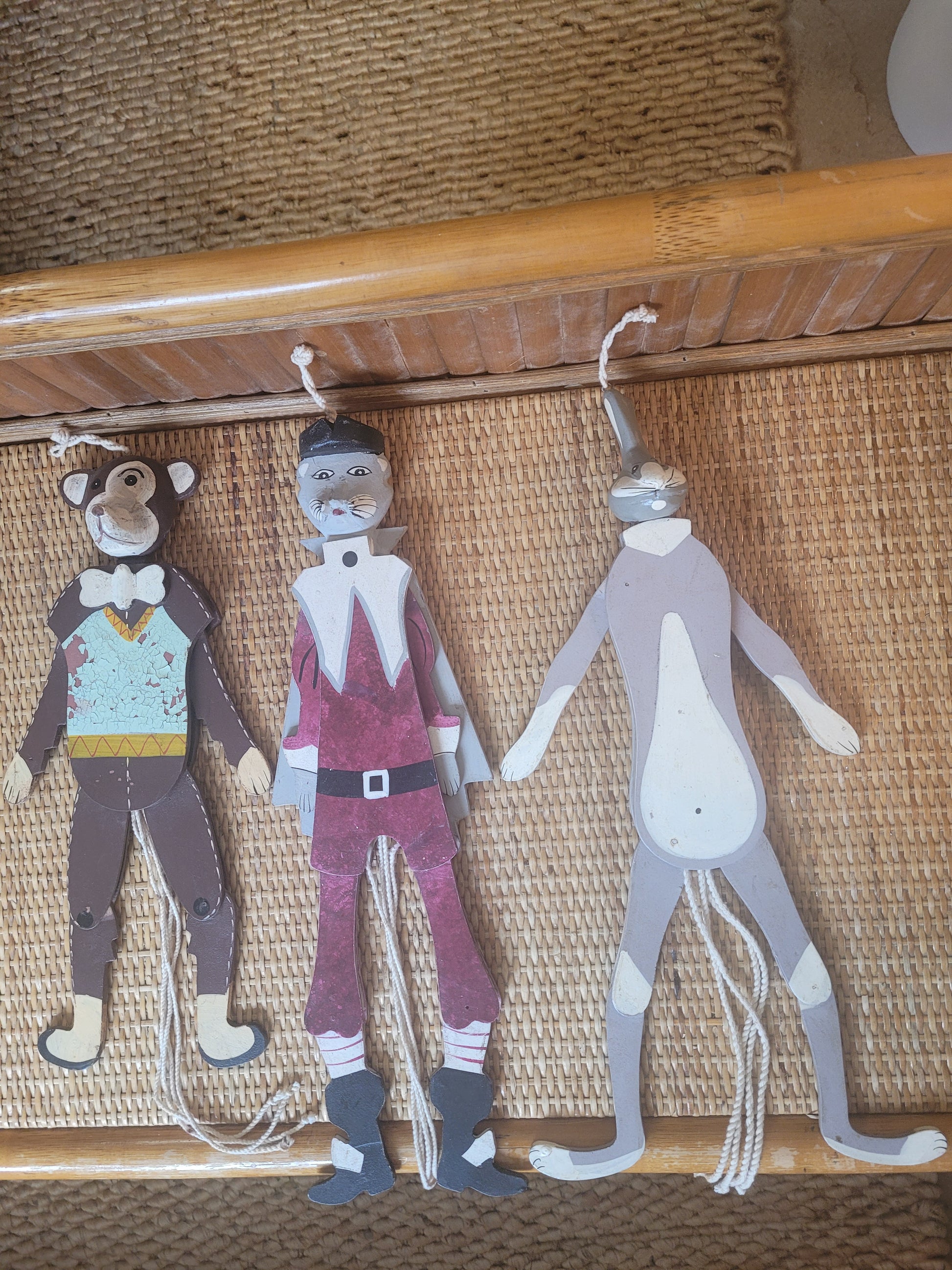 Magnifique lot de 3 marionnettes à fils articulées en bois peint à la main, avec des têtes d'animaux ( singe chat et lapin)