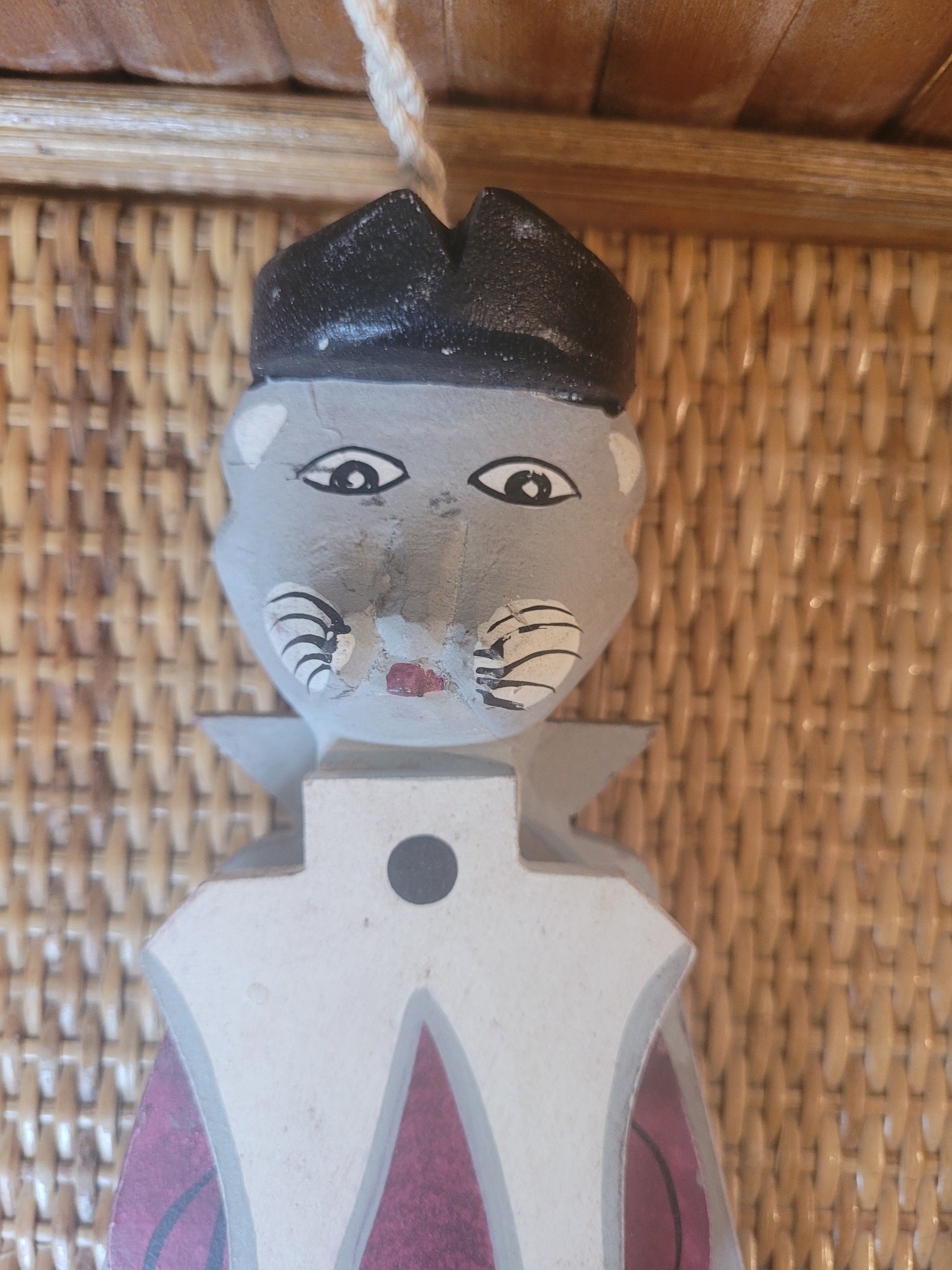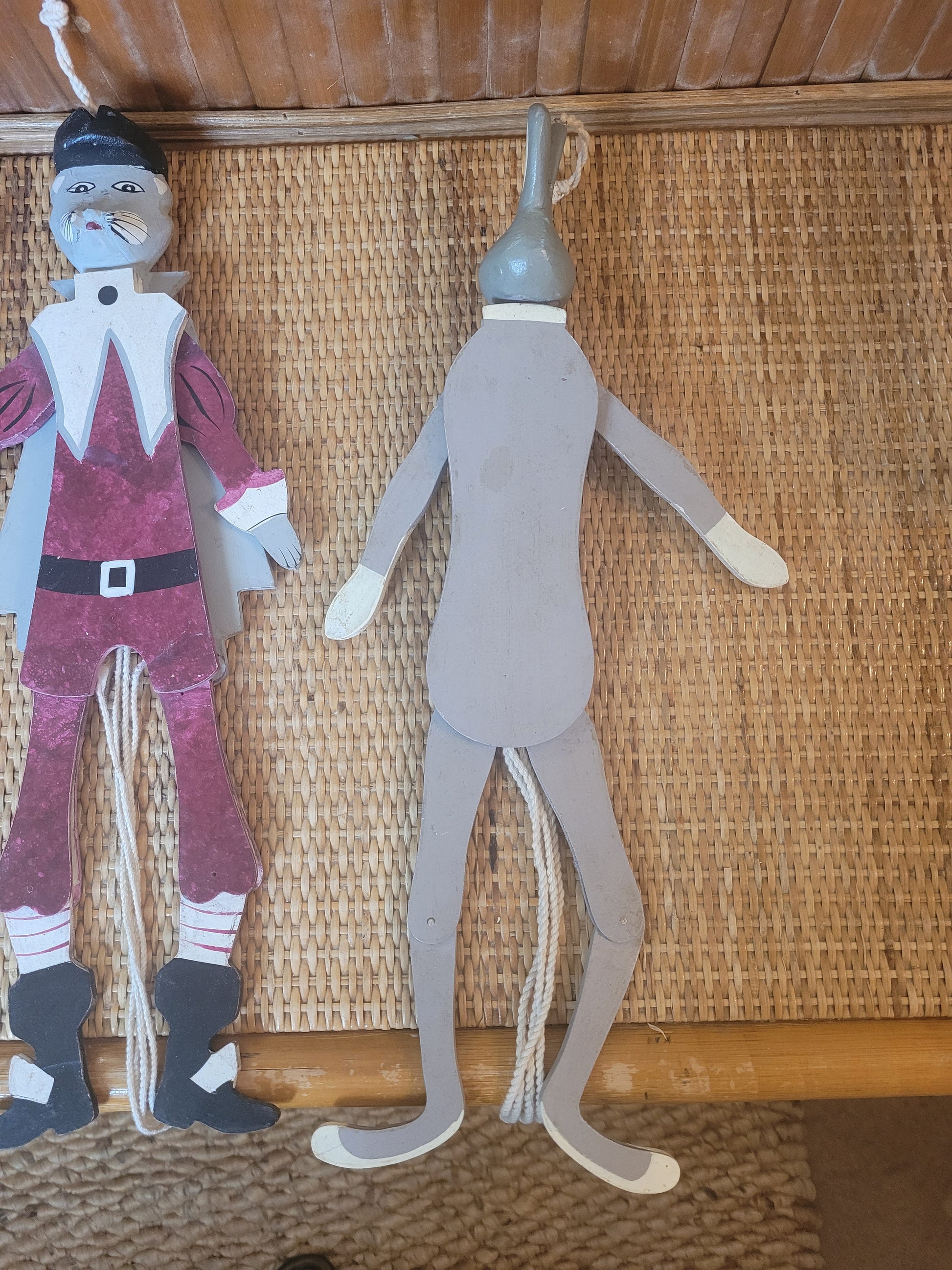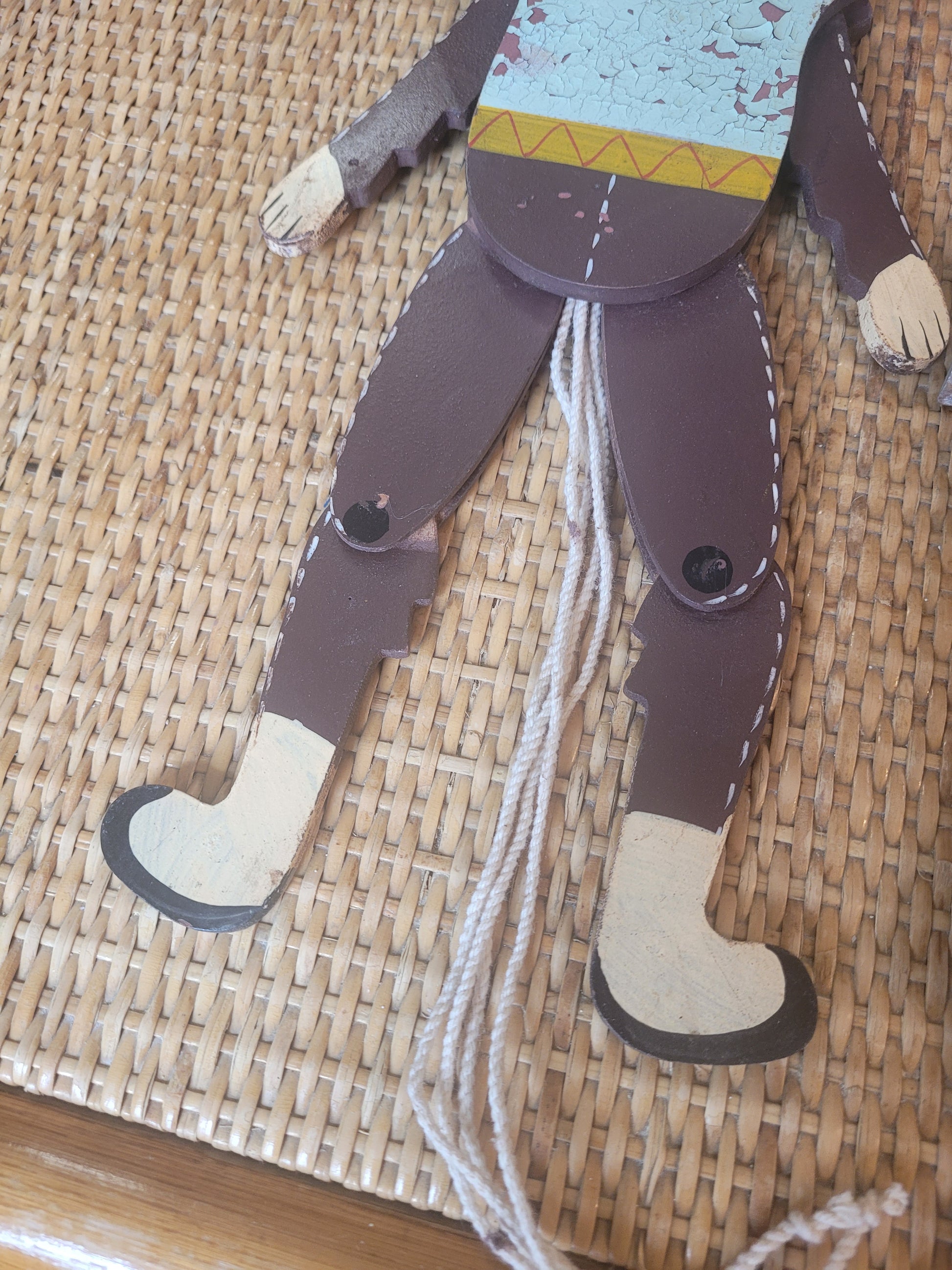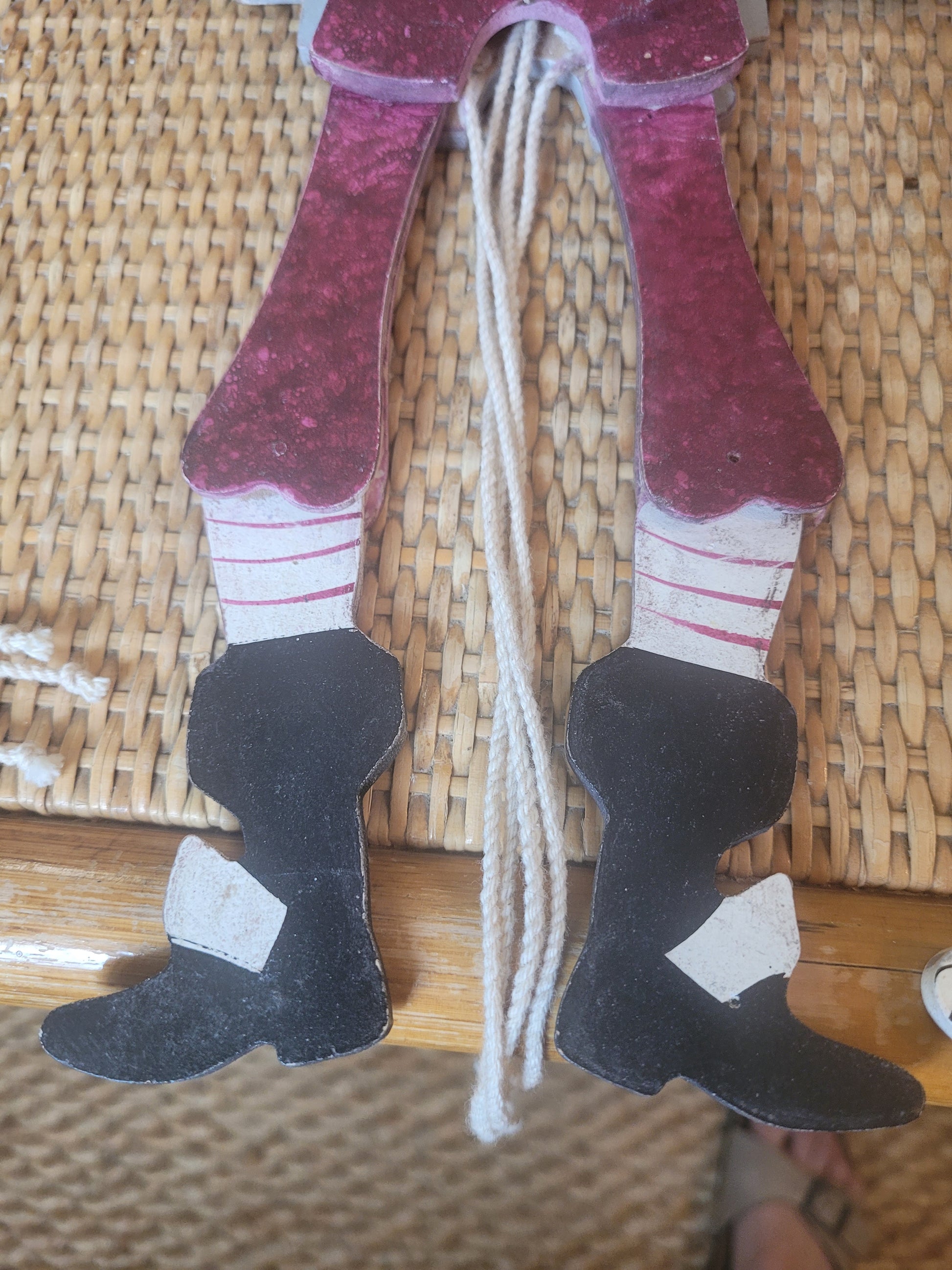 Une cordelette accrochée sur la tête sert à les suspendre et les 4 fils entre les jambes commandent chacun 1 membre.