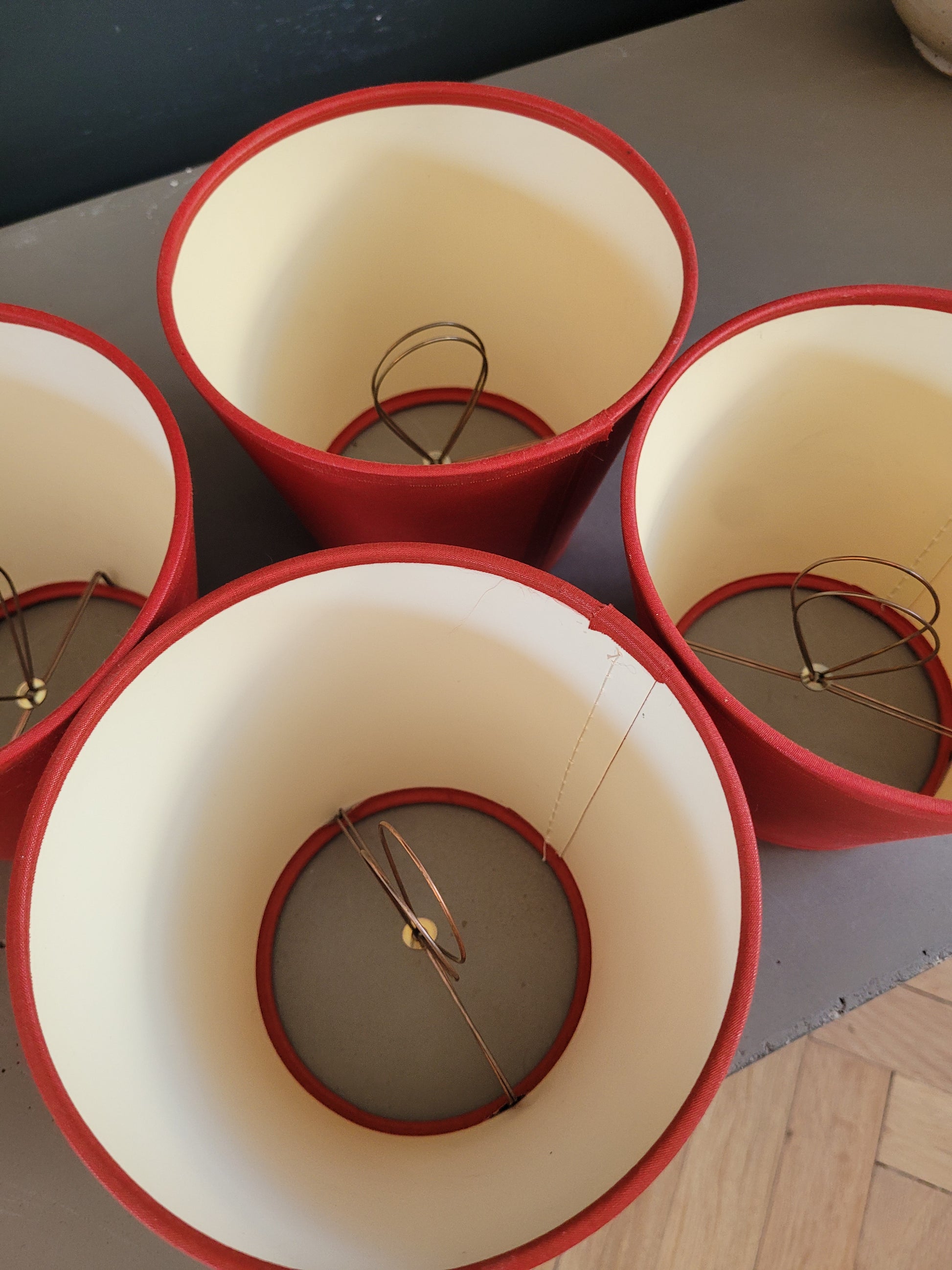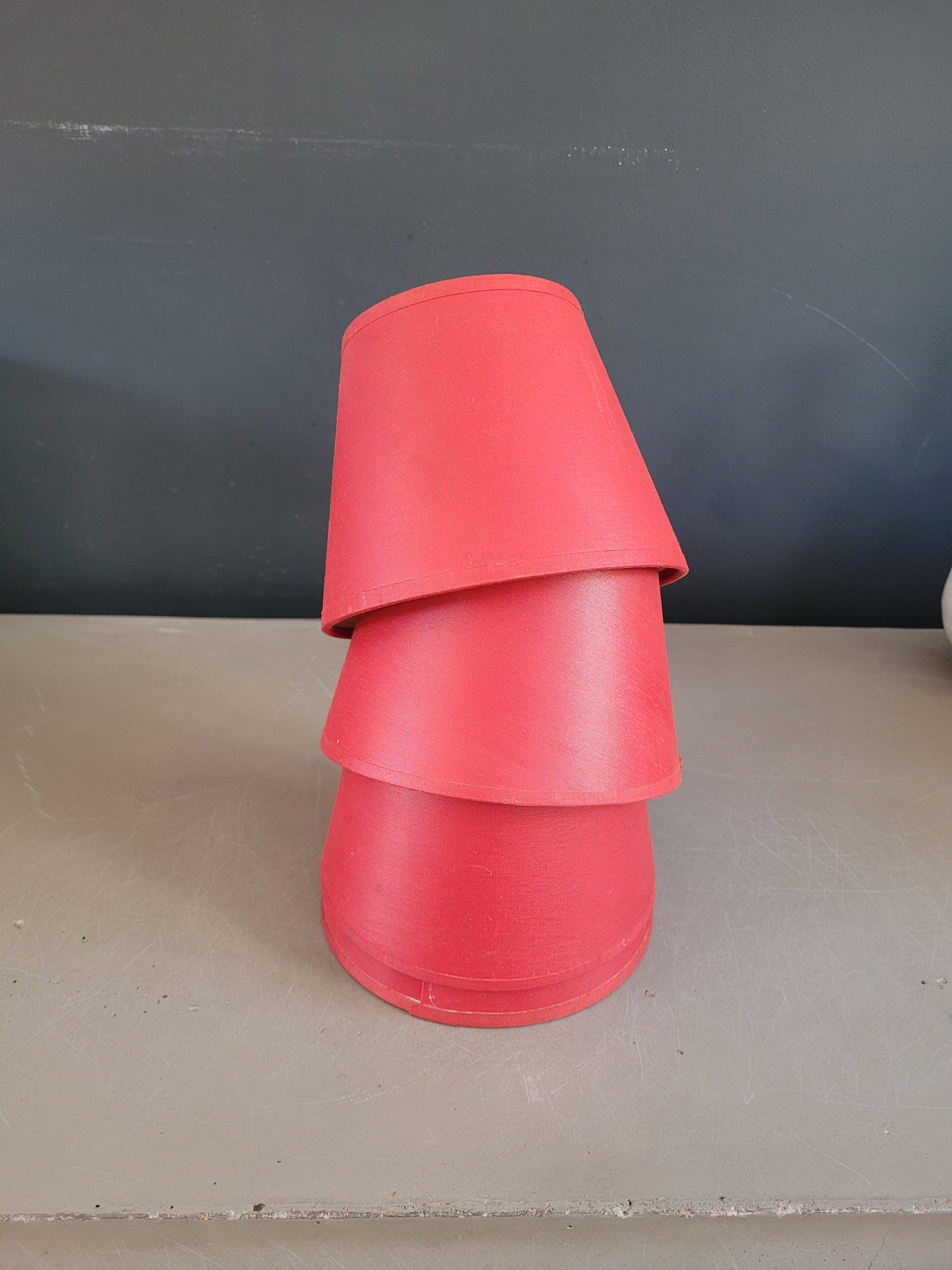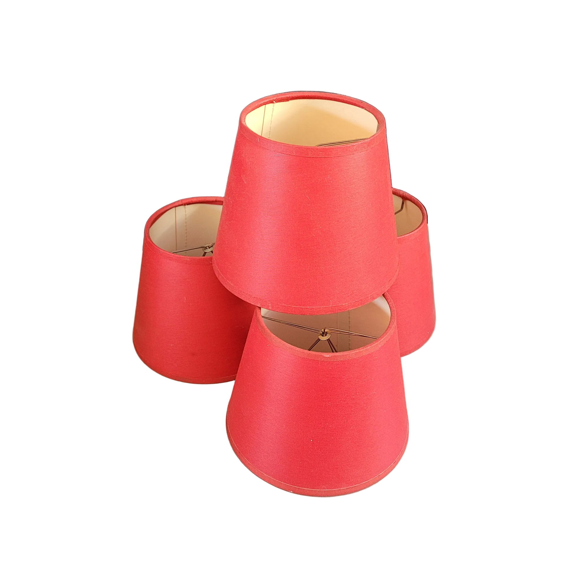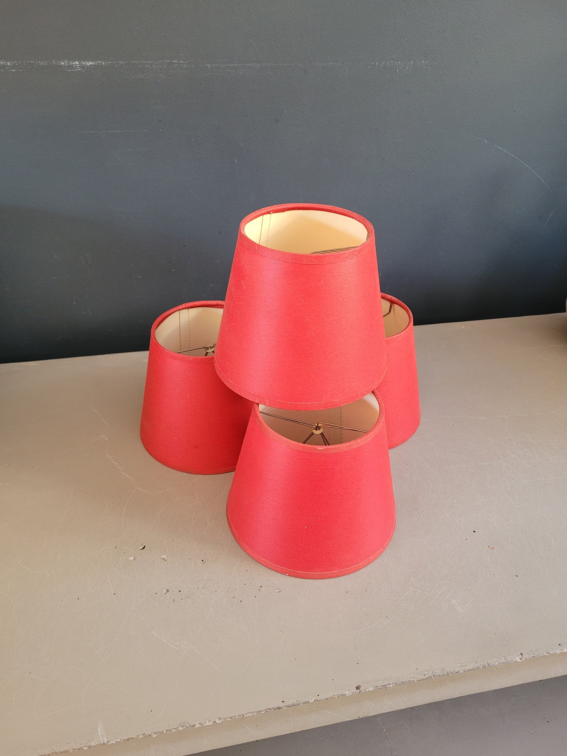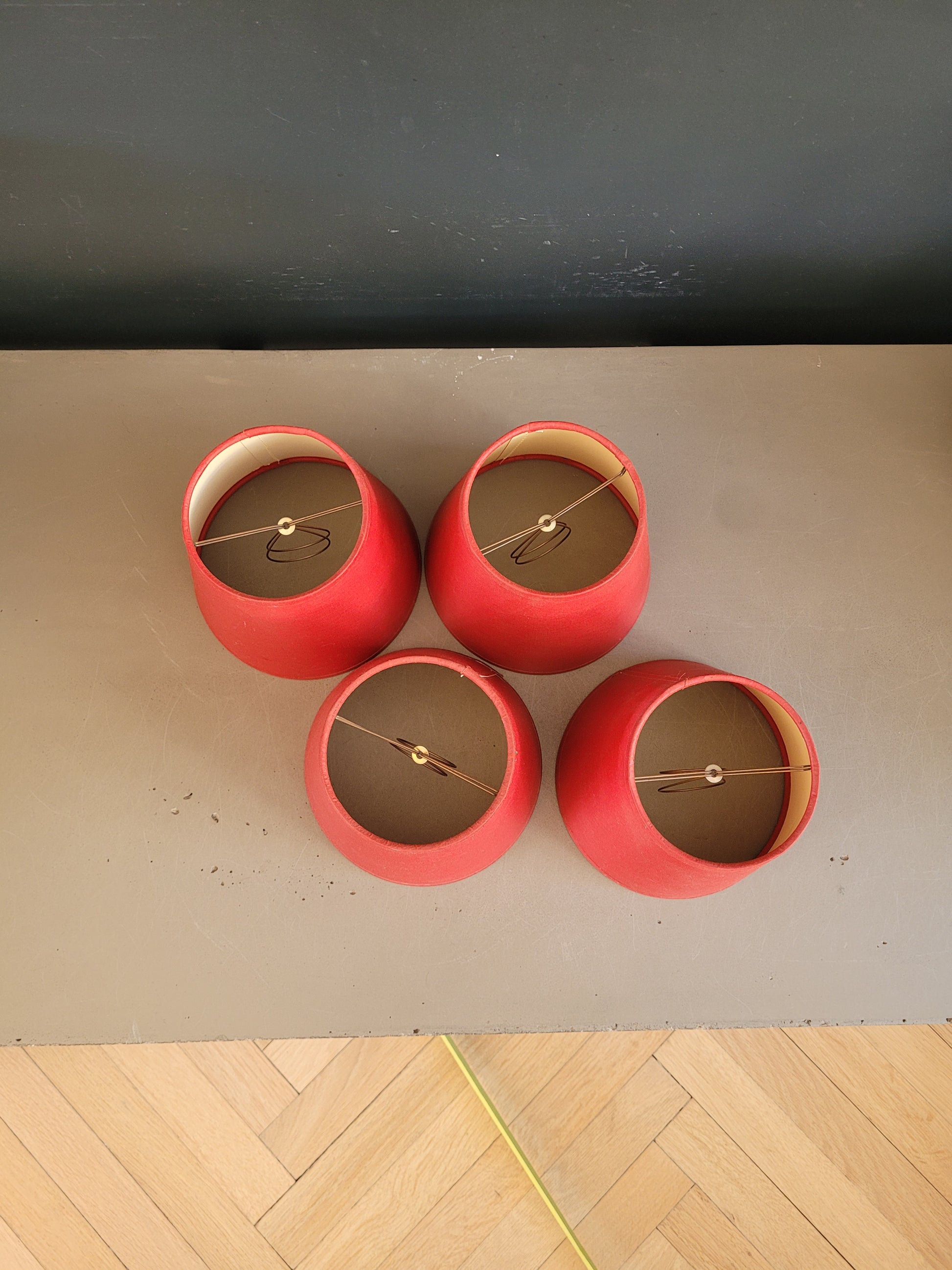Magnifique lot de 4 abat-jour à pince vintage en tissu cartonné rouge bordeaux.
