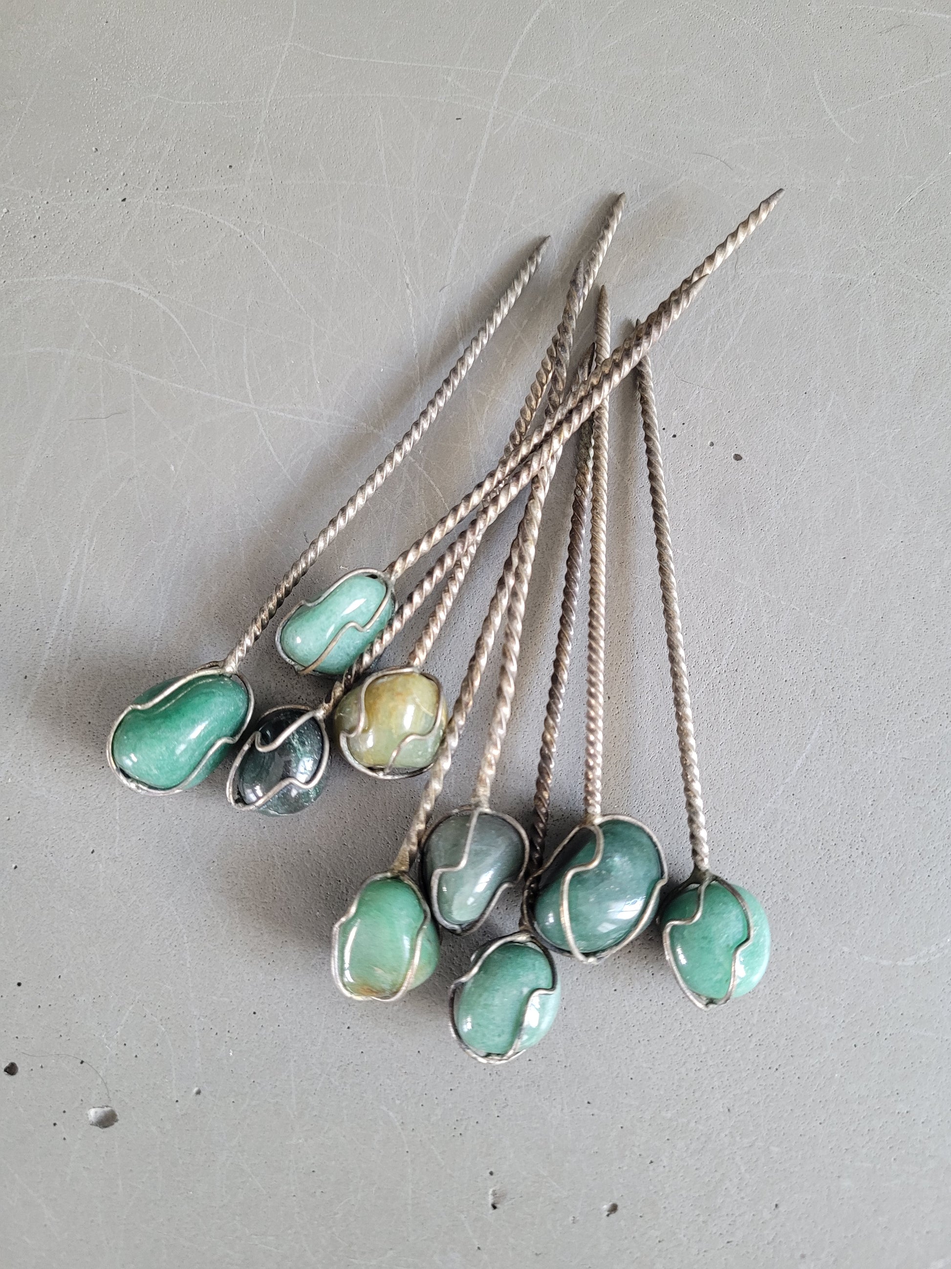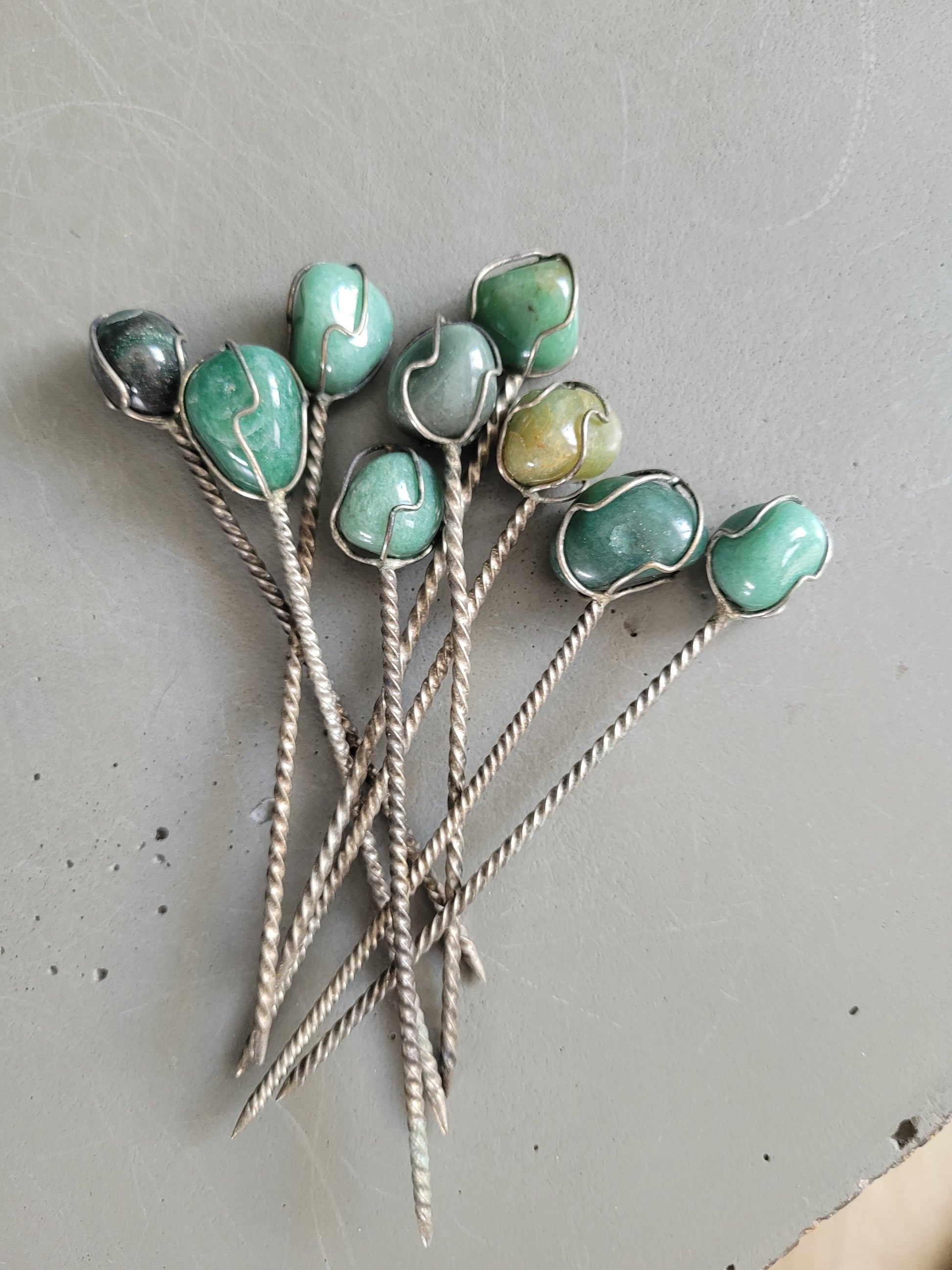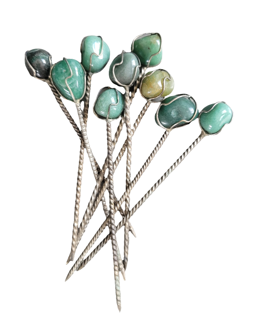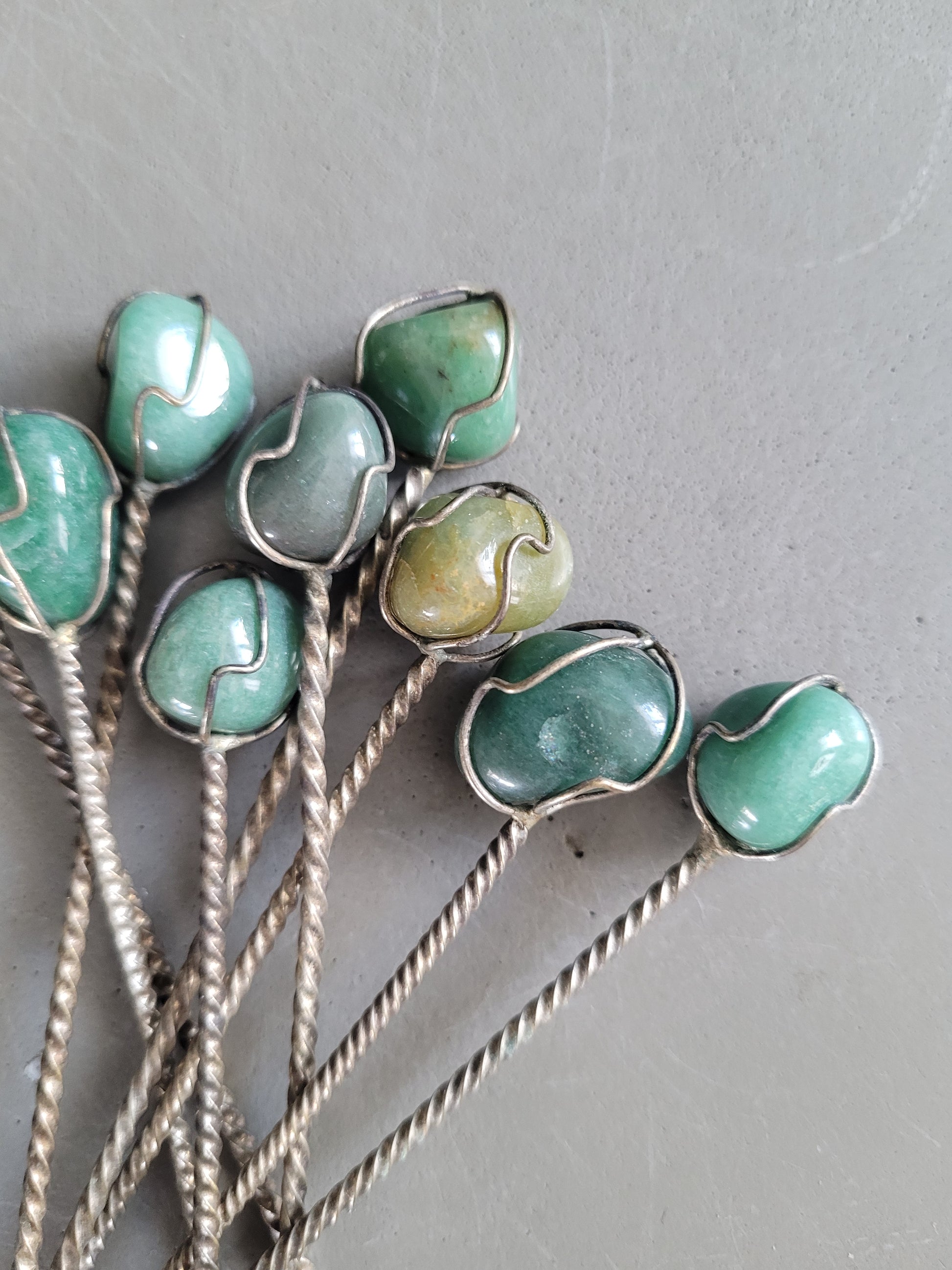 Lot de 9 piques à apéritif en métal et pierres semi-precieuses - Ref 398