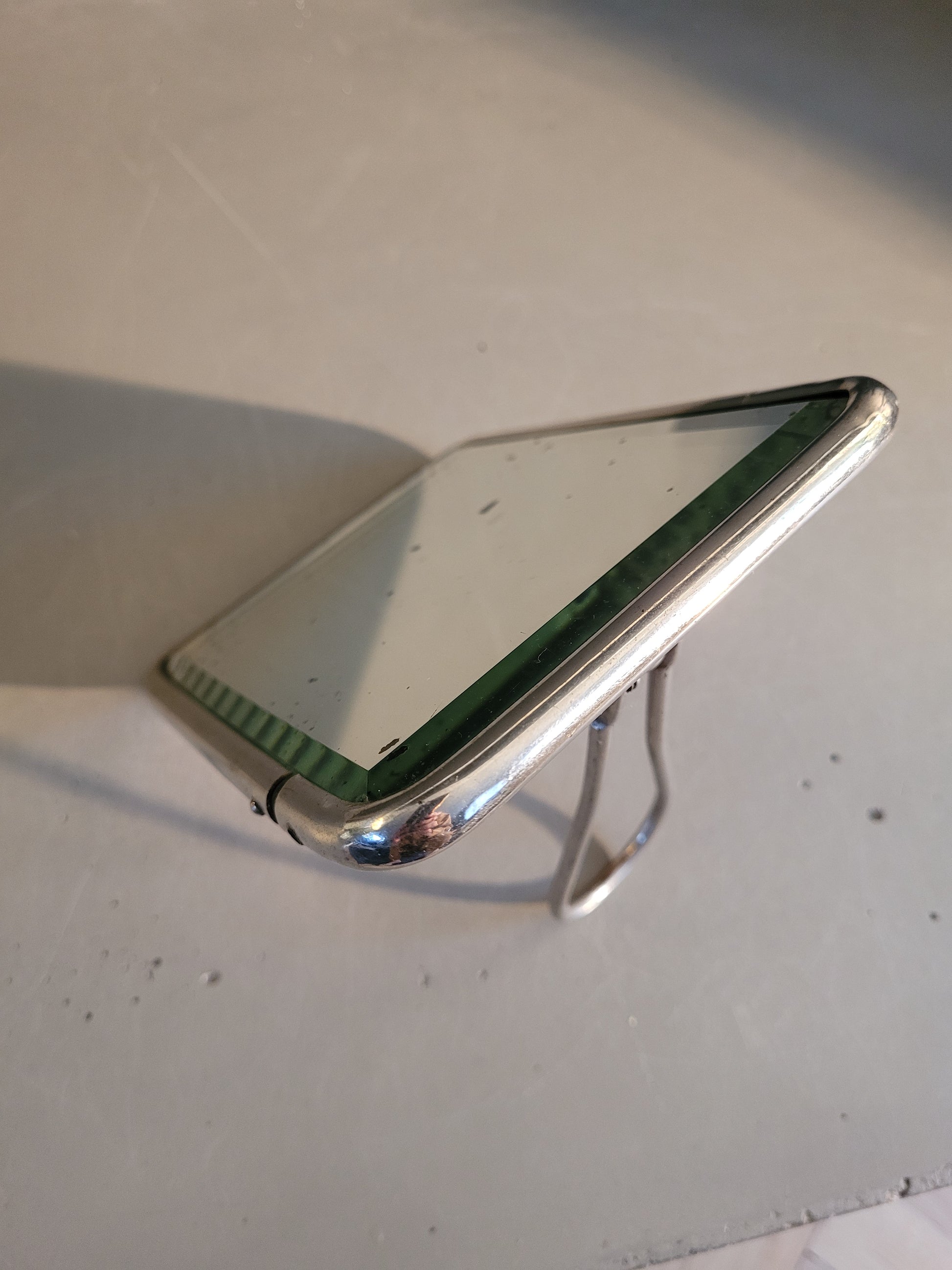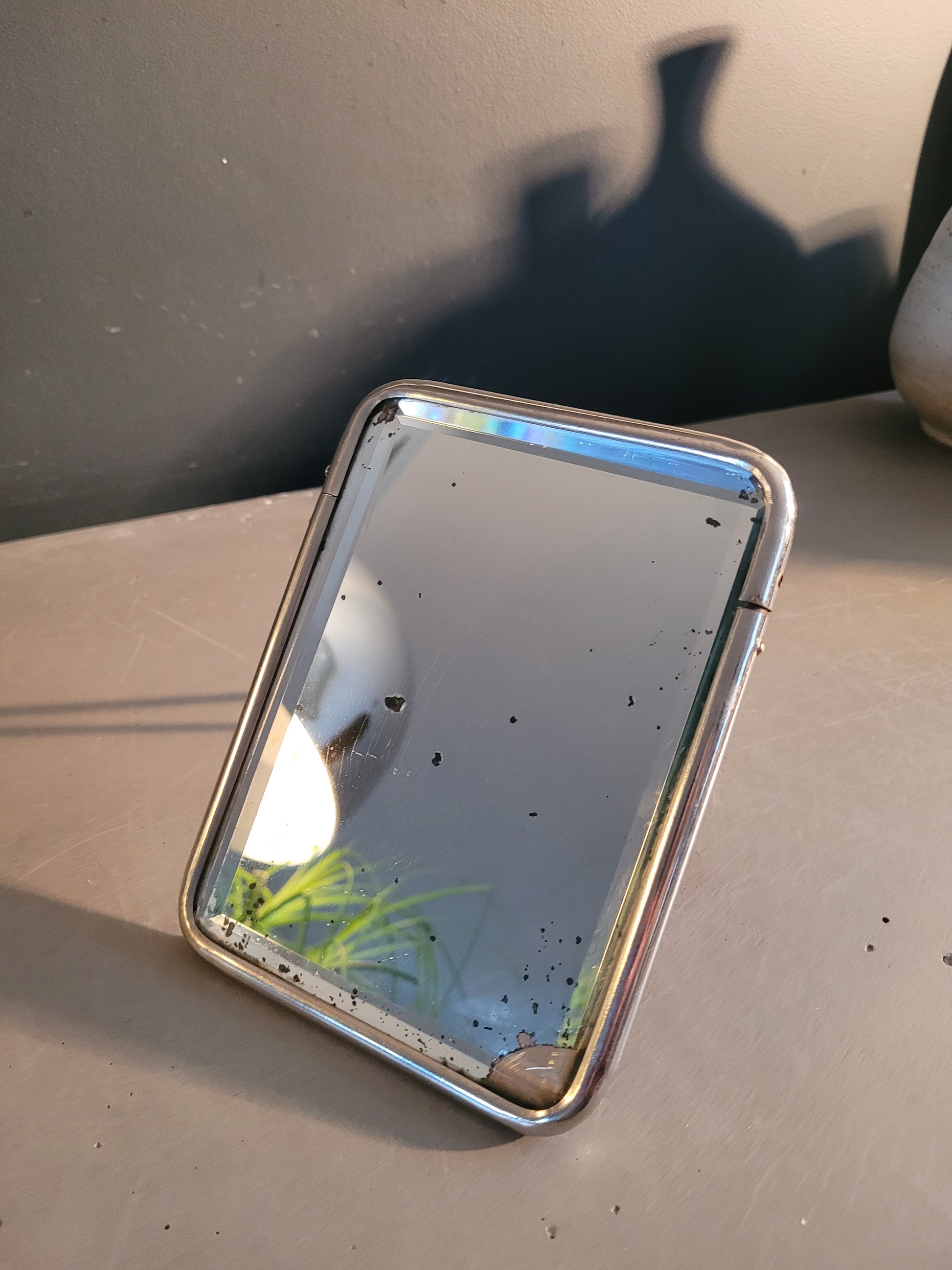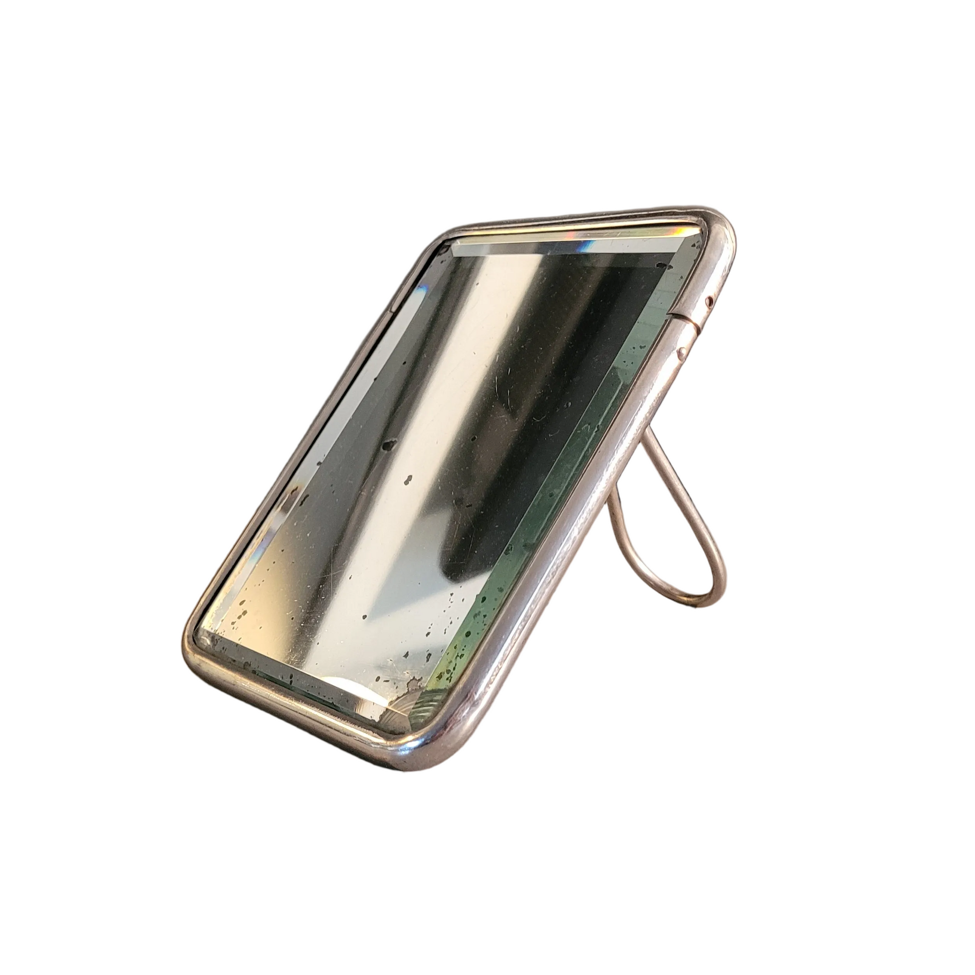 Superbe miroir rectangulaire, très ancien, très épais, et biseauté, encadré de métal argenté.
