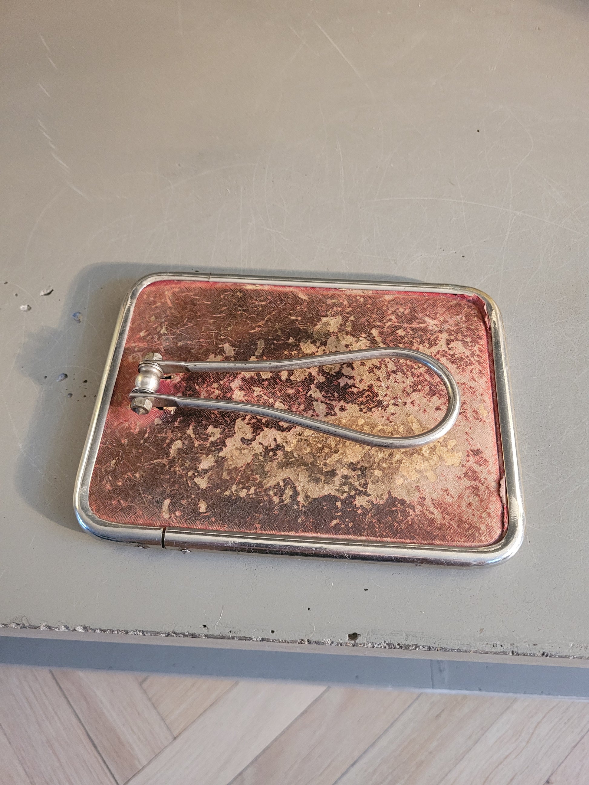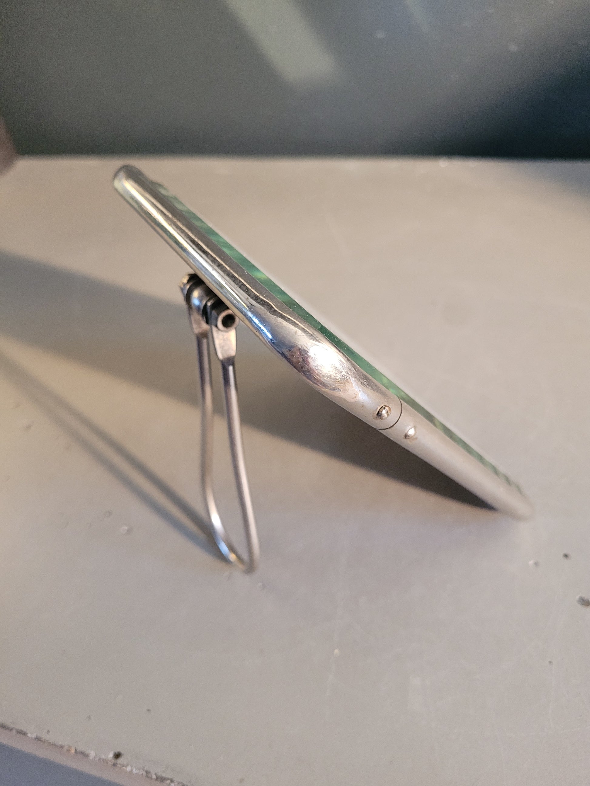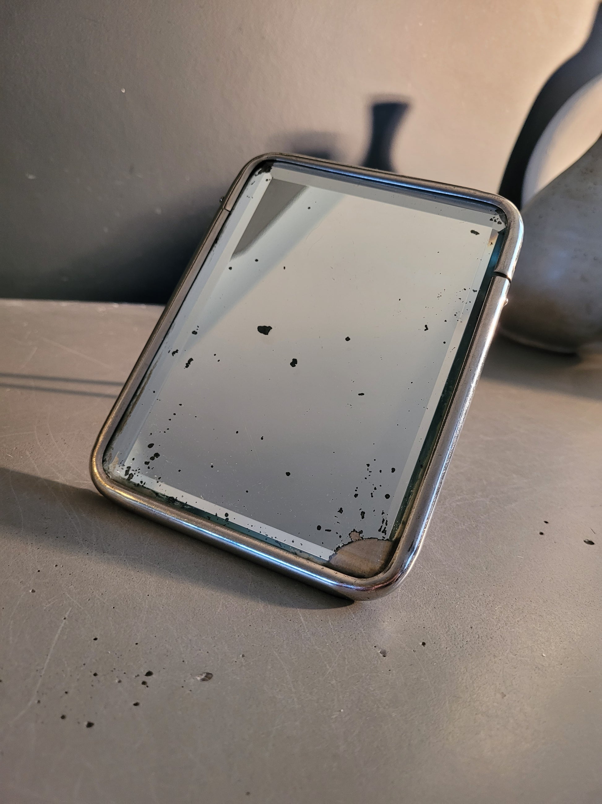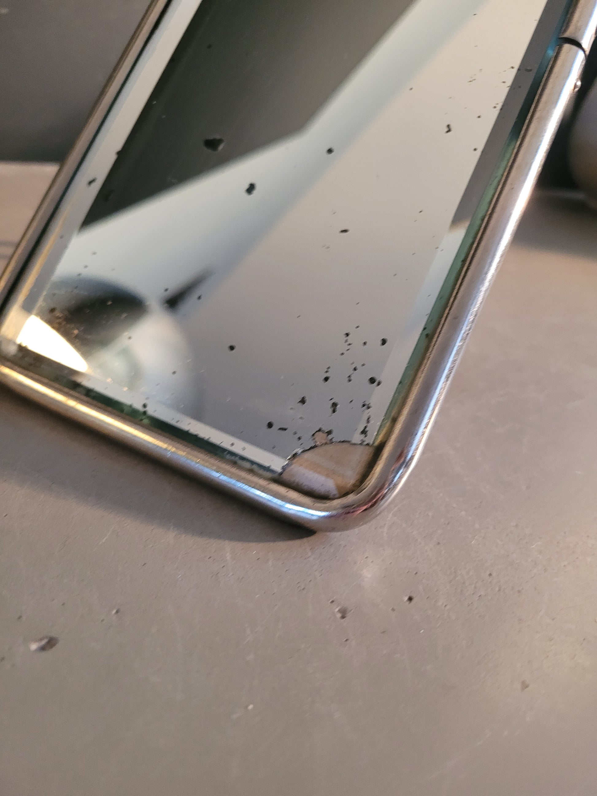 Superbe miroir rectangulaire, très ancien, très épais, et biseauté, encadré de métal argenté.