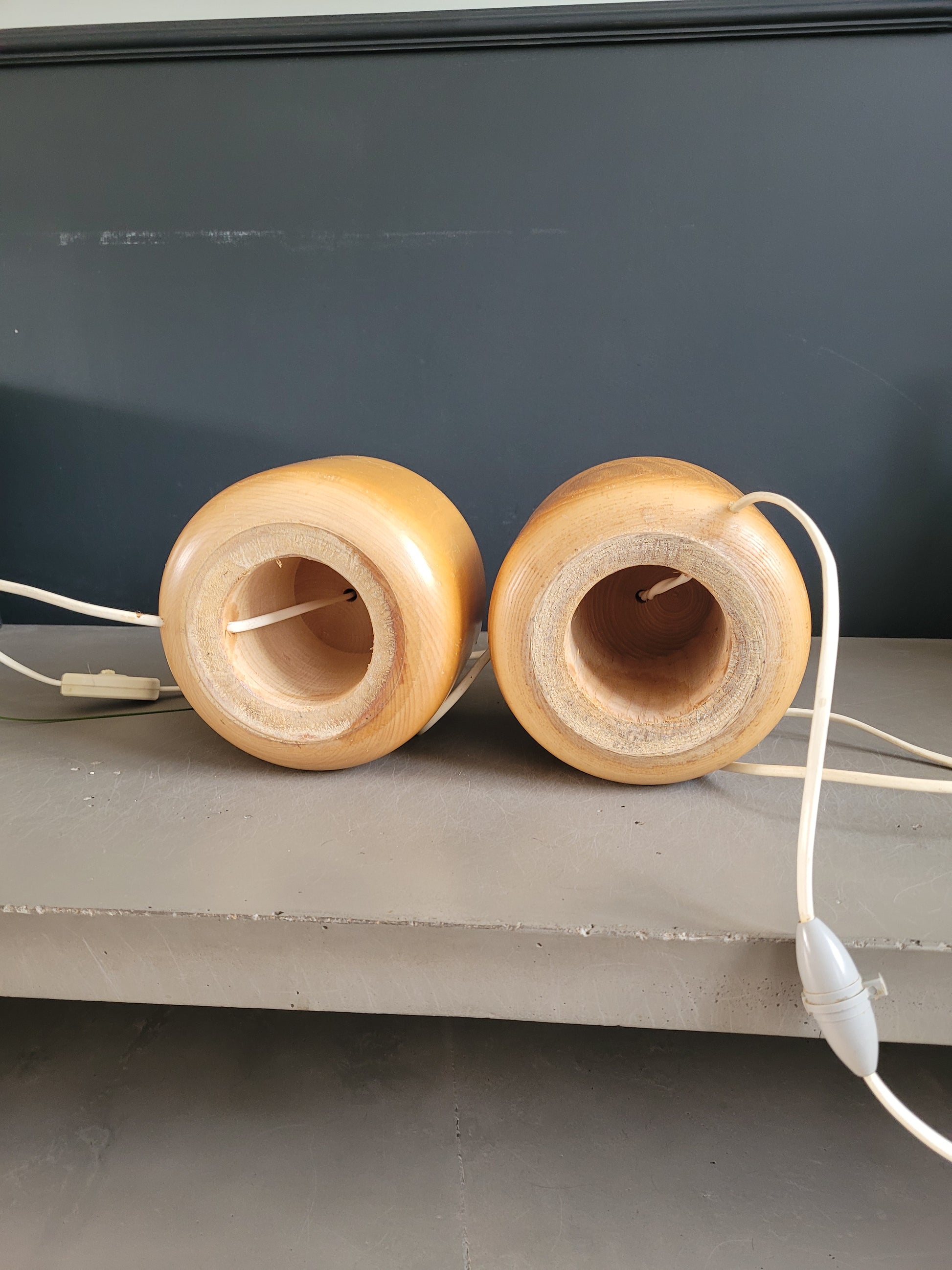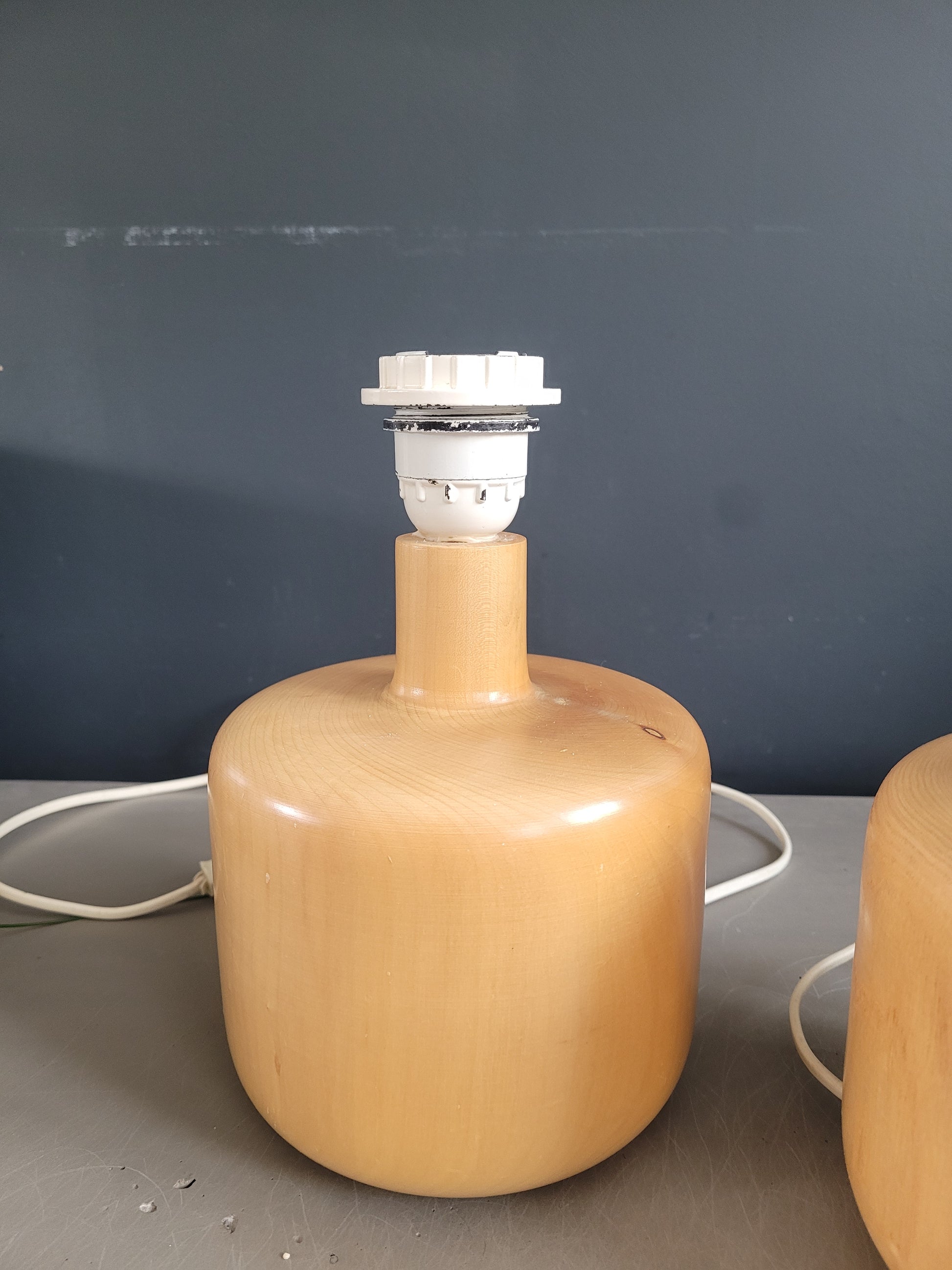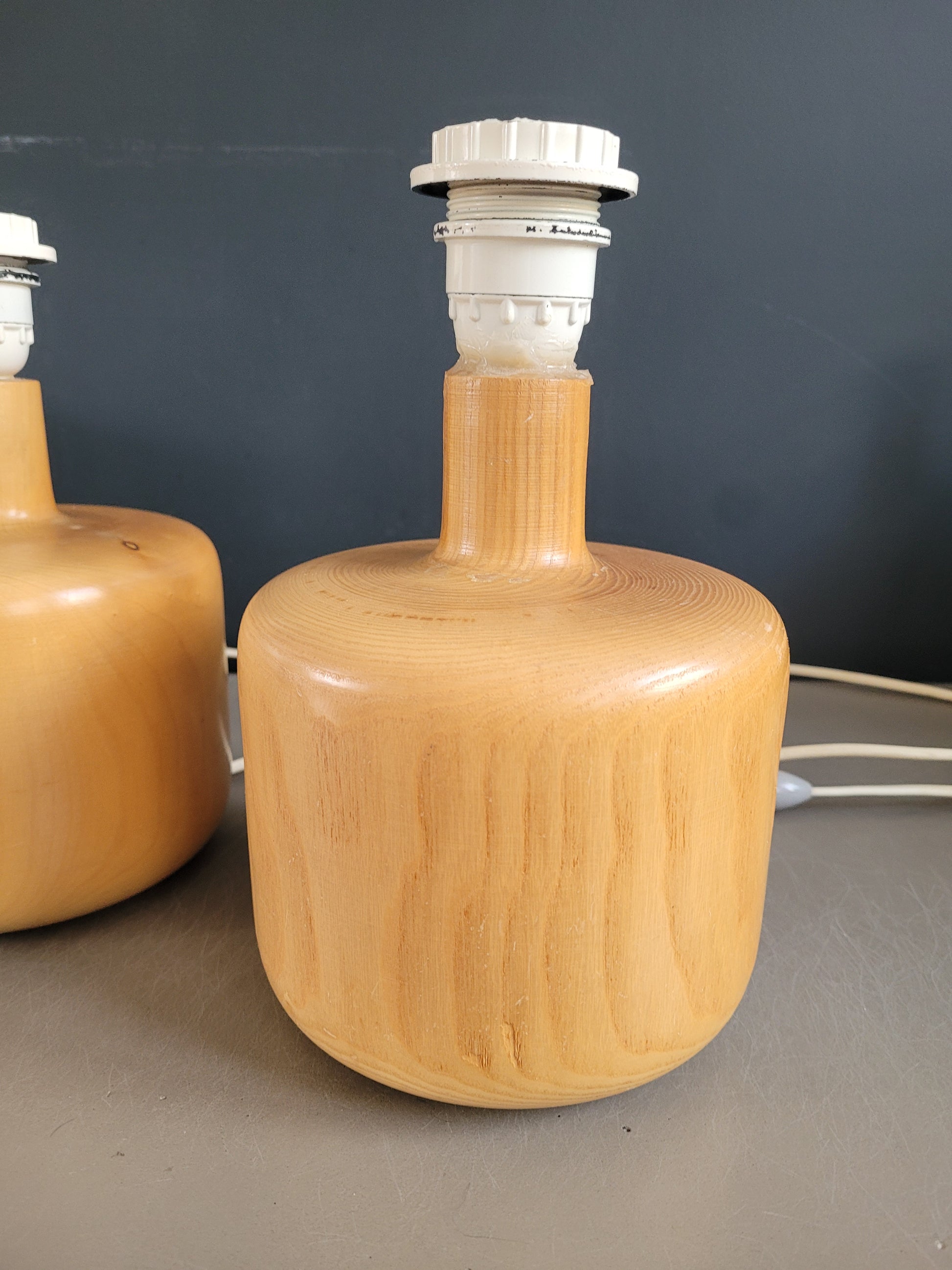 Sublime paire de pieds de lampes en bois clair tourné, en parfait état.