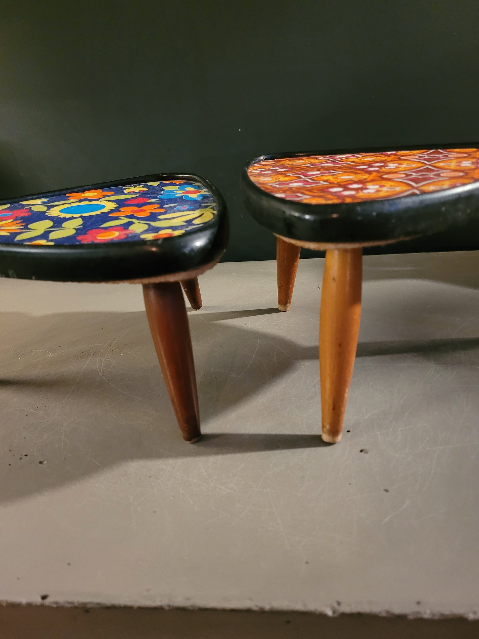 2 porte-plantes très sympas avec leur look vintage et leurs motifs colorés et joyeux.