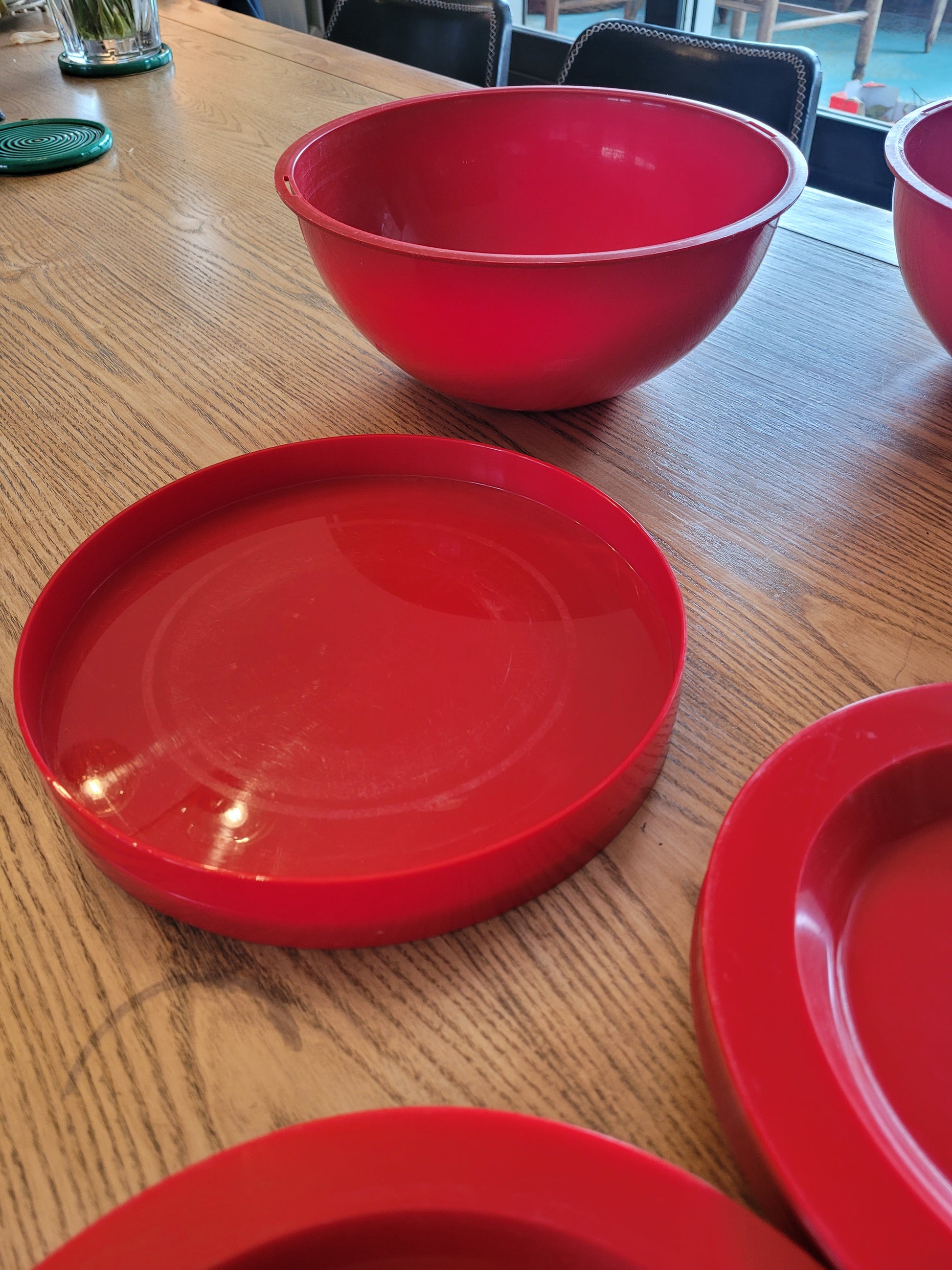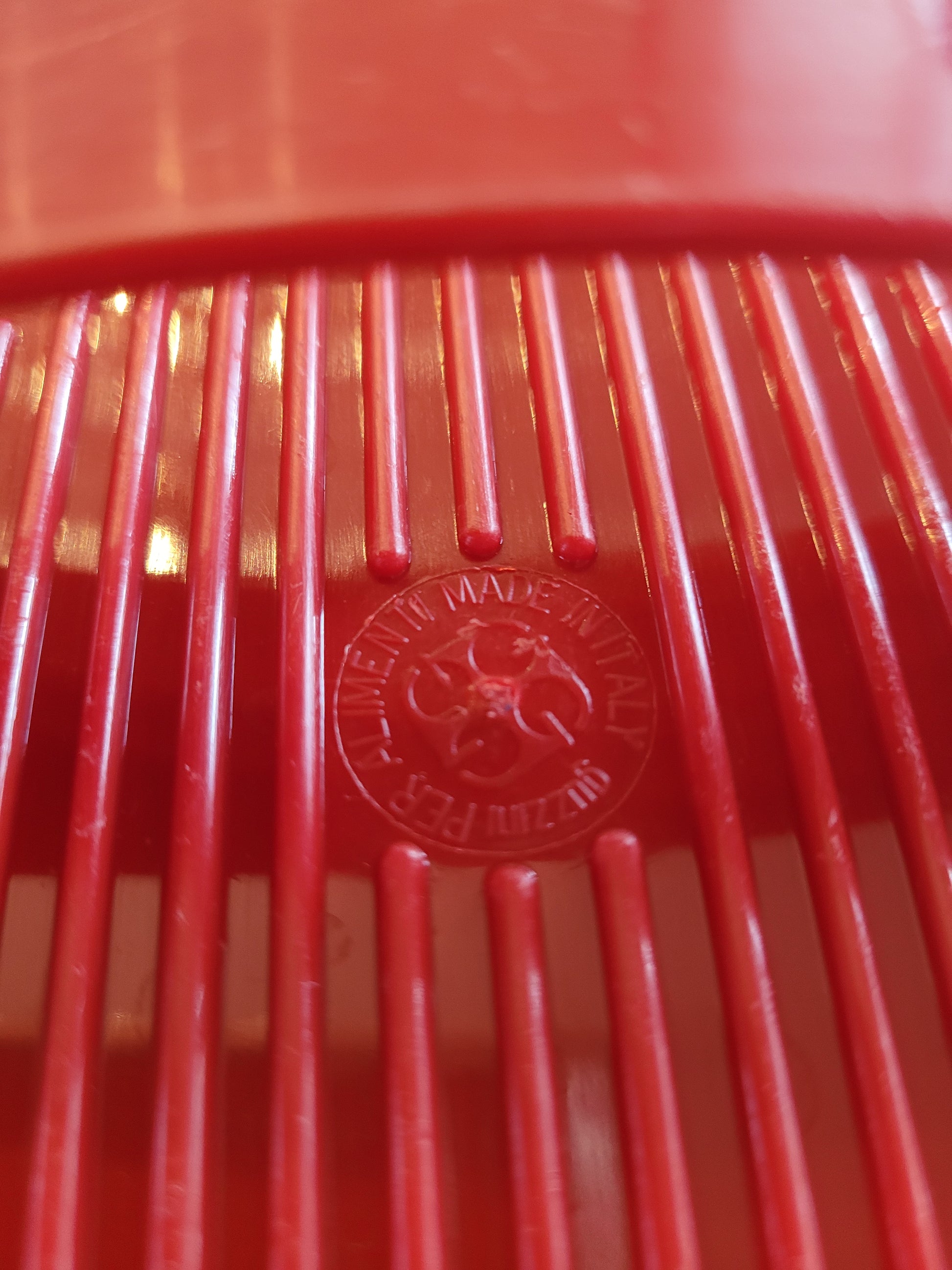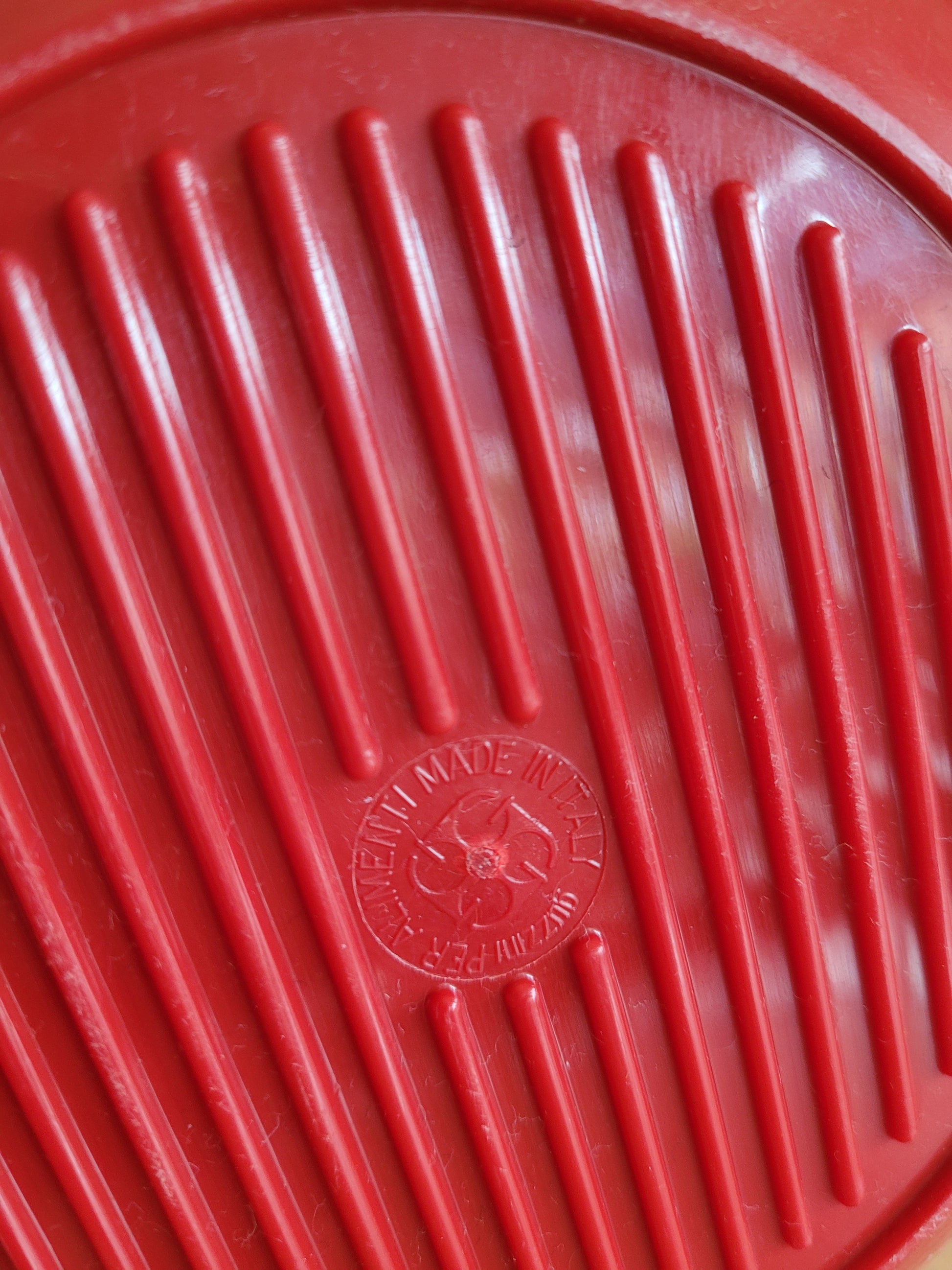 Panier à pique-nique en plastique rouge modèle Pic Boll signé Carlo VIGLIO produit par Guzzini dans les années 70.