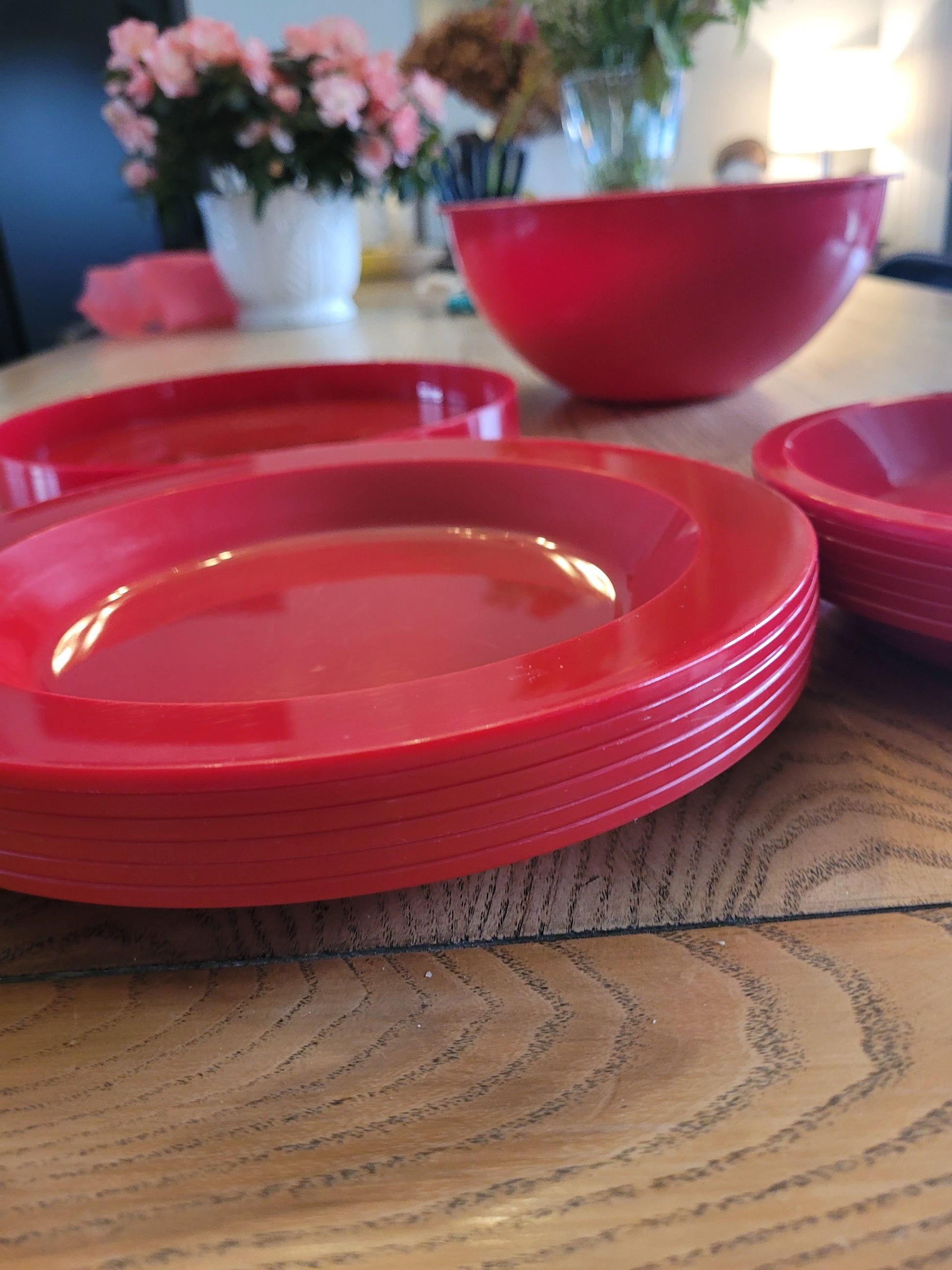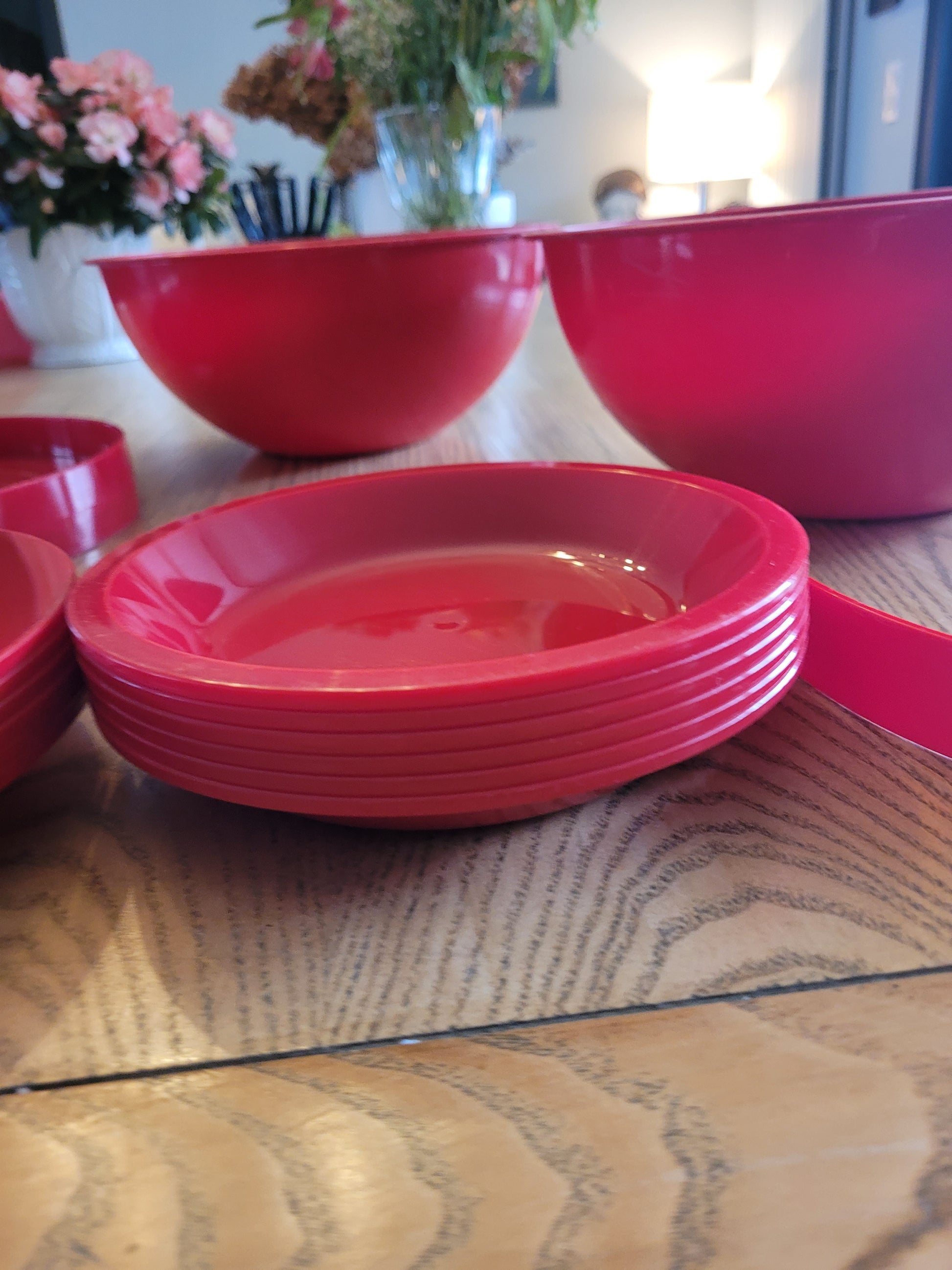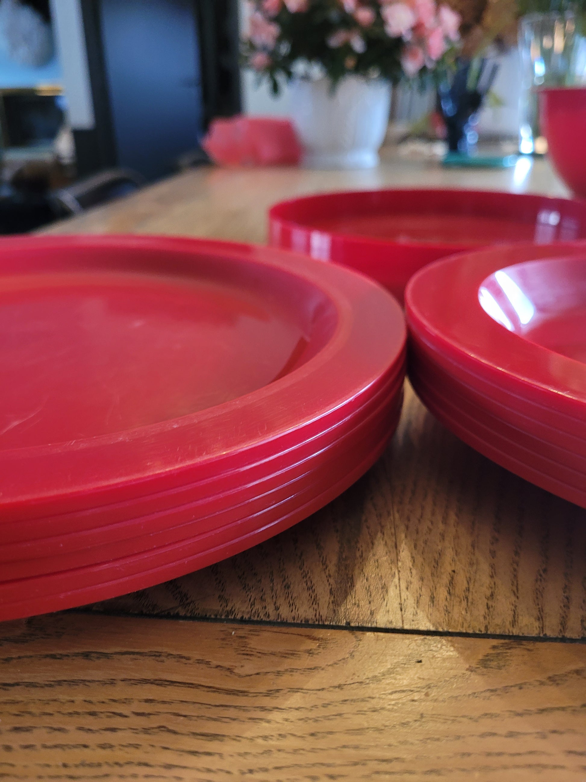 Panier à pique-nique en plastique rouge modèle Pic Boll signé Carlo VIGLIO produit par Guzzini dans les années 70.