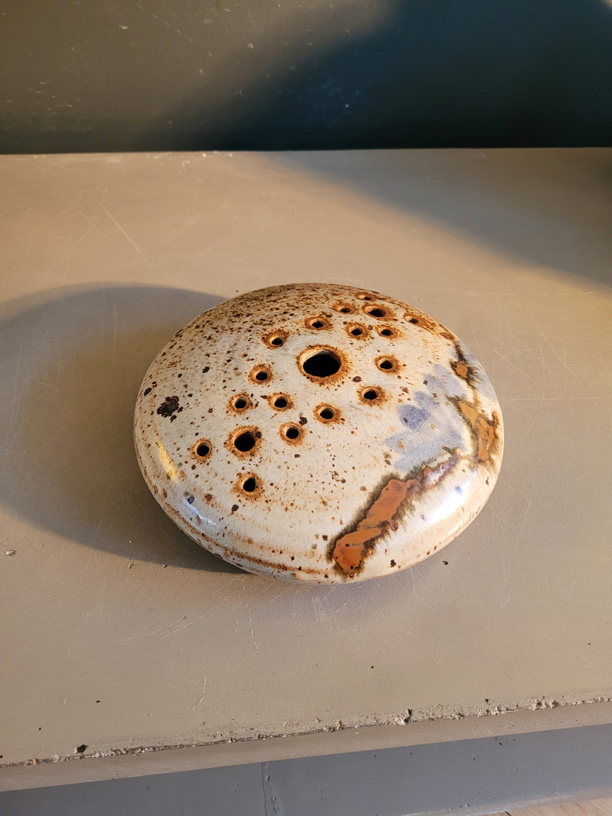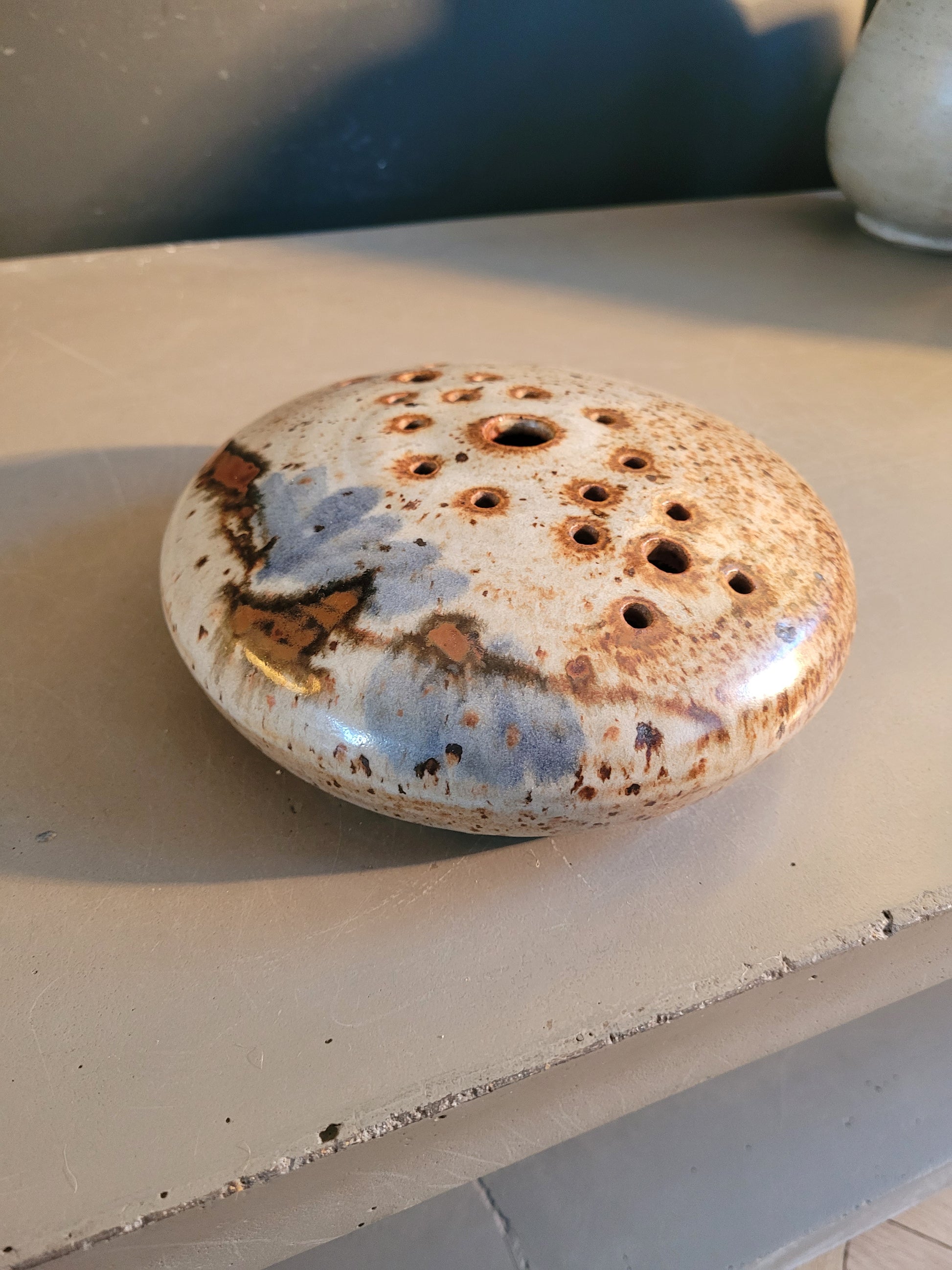 Superbe pique-fleurs 19 trous des années 60 en céramique signé La Tournerie.