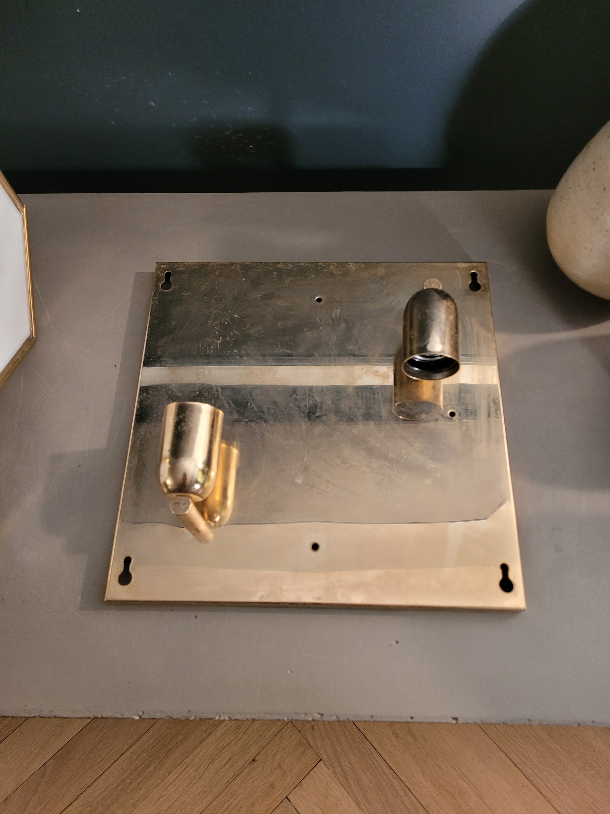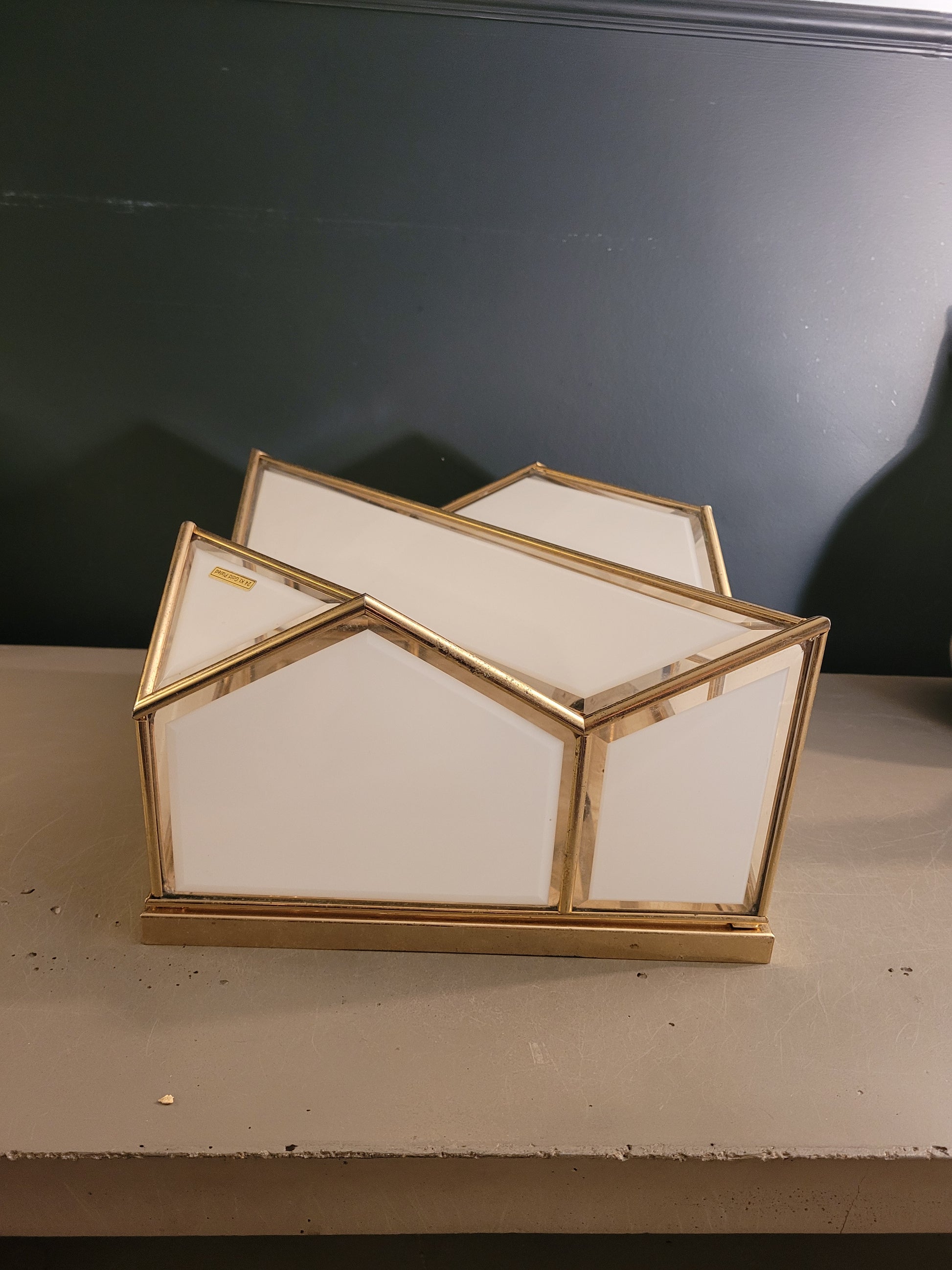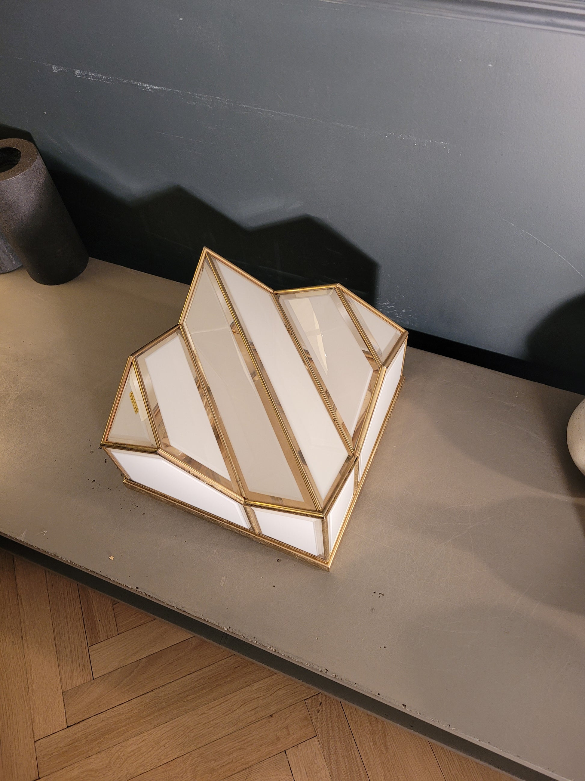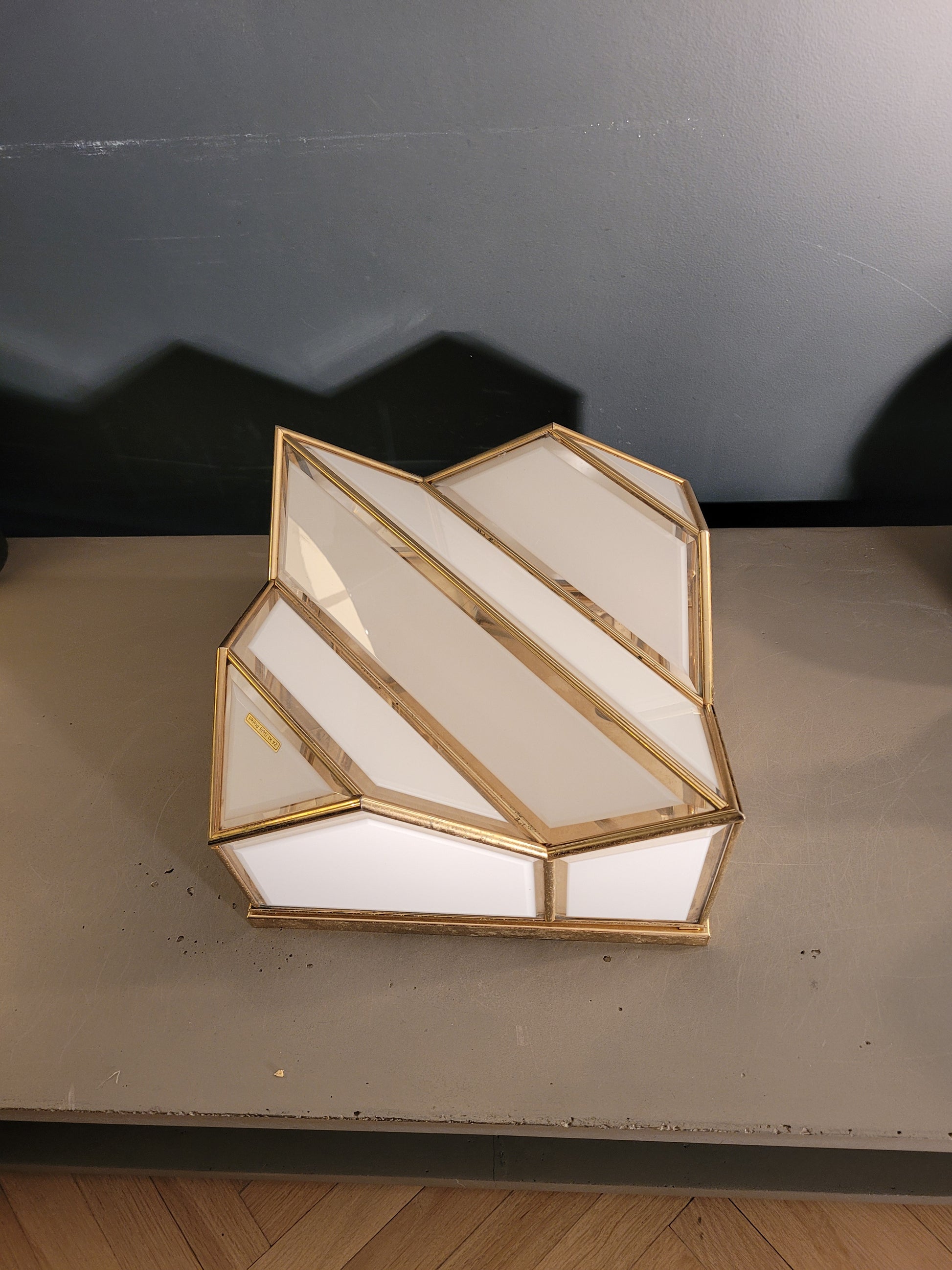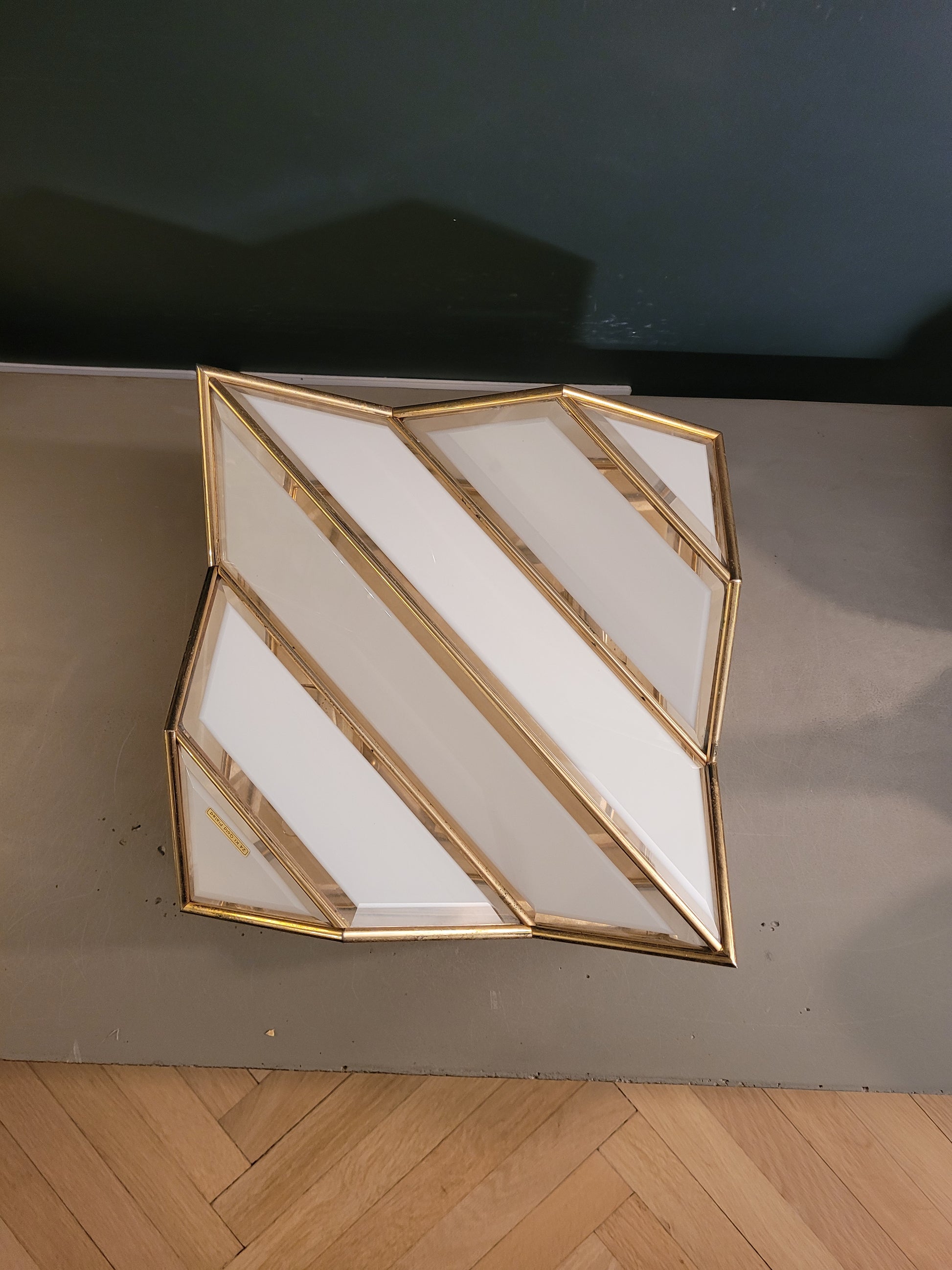 Superbe plafonnier italien ancien, en verre à facettes et métal plaqué ou 24 carats (!) de style art déco.