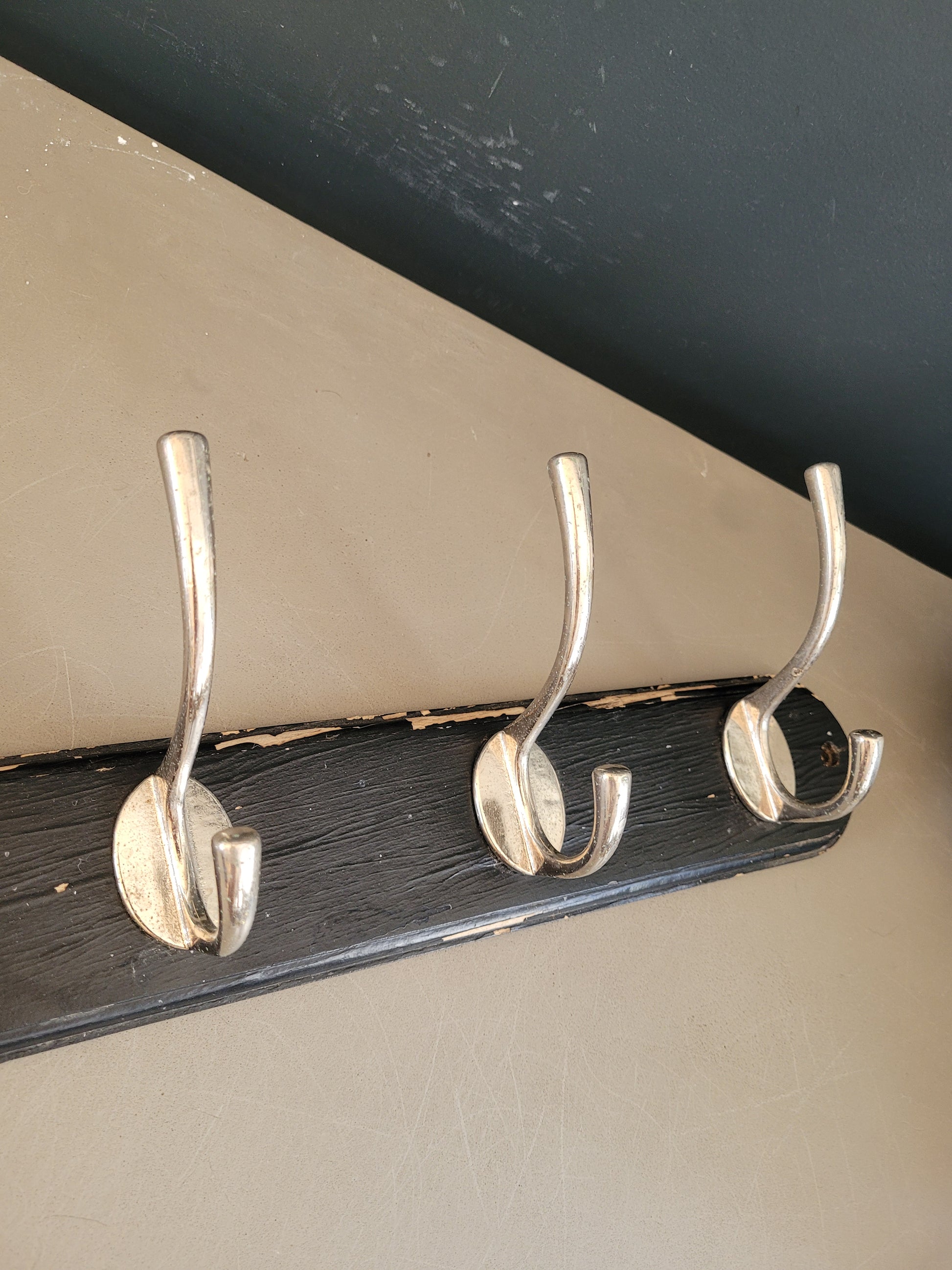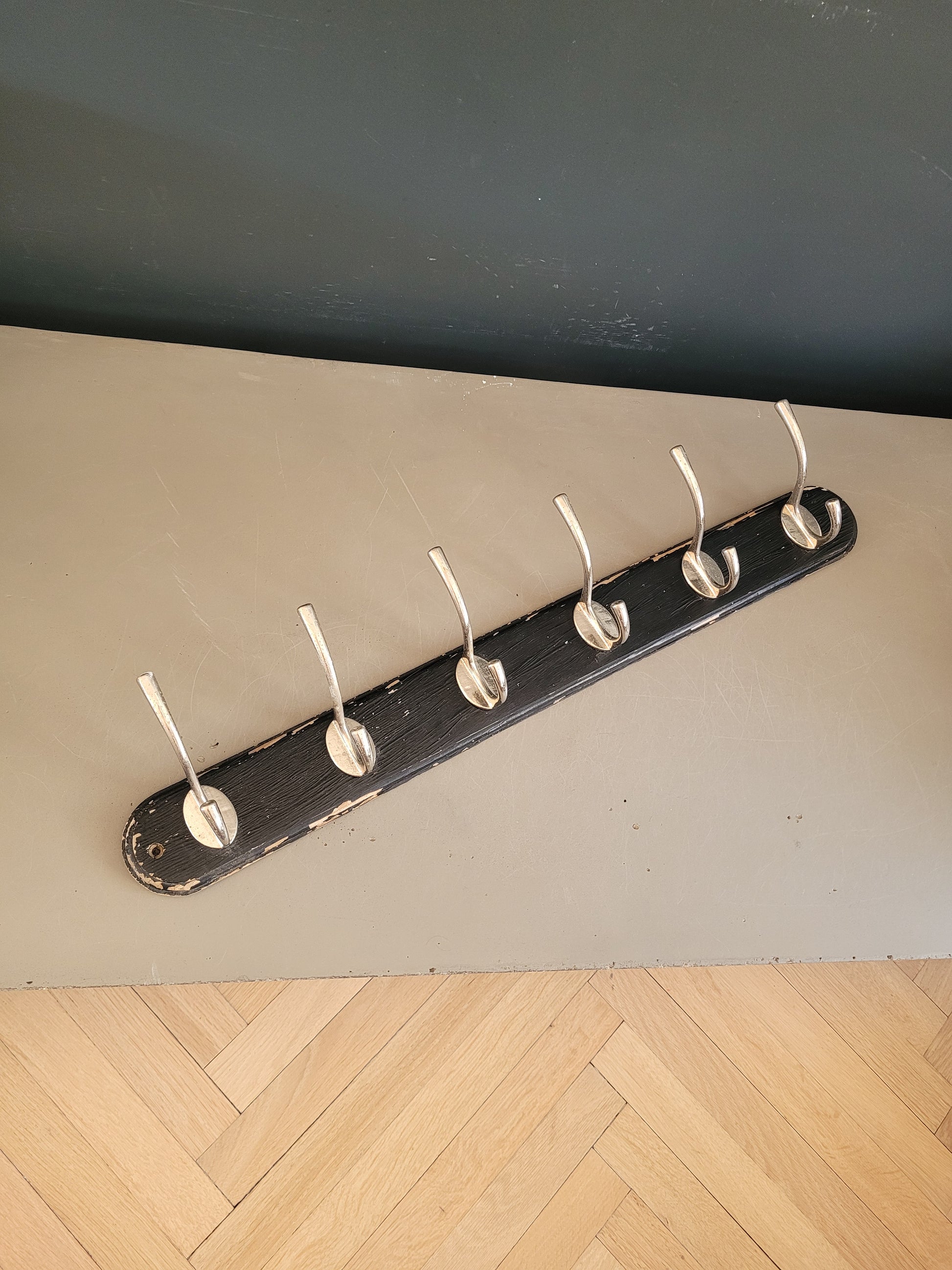 Magnifique porte-manteaux mural vintage à 6 patères peint en noir.