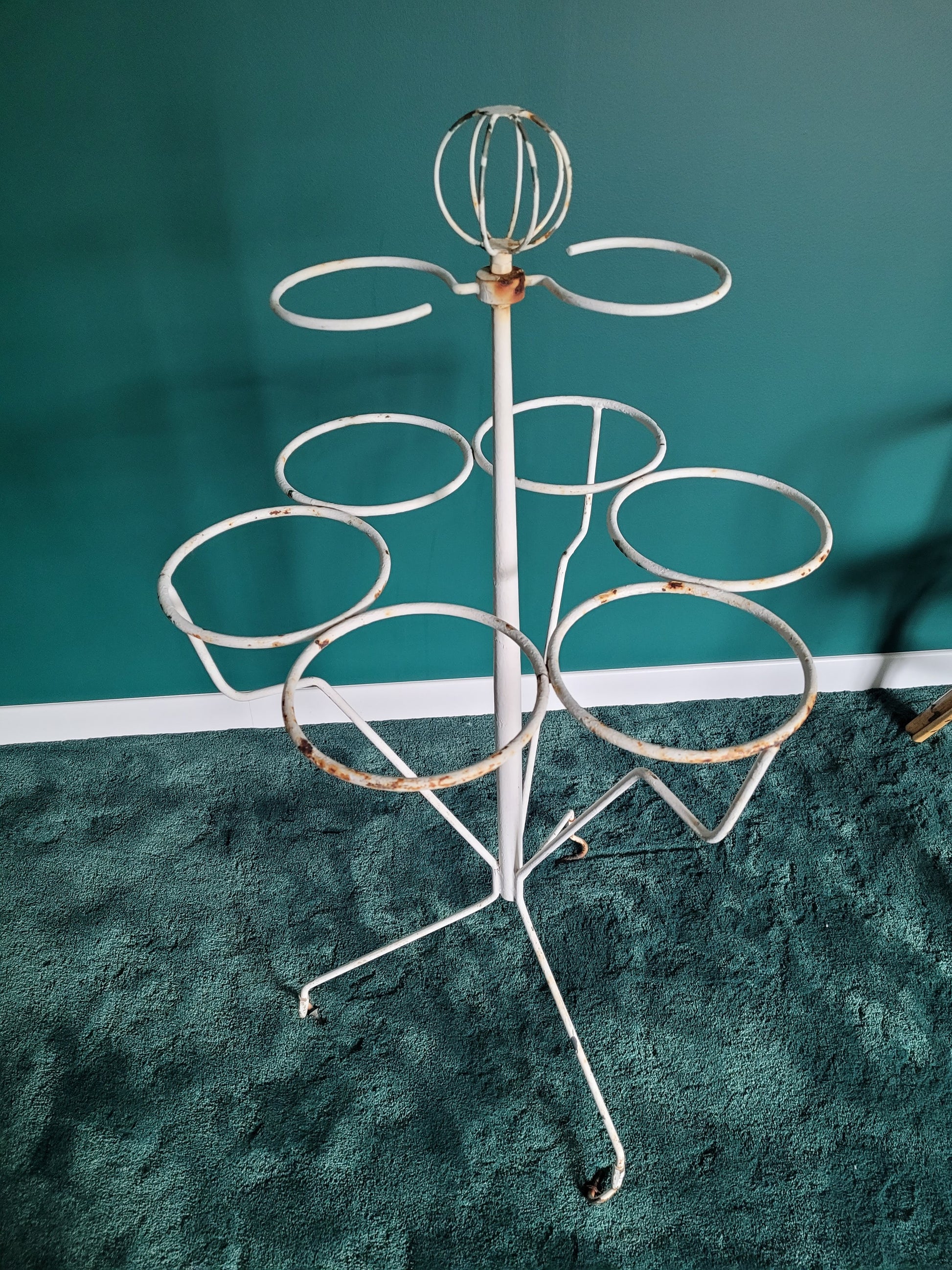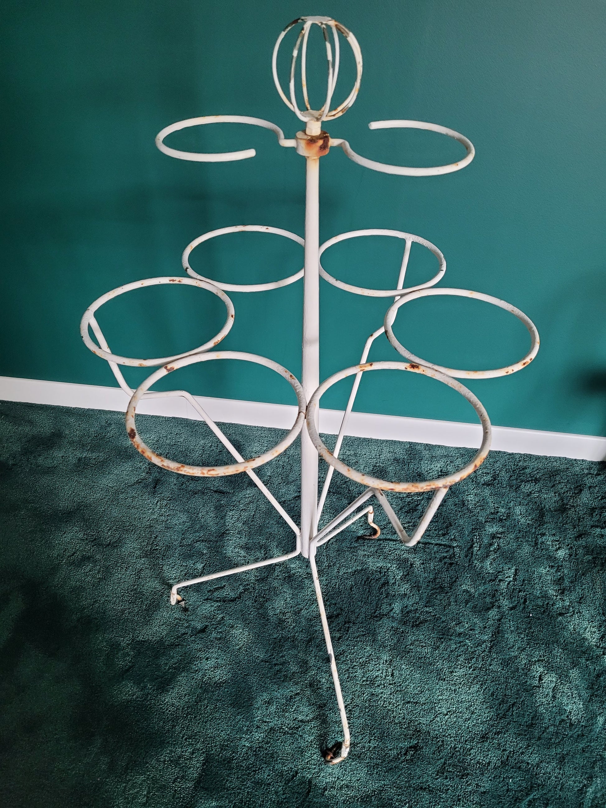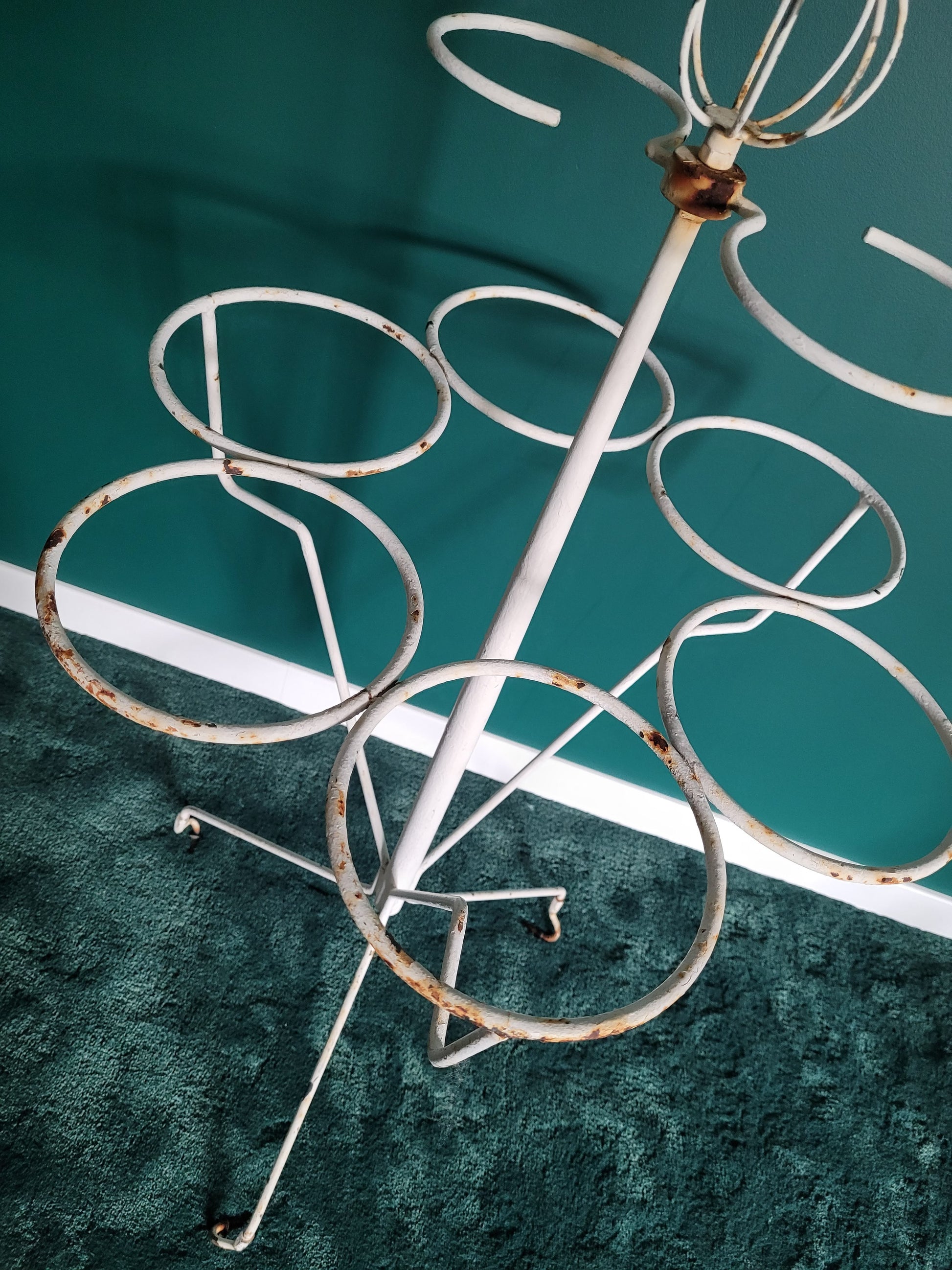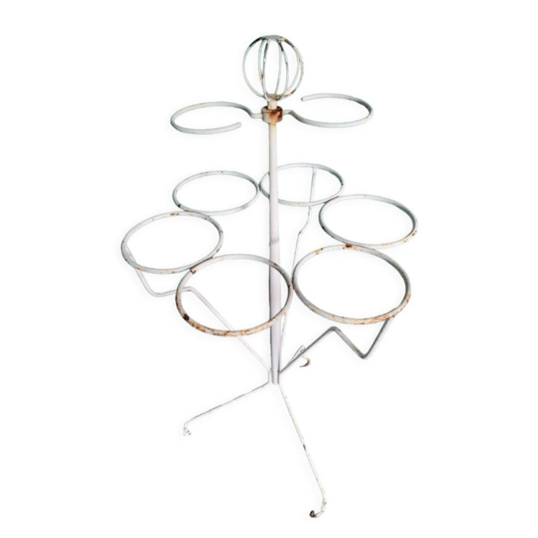 Sublime porte plantes anciennes en fer forgé peint en blanc.