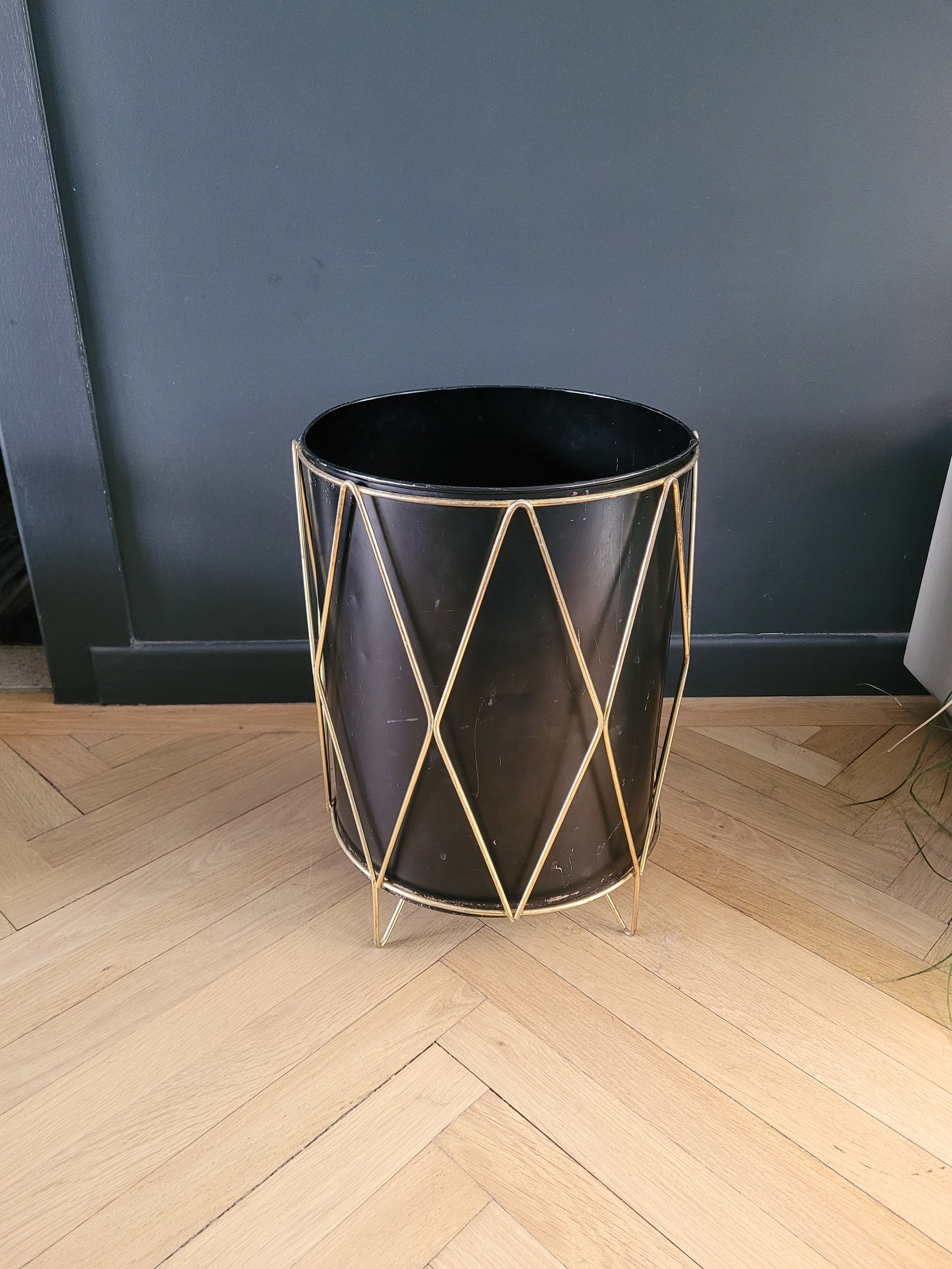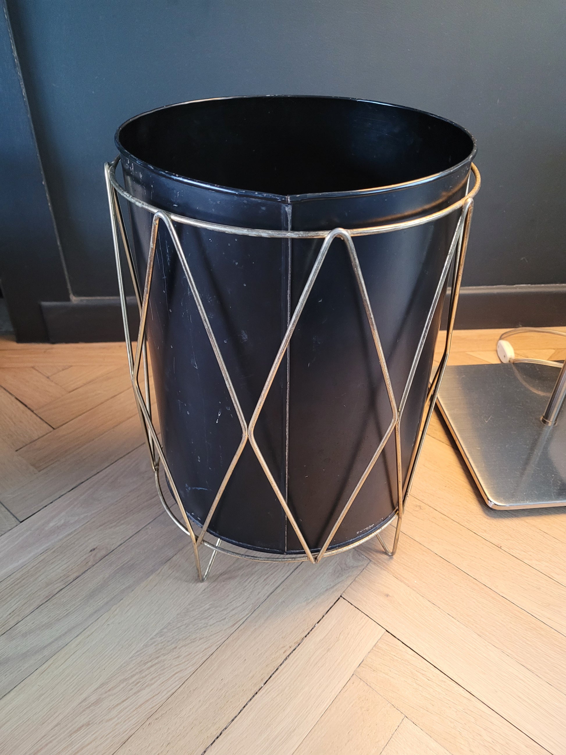 Corbeille à papier en tôle laquée et laiton - Ref 772