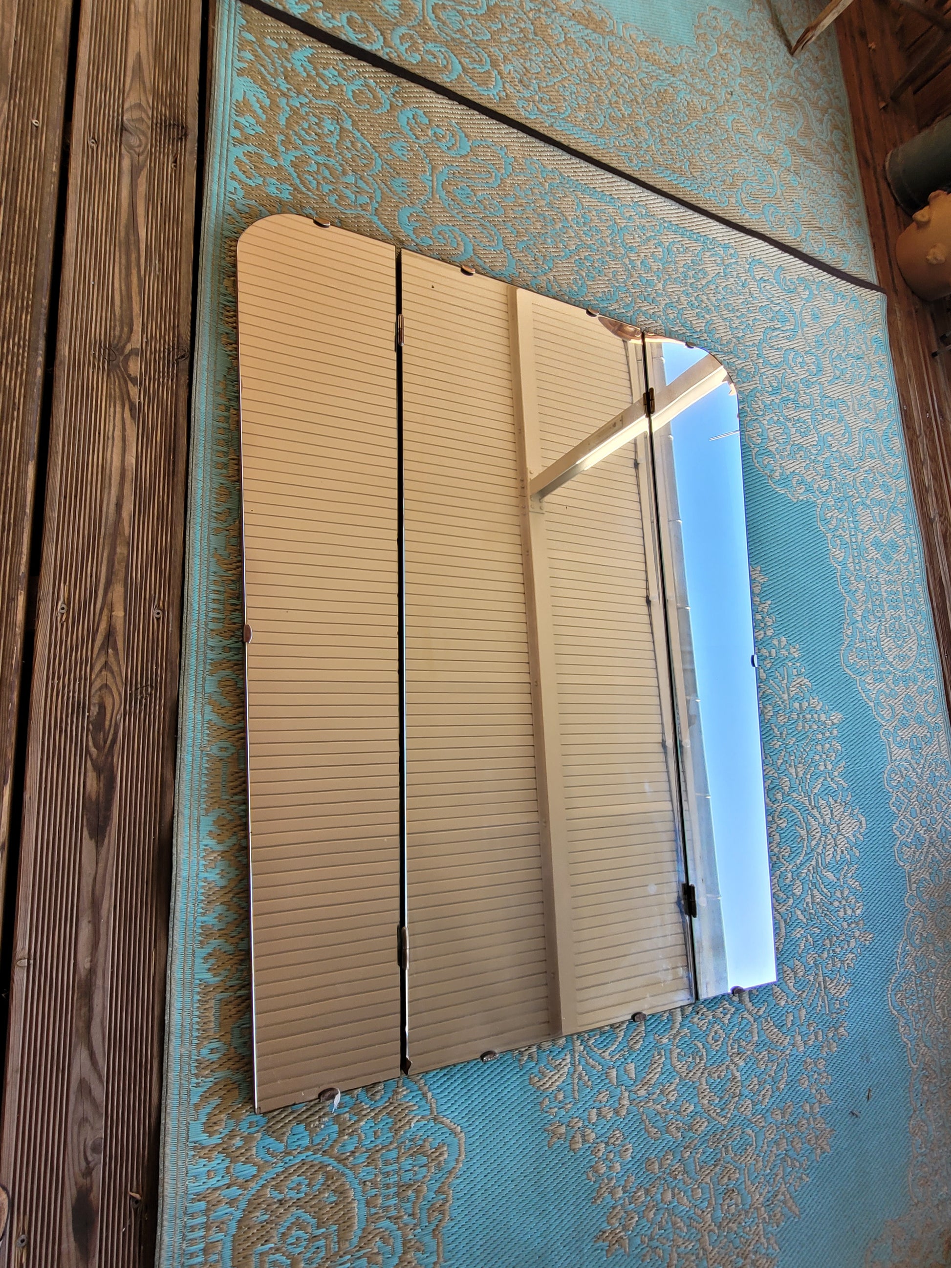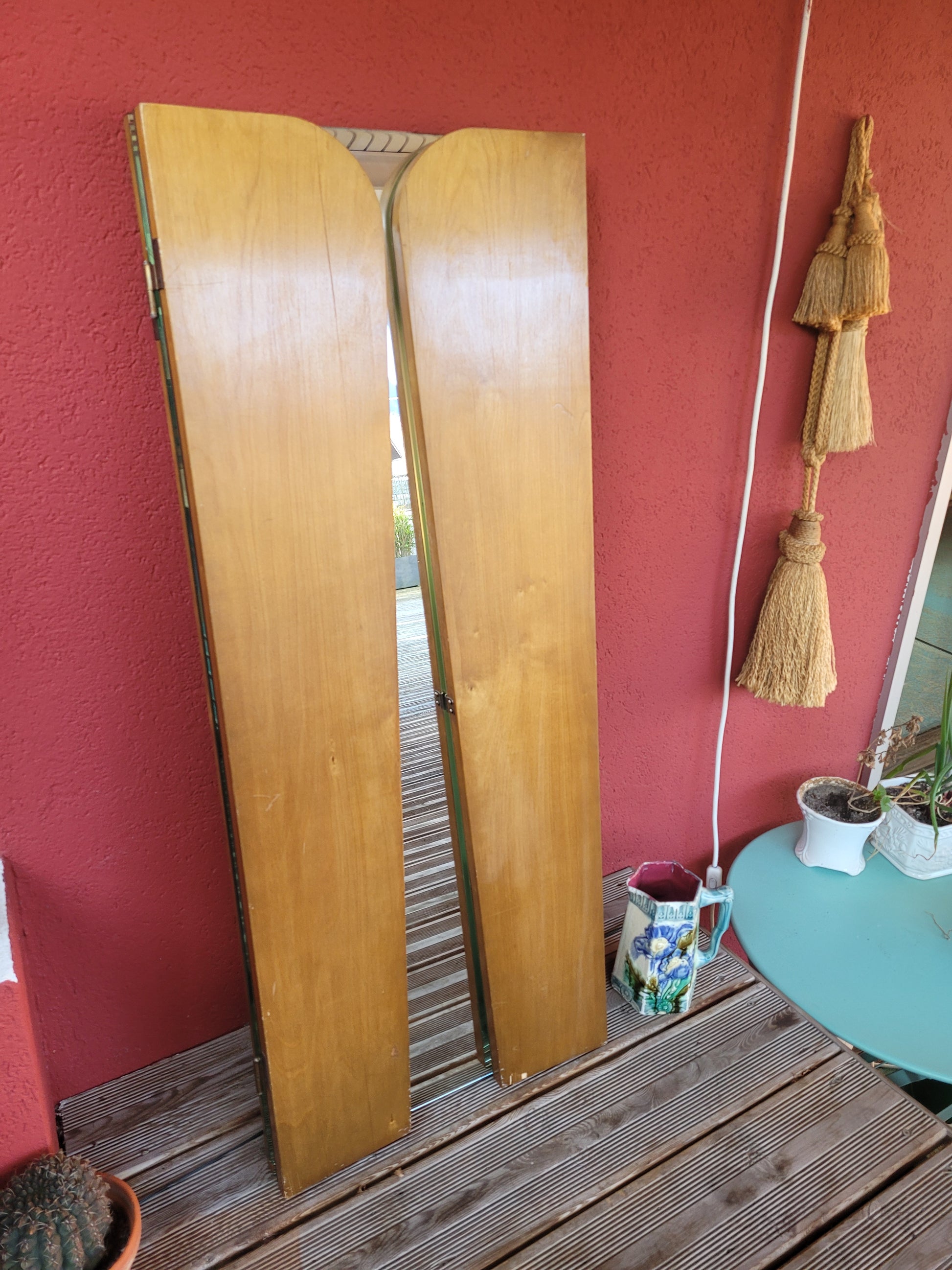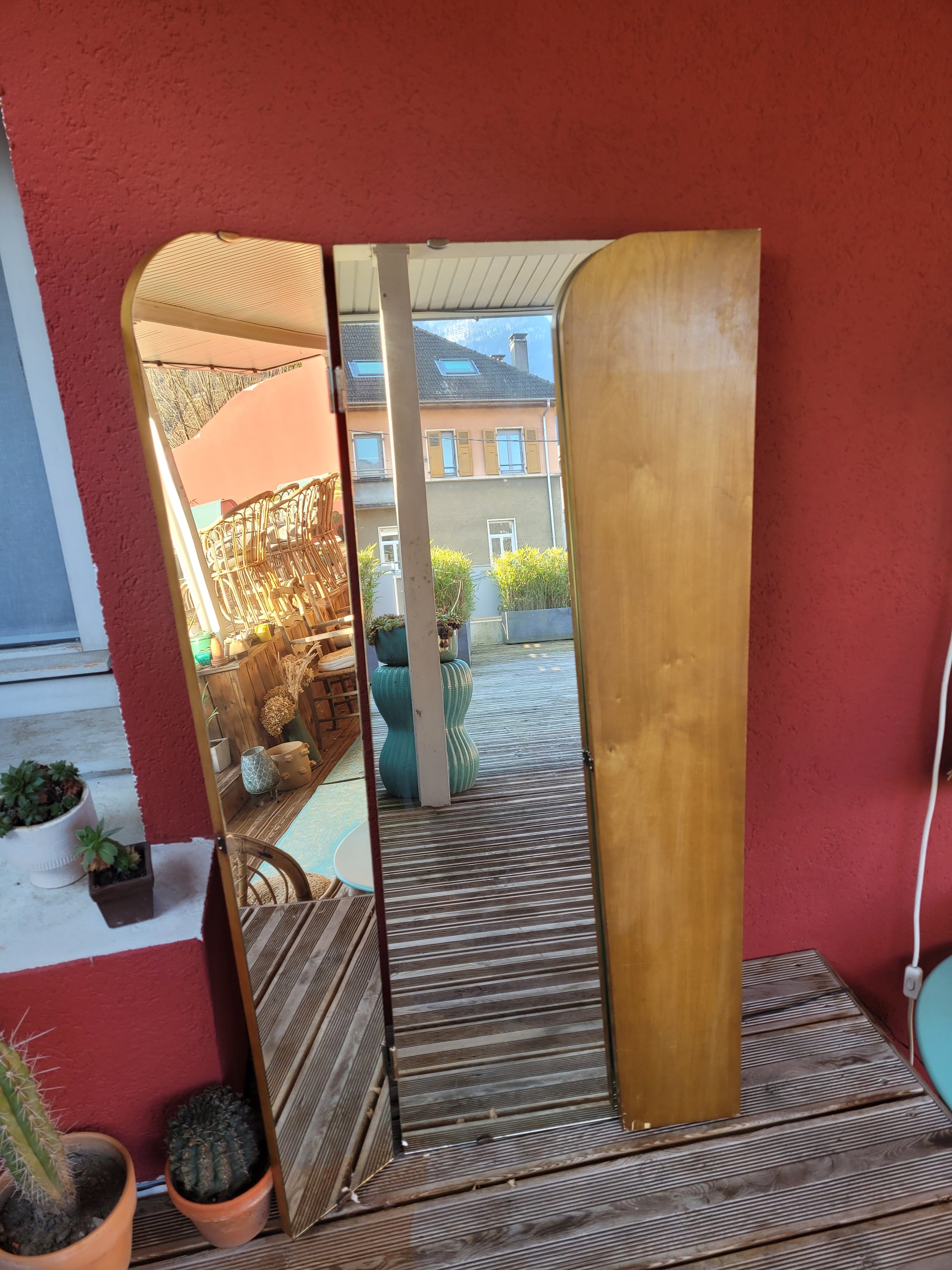 Sublime miroir triptyque vintage en bois plaqué teck.