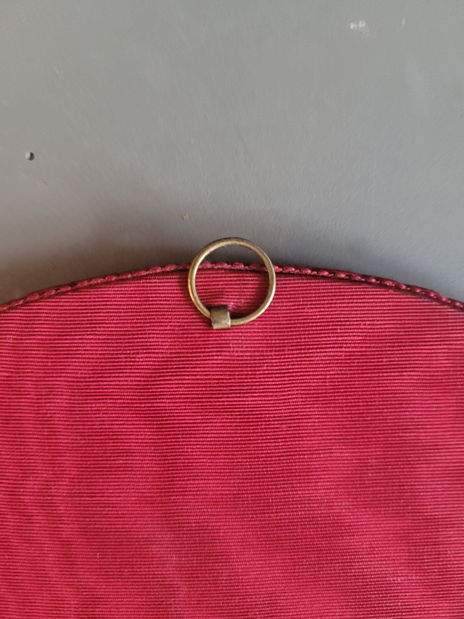 Le dos est recouvert de tissu grenat moiré.