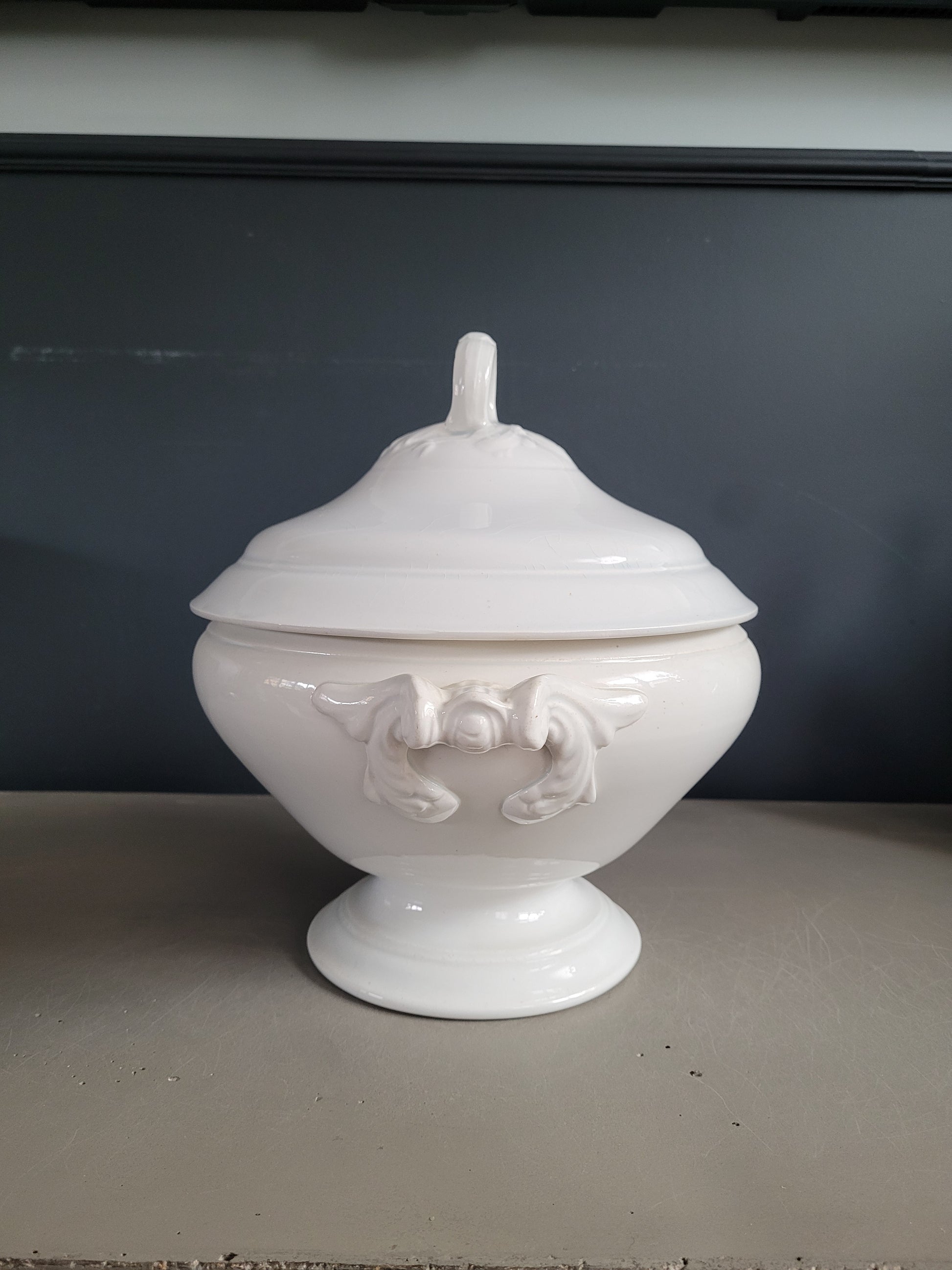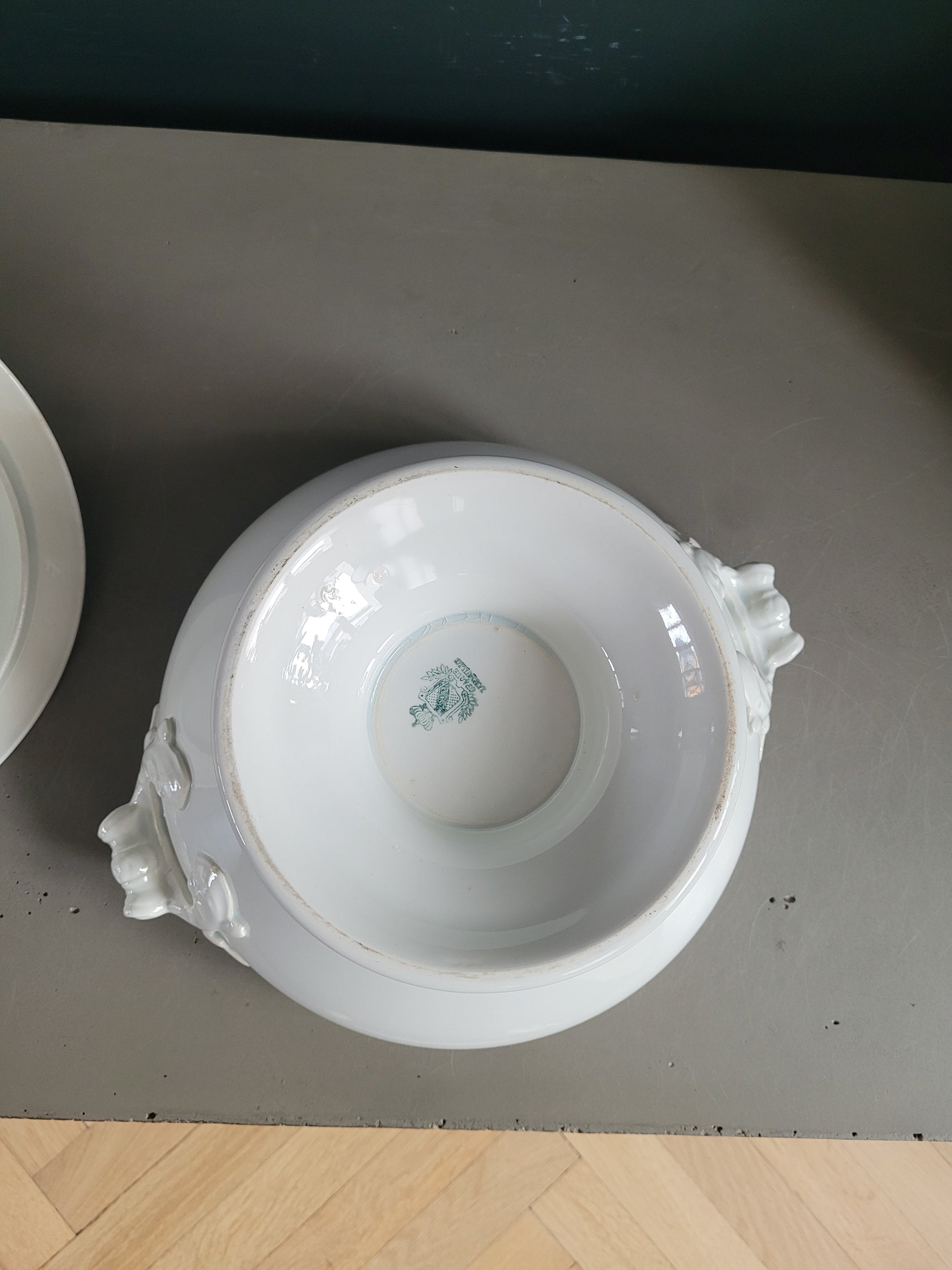 Soupière en porcelaine blanche Opaque Lunéville, en parfait état.