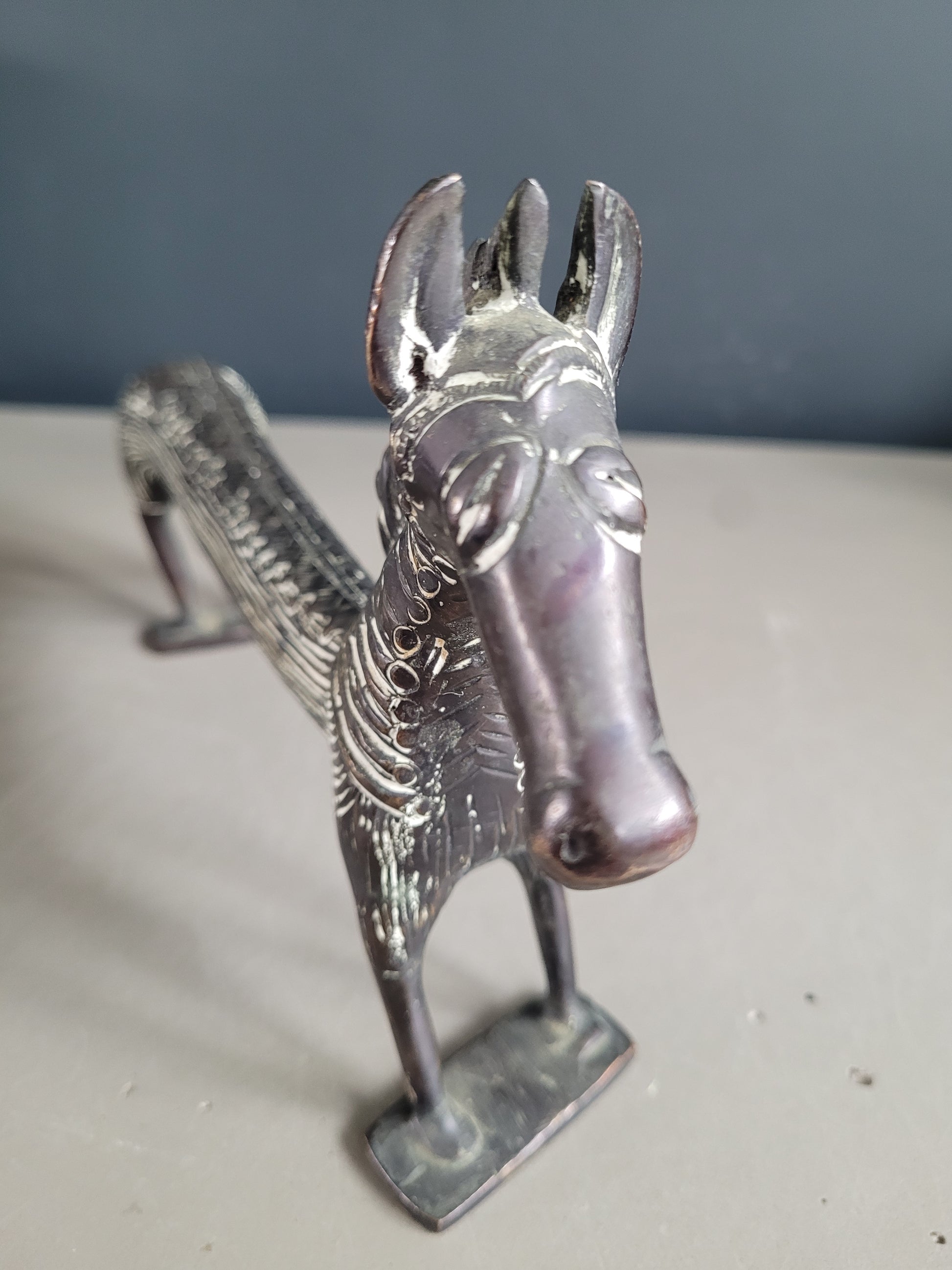 Sublime statuette cheval en bronze, de style éthnique ou naïf, elle a une ligne magnifique!